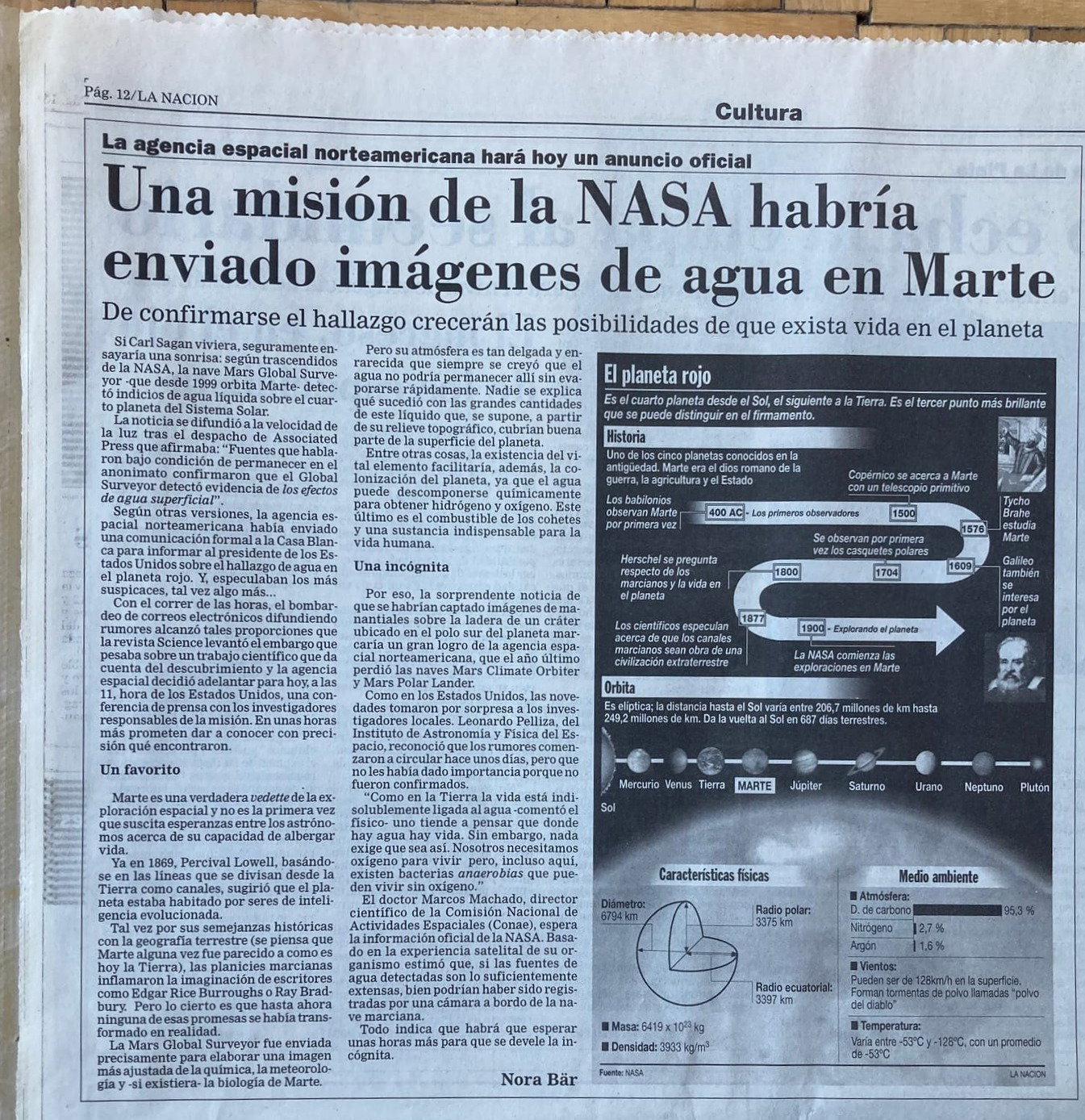 Agua en Marte | La Nación 22/6/2000