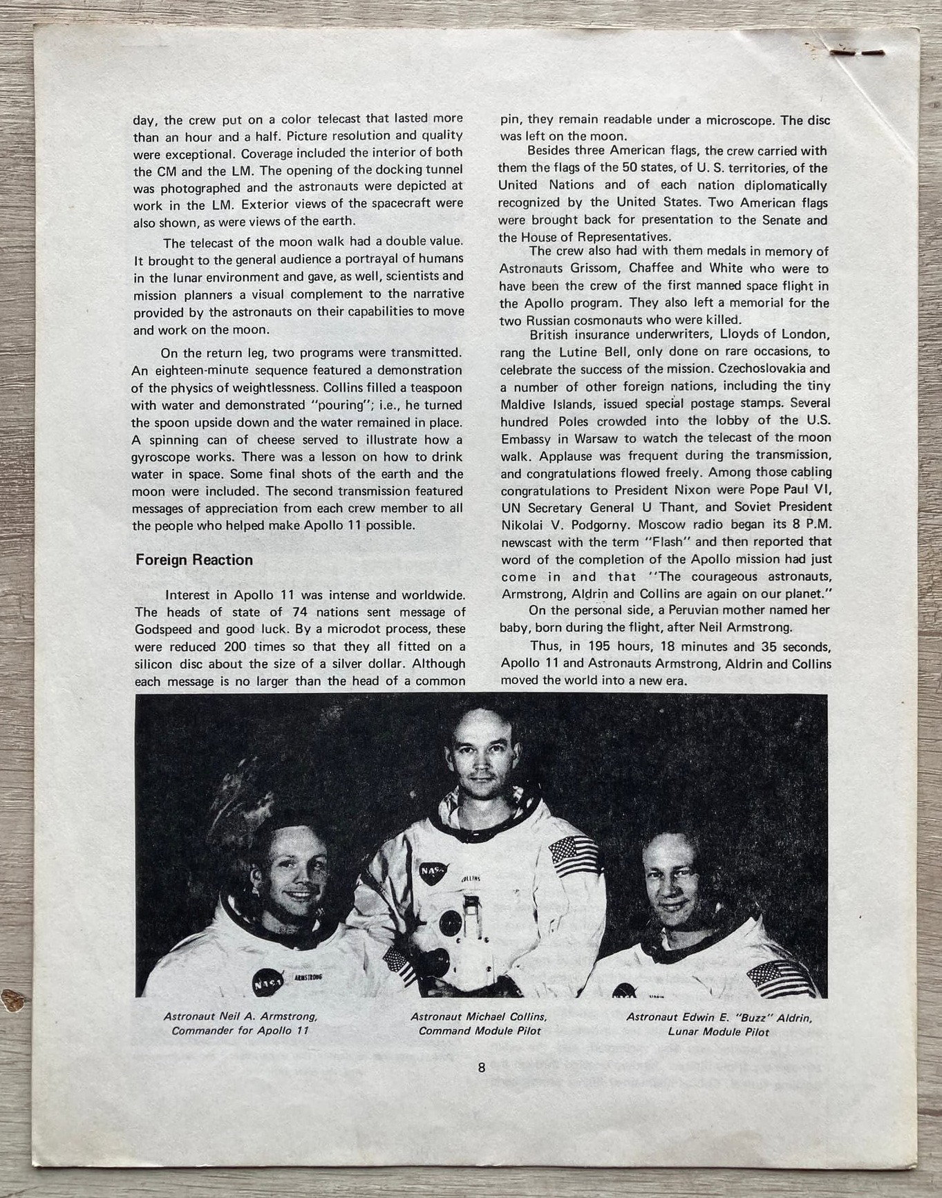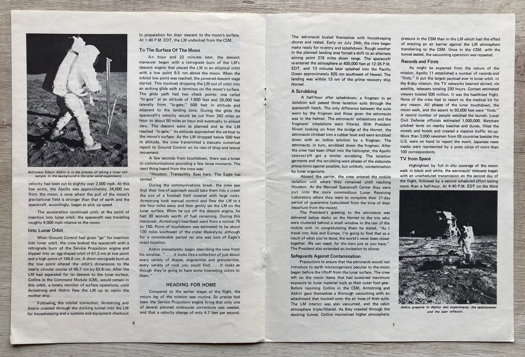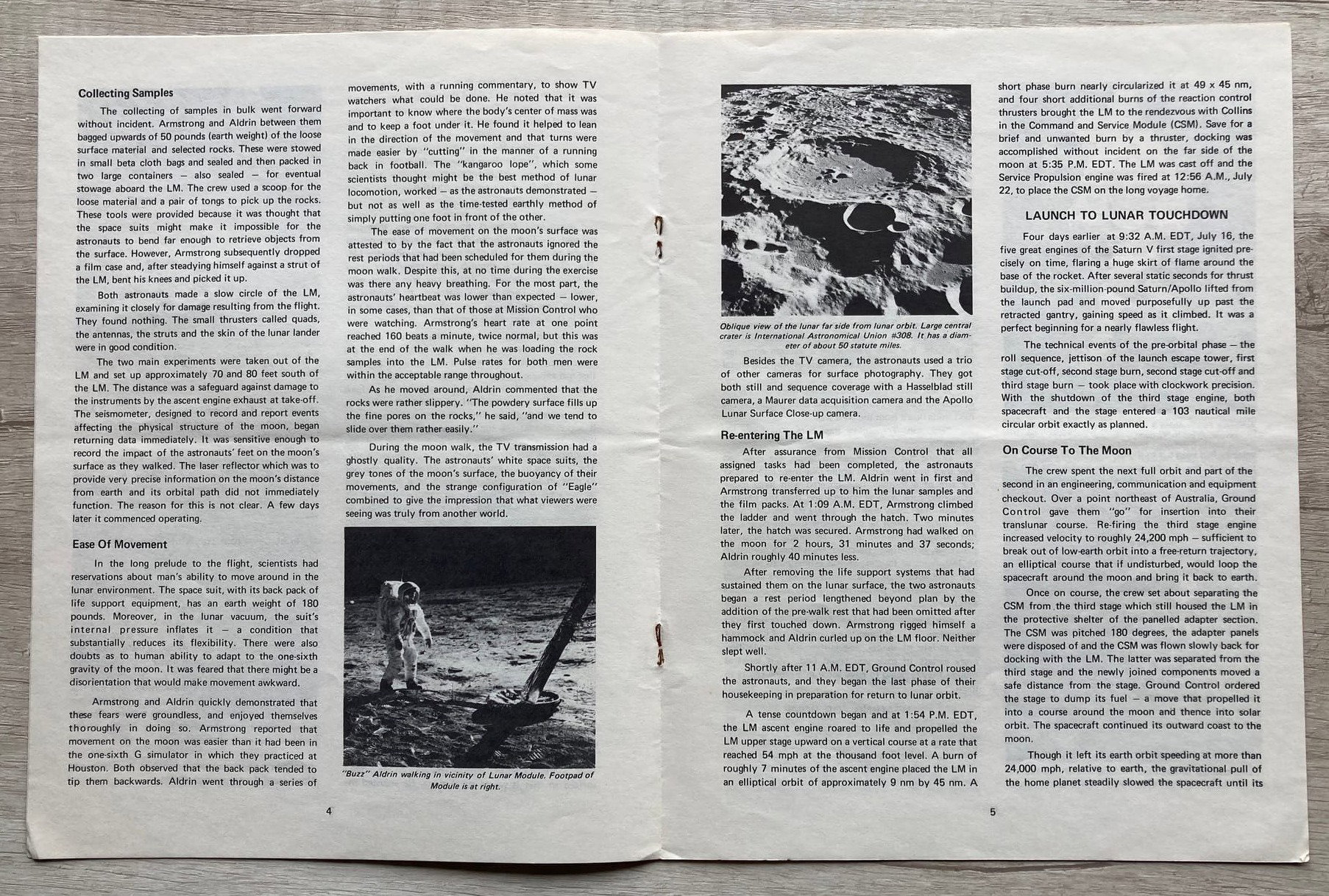 Una publicación de la NASA en donde se describen de manera resumida las principales características e implicancias de la histórica misión Apollo 11, la llegada por vez primera del ser humano a la Luna.