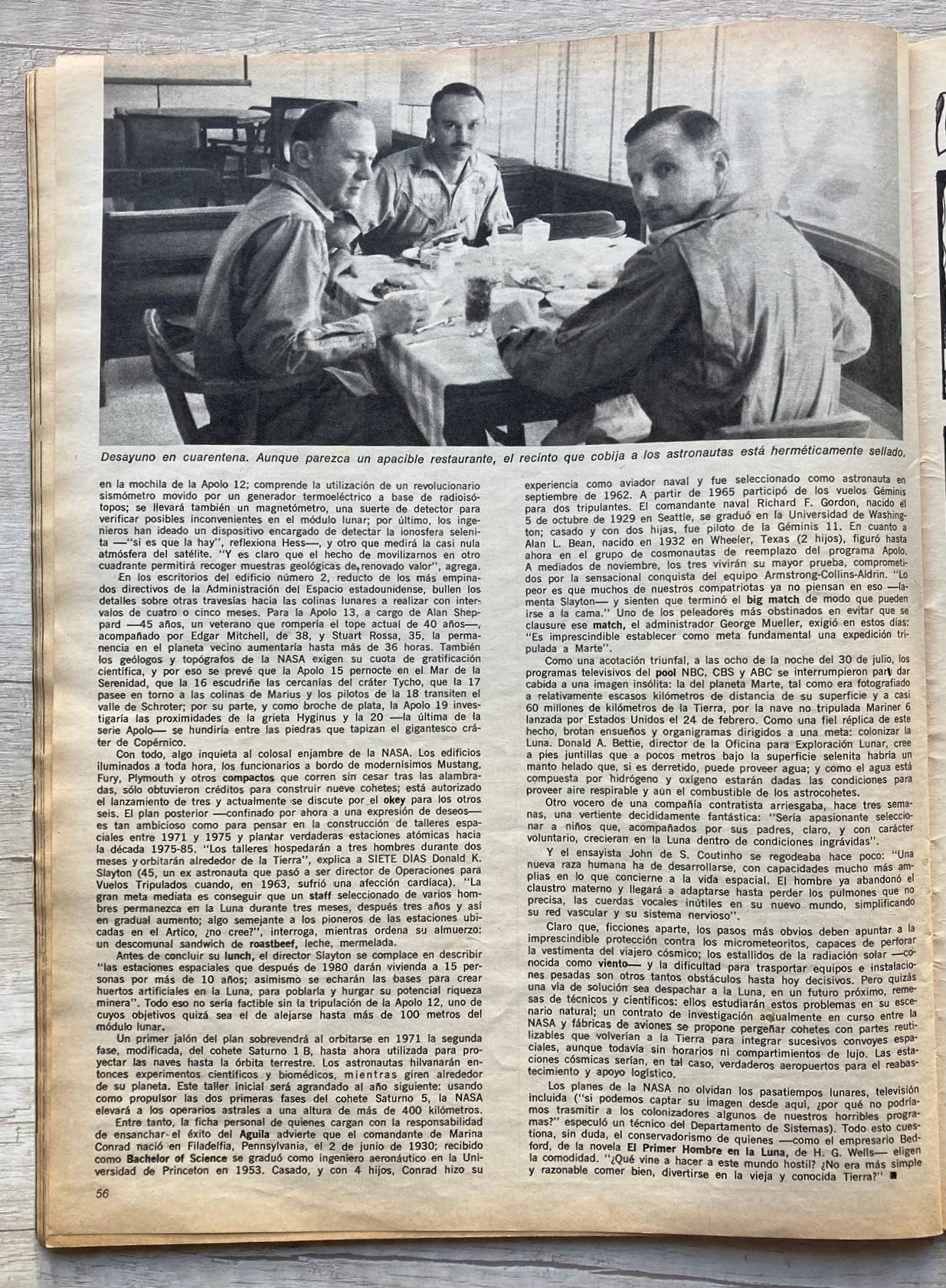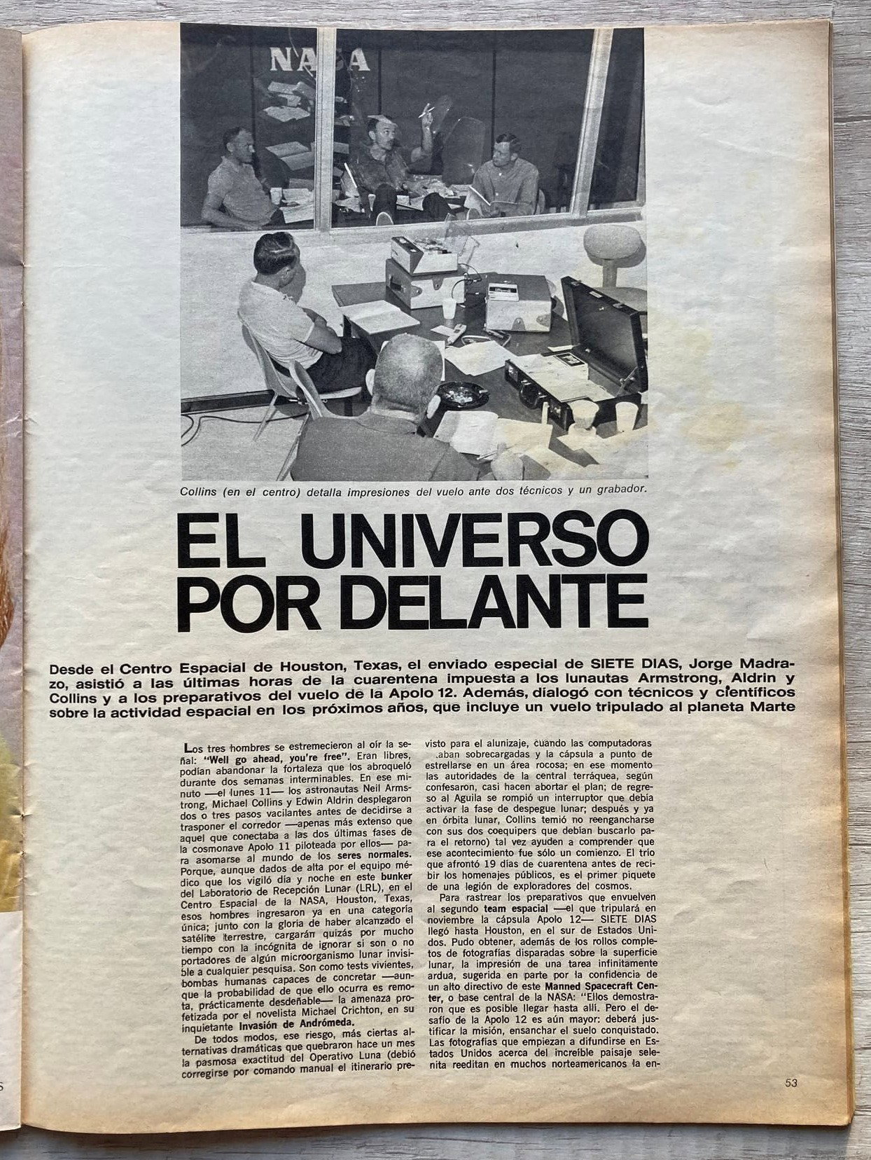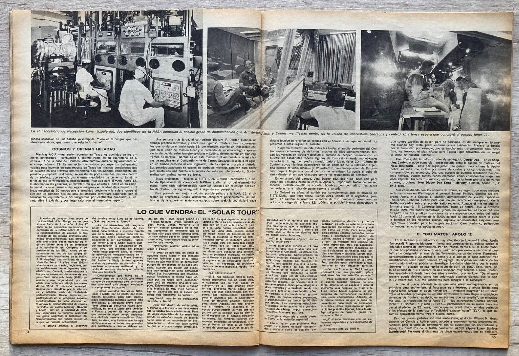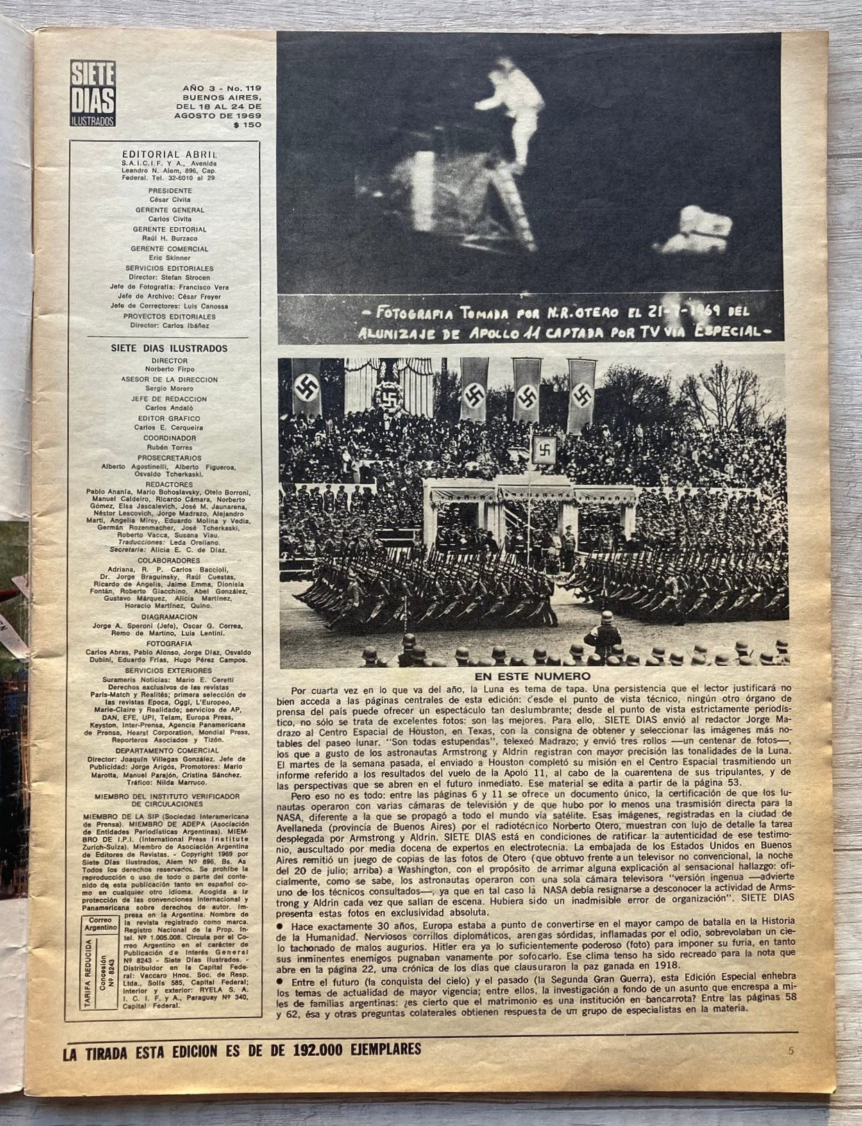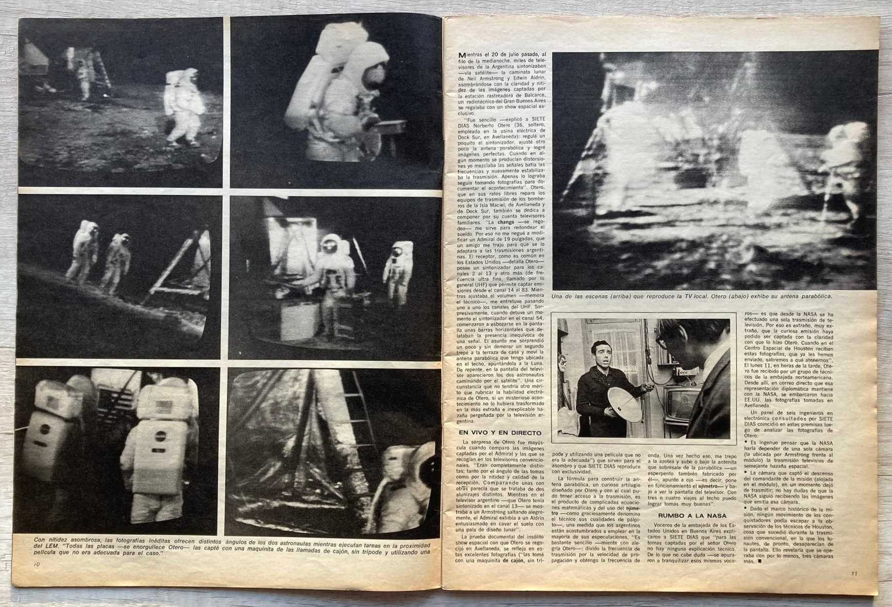 En este número, la revista SIETE DIAS continuaba con la cobertura de la histórica misión Apollo 11. Uno de los detalles particulares fue la historia de Norberto Otero, un radiotécnico de la localidad de Avellaneda (Gran Buenos Aires), quien con un dispositivo casero habría logrado captar imágenes que la misma NASA televisó pero no para todo el público.