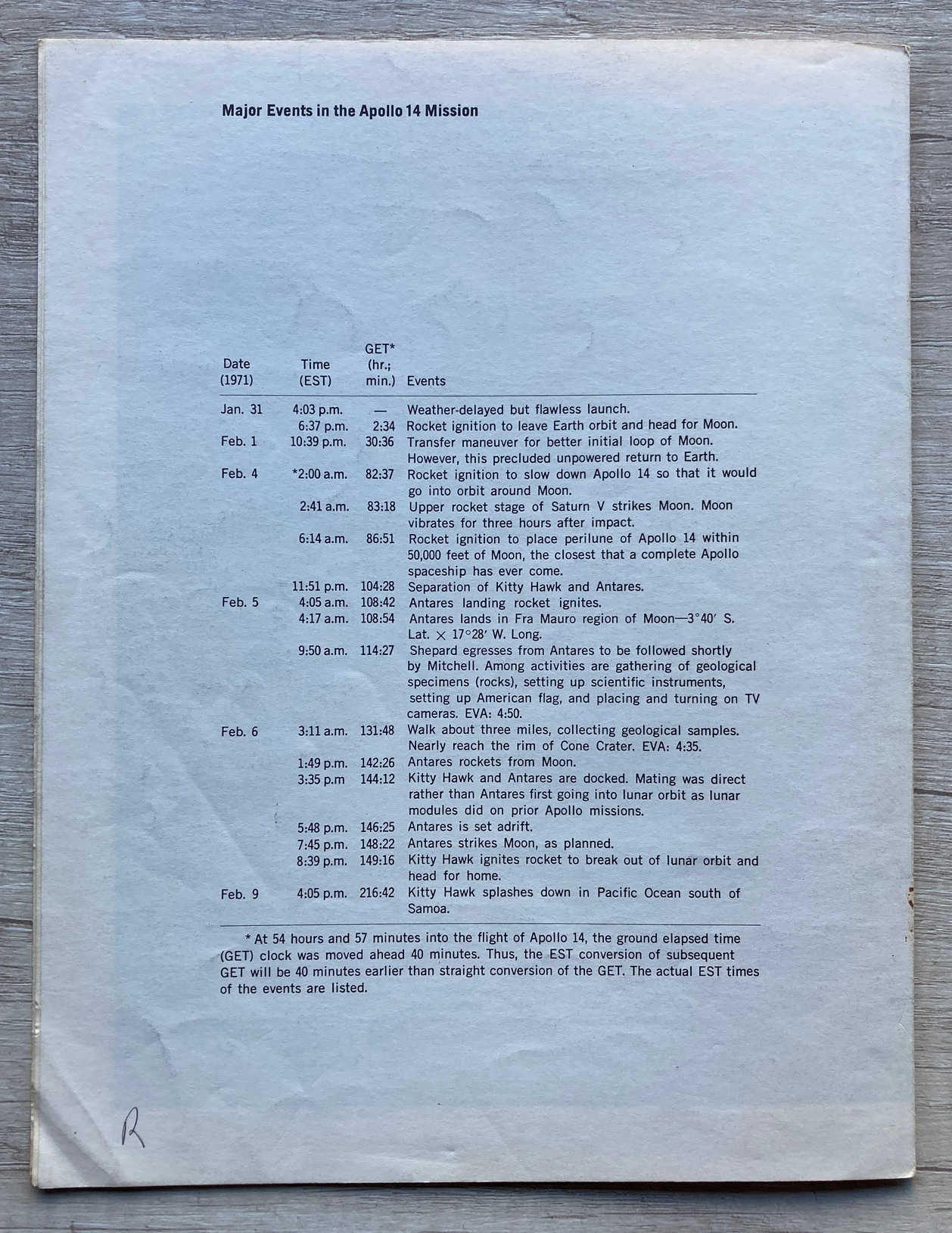 , publicación de la NASA, dedicada a la misión Apollo 14.