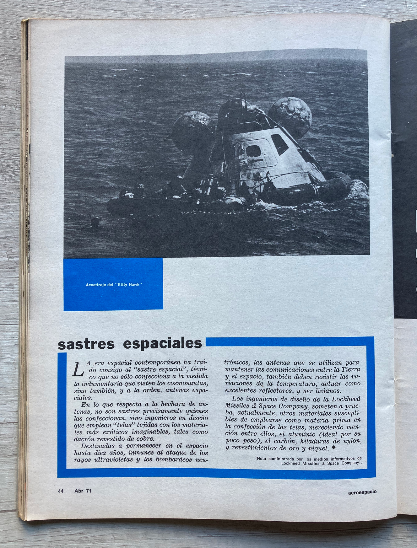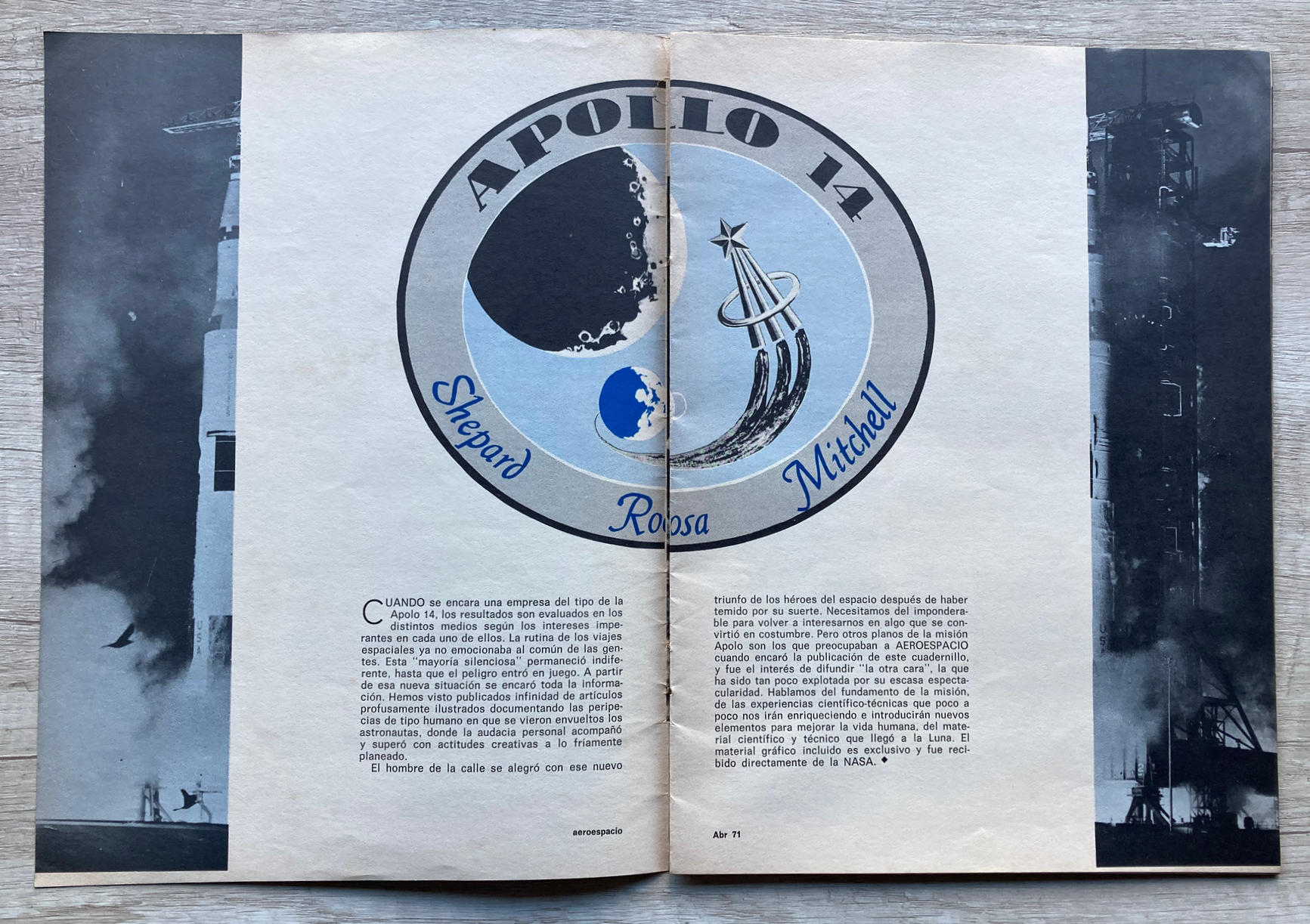 En su edición nro. 344 correspondiente al mes de abril de 1971, la famosa revista argentina Aeroespacio publicaba un suplemento especial de 20 páginas sobre la misión Apollo 14.