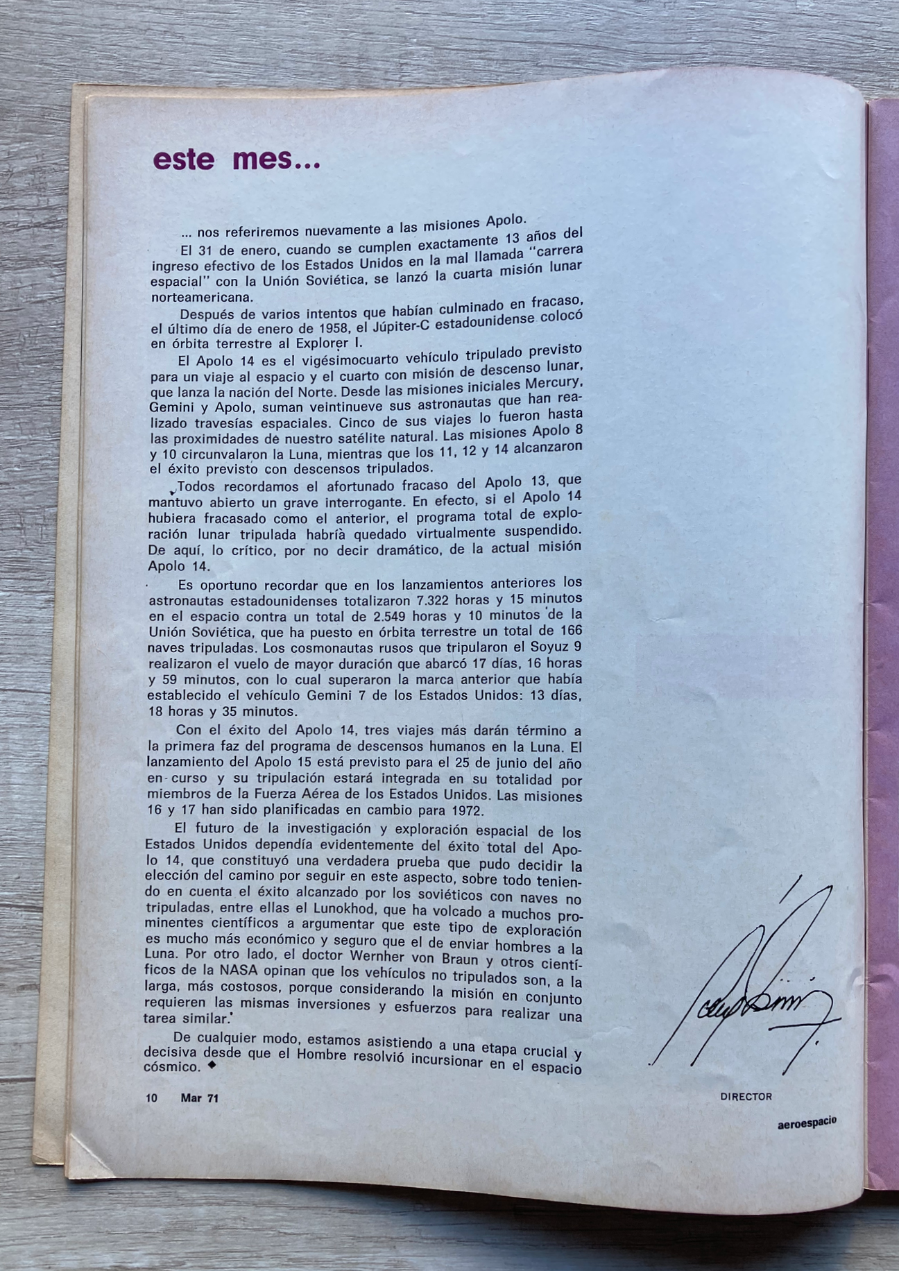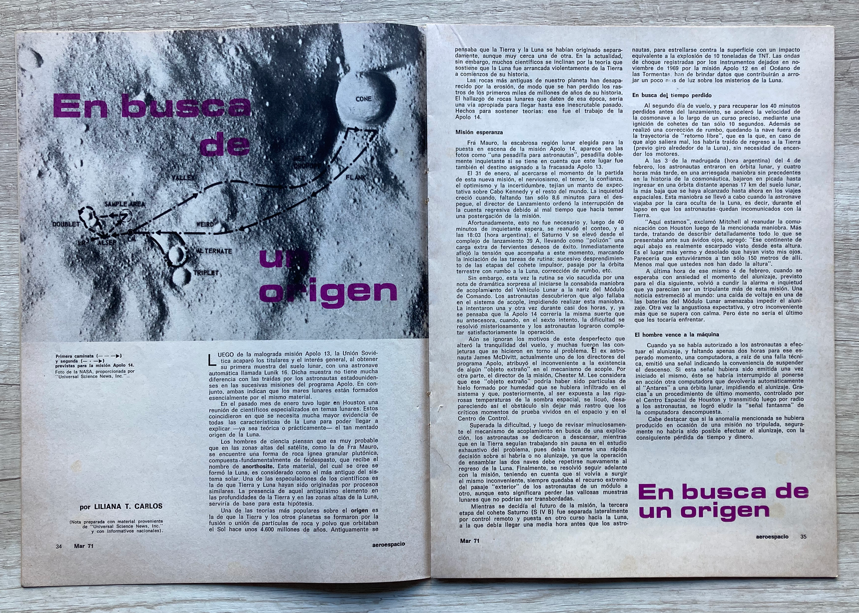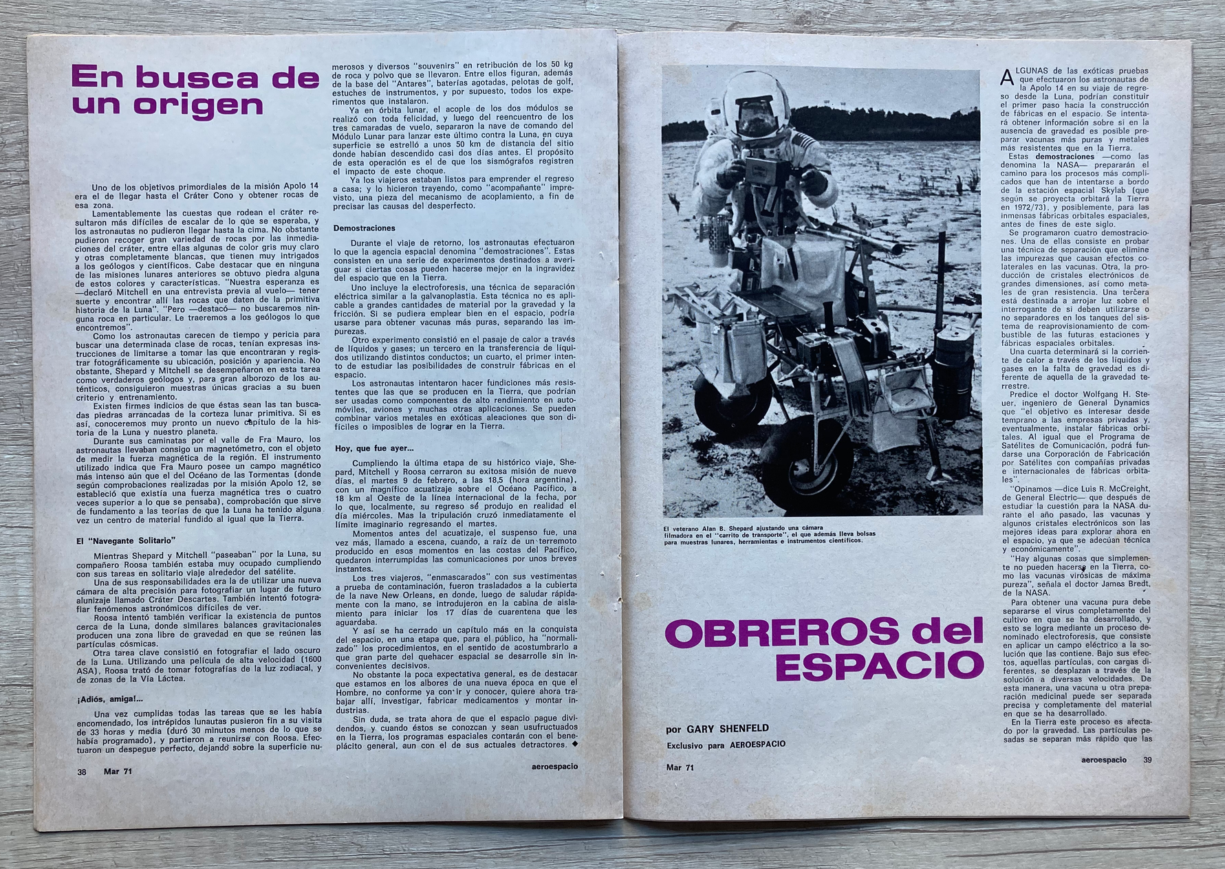 En su edición nro. 343 correspondiente al mes de marzo de 1971, la famosa revista argentina Aeroespacio publicaba un suplemento especial sobre la misión Apollo 14.