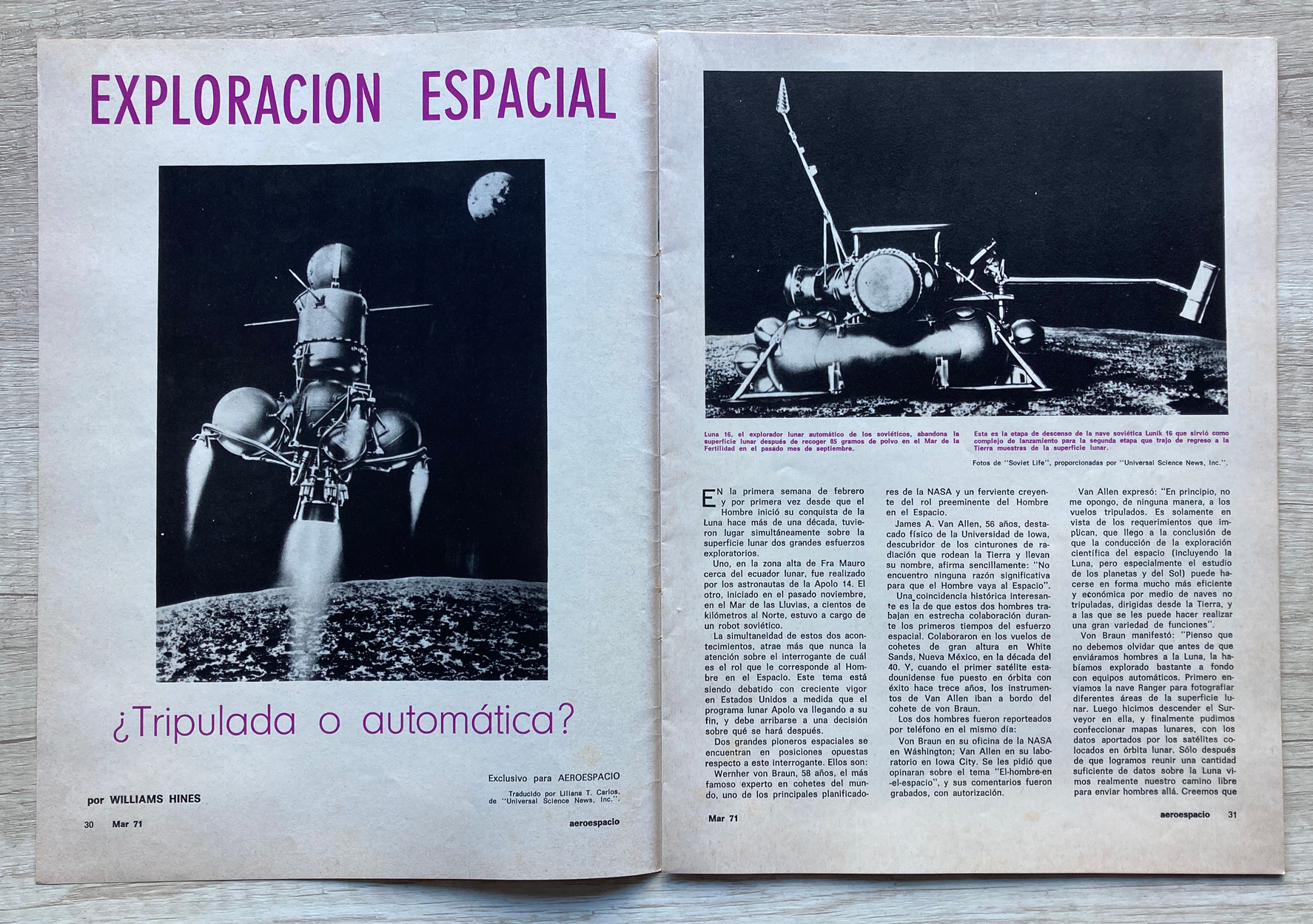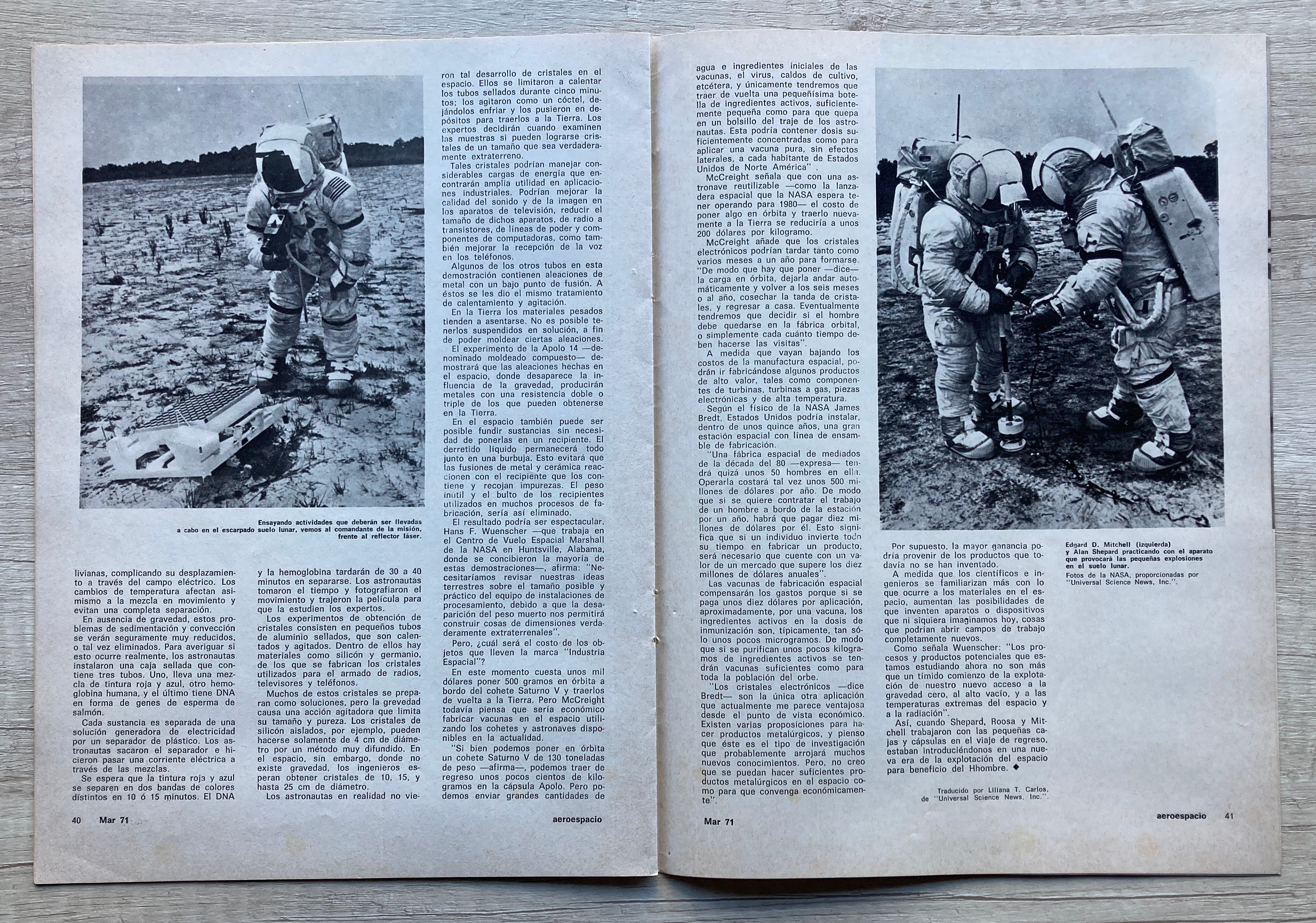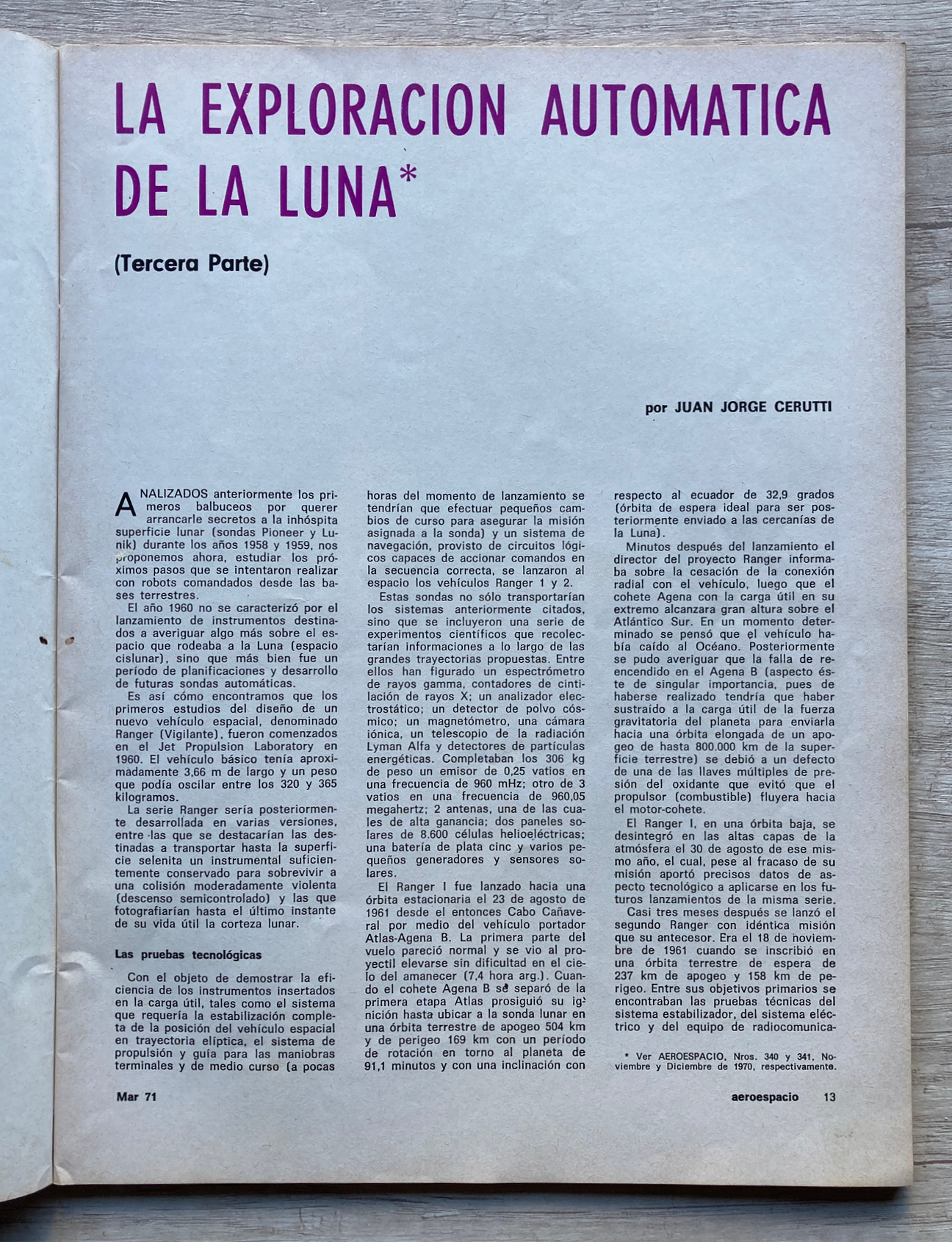 En su edición nro. 343 correspondiente al mes de marzo de 1971, la famosa revista argentina Aeroespacio publicaba un suplemento especial sobre la misión Apollo 14.