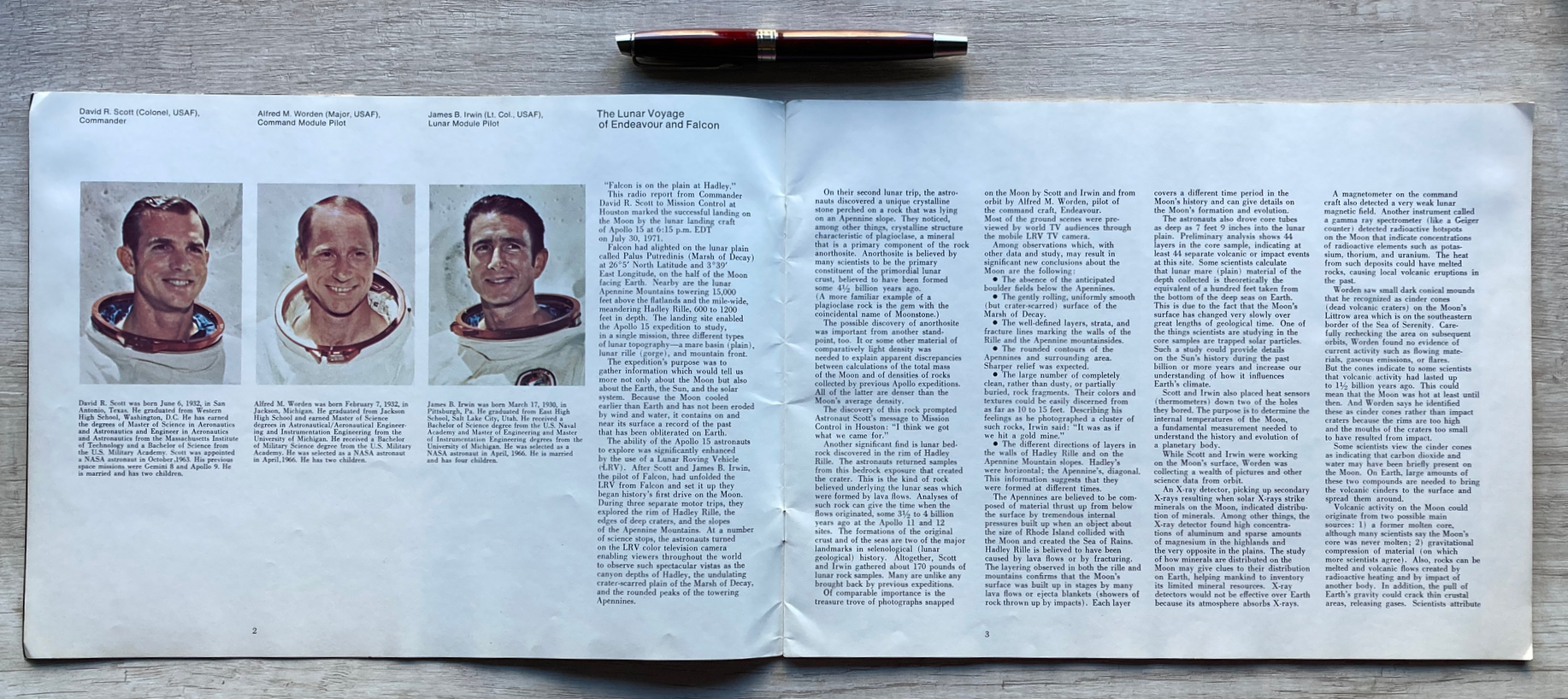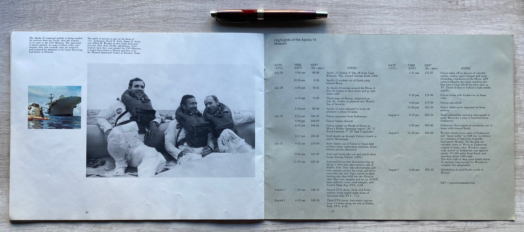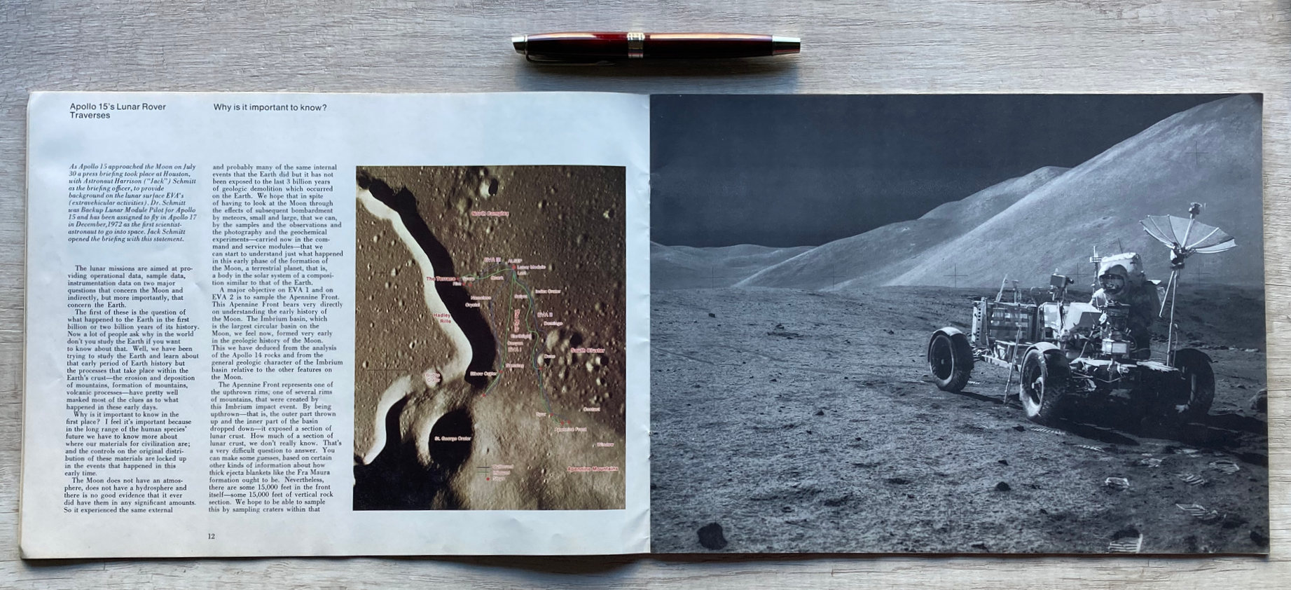 En la Base Hadley, una publicación a todo color de la Oficina de Asuntos Públicos de la NASA en donde se describe la misión Apollo 15. Impresa en papel ilustración, consta de 34 páginas.