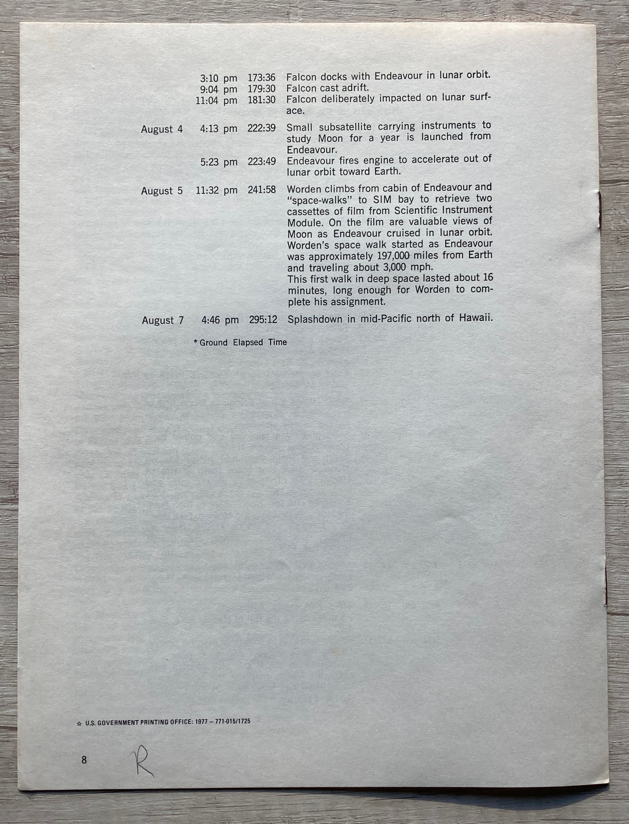 de la NASA, en esta ocasión, dedicada a la misión Apollo 15.