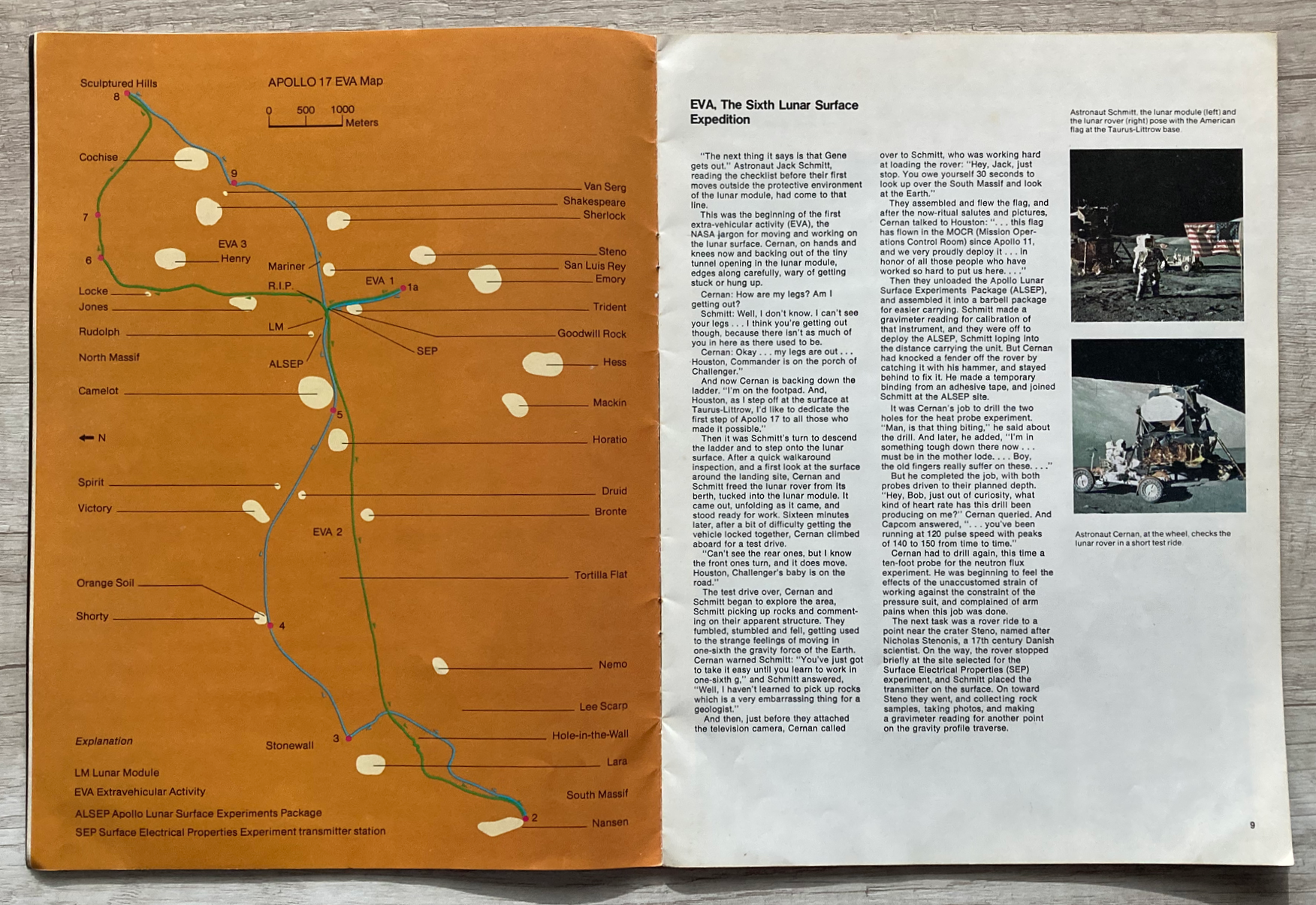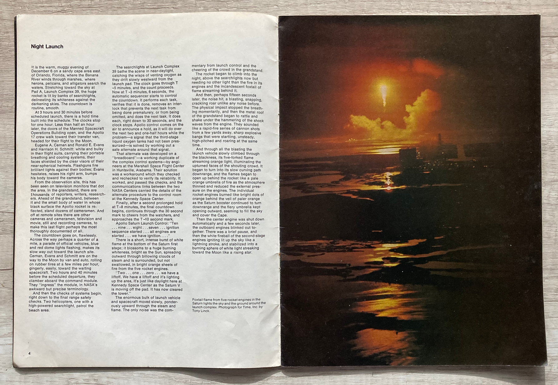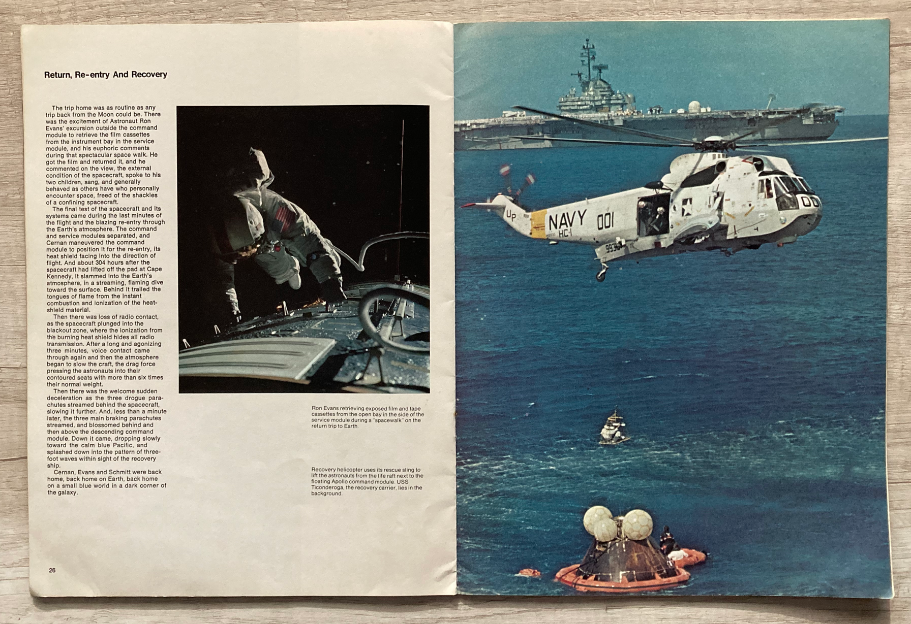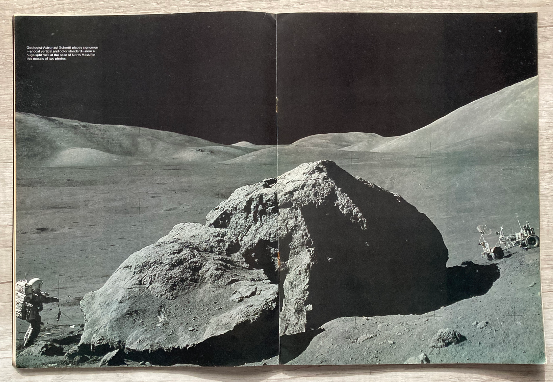 A lo largo de 34 páginas en papel calidad fotográfica y a todo color, esta publicación recorre las principales características de lo que fue Apollo 17, la última misión tripulada a la Luna.