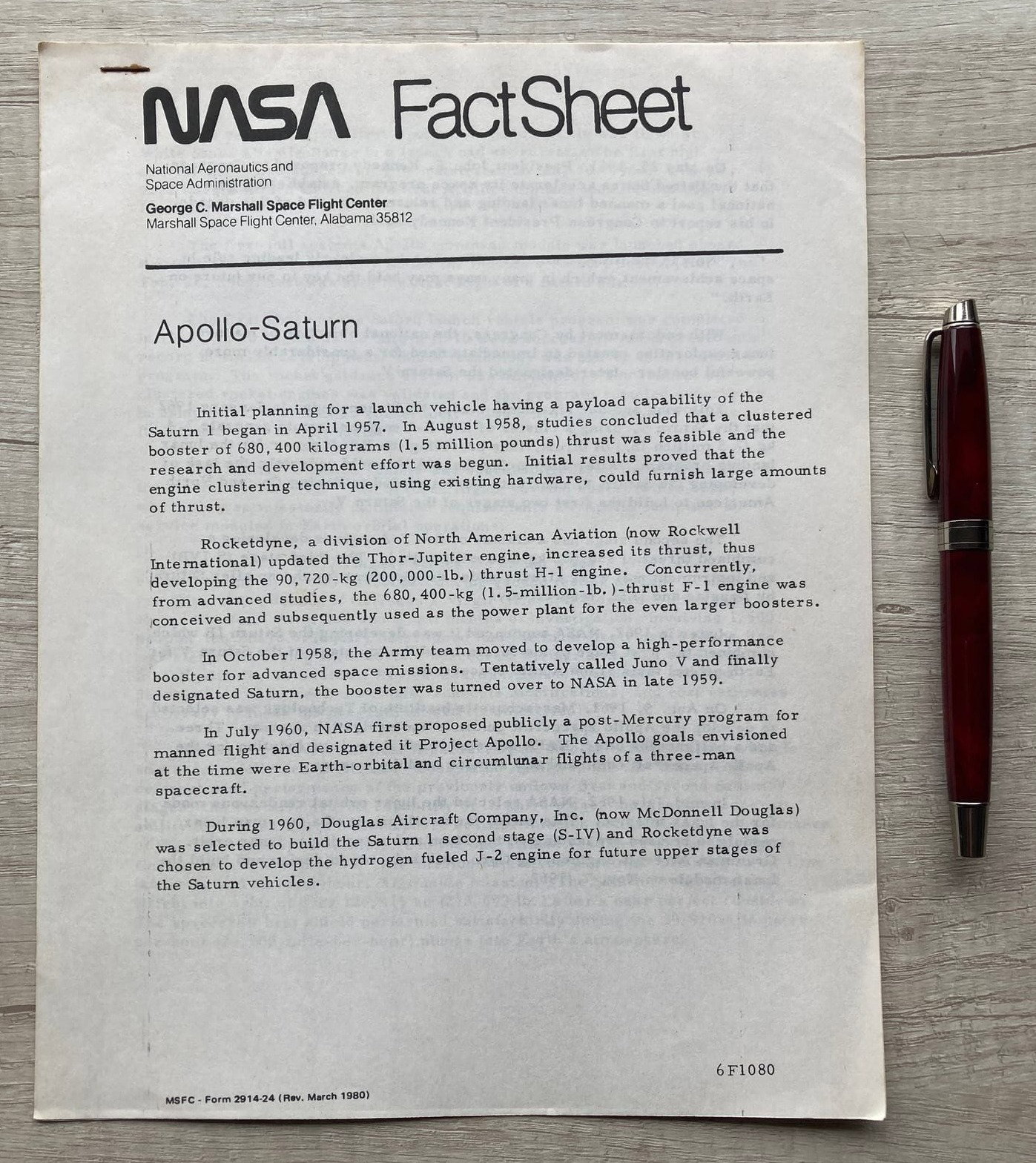 Se trata de una publicación de marzo de 1980 por parte del Centro Espacial Marshall, uno de los principales de la NASA, la agencia espacial de los Estados Unidos de América.