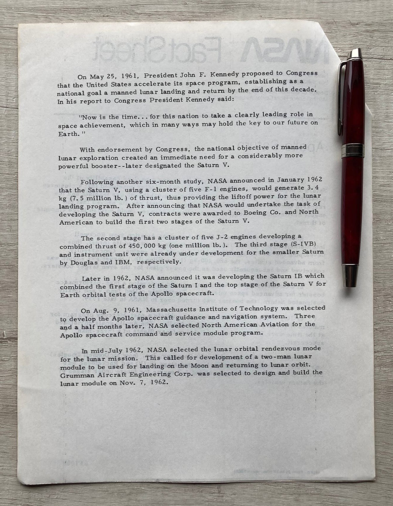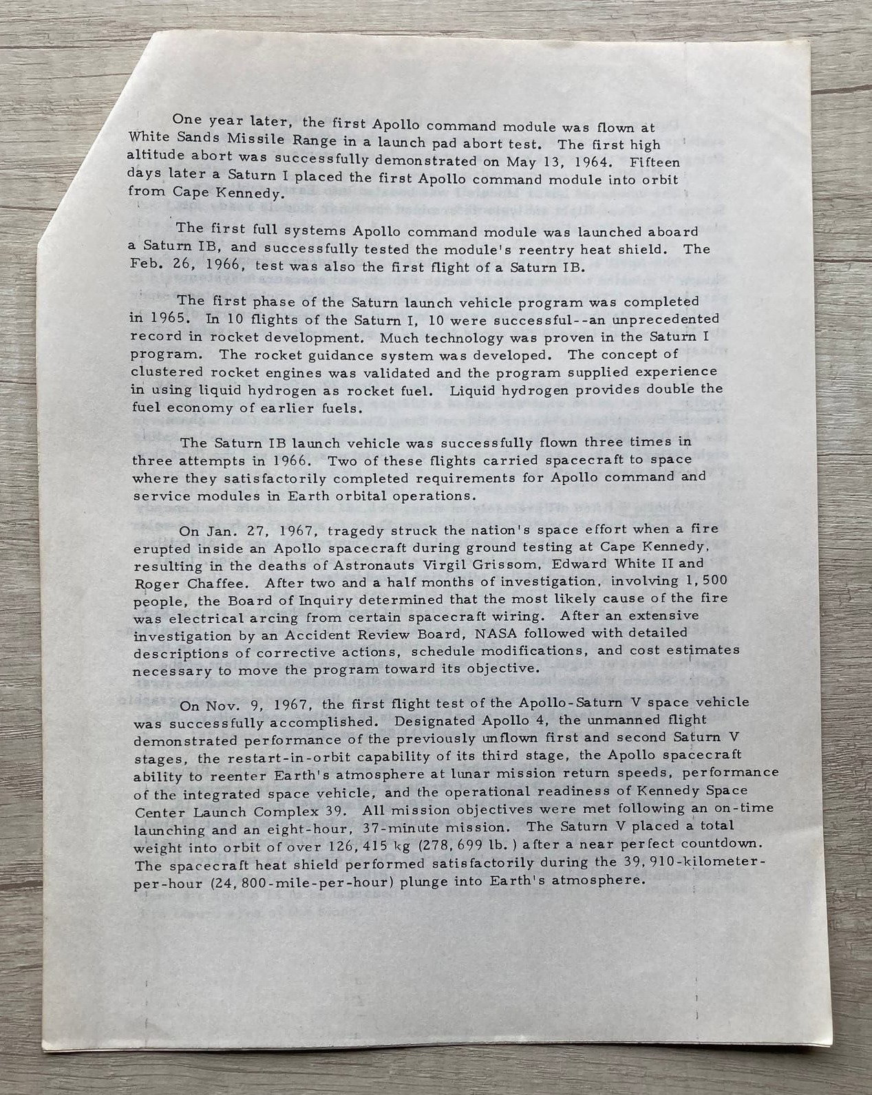 En el mismo se describen las principales características de los cohetes de la serie Saturn, de los cuales, el más grande y potente de la historia, el Saturno V, posibilitó la llegada del ser humano a la Luna.
