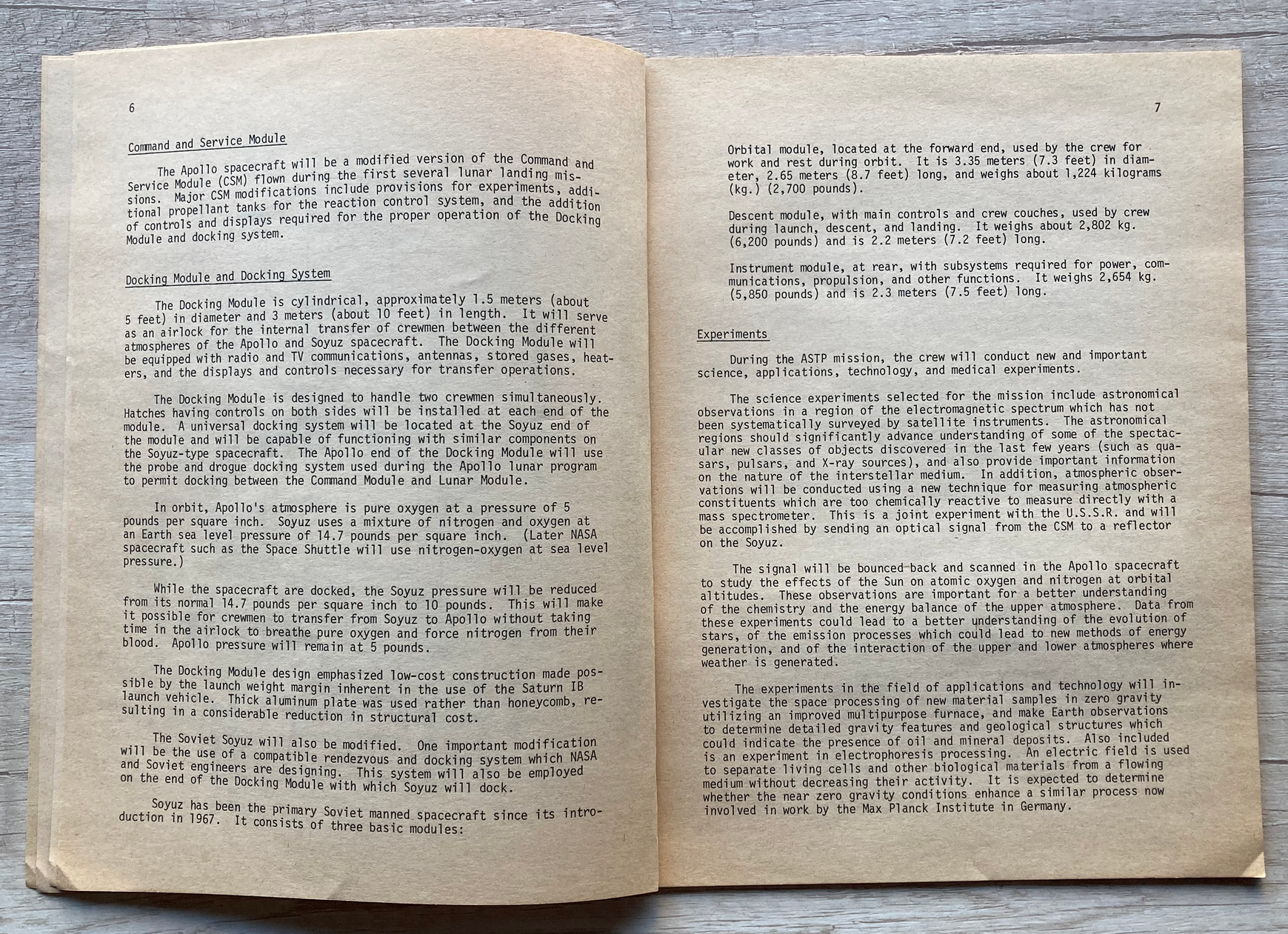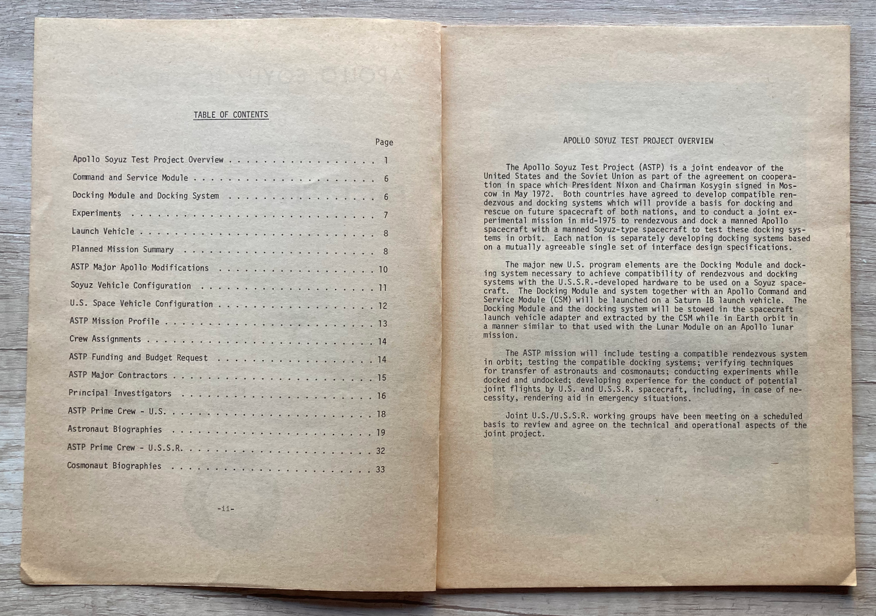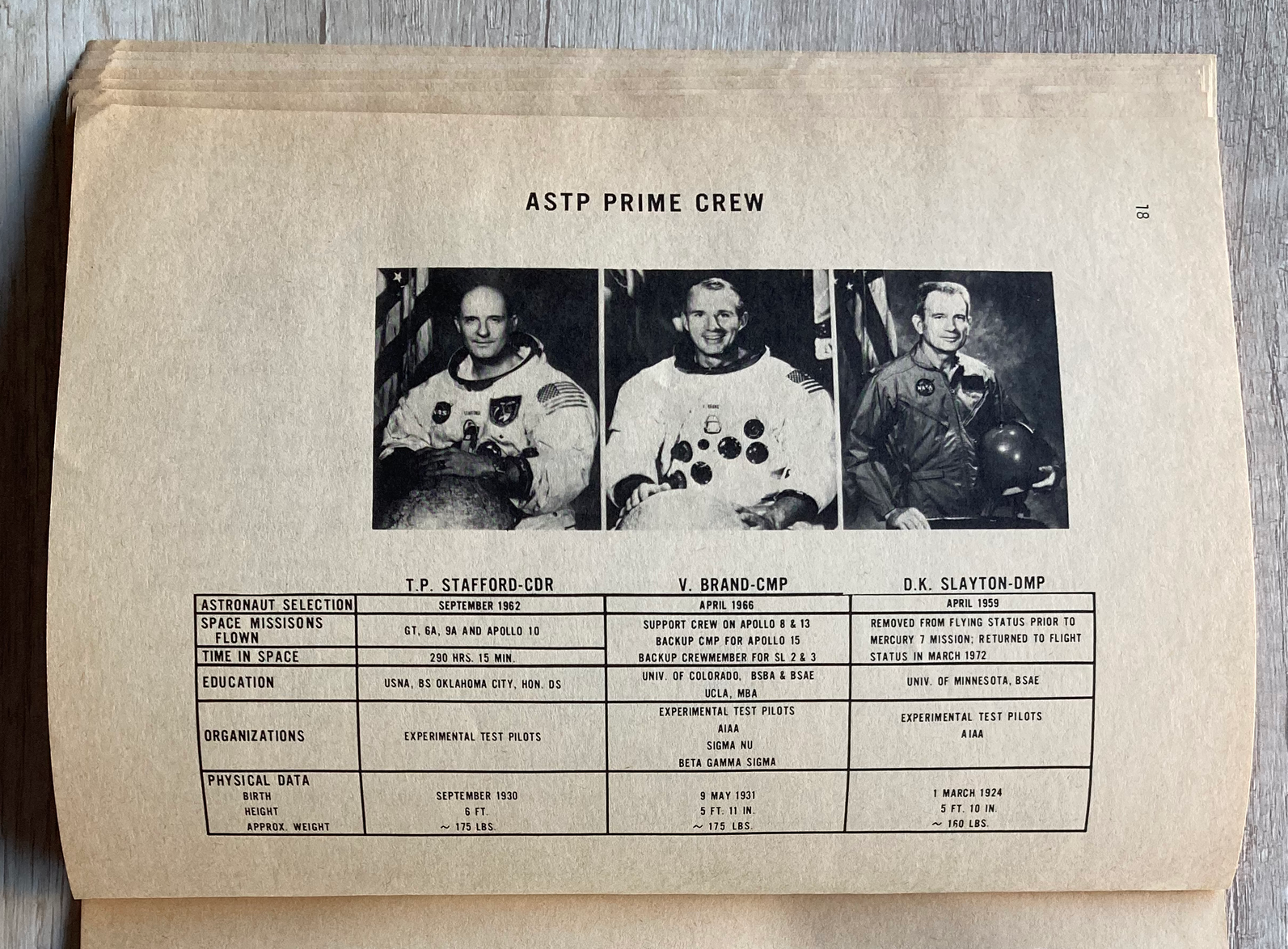 Publicación/Informe de la NASA sobre el programa espacial tripulado estadounidense-soviético Apollo-Soyuz.