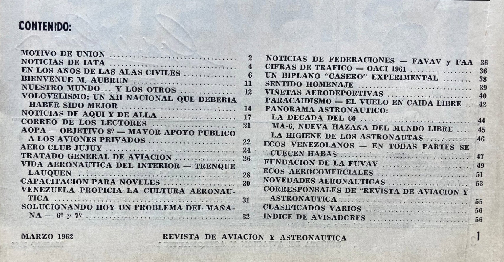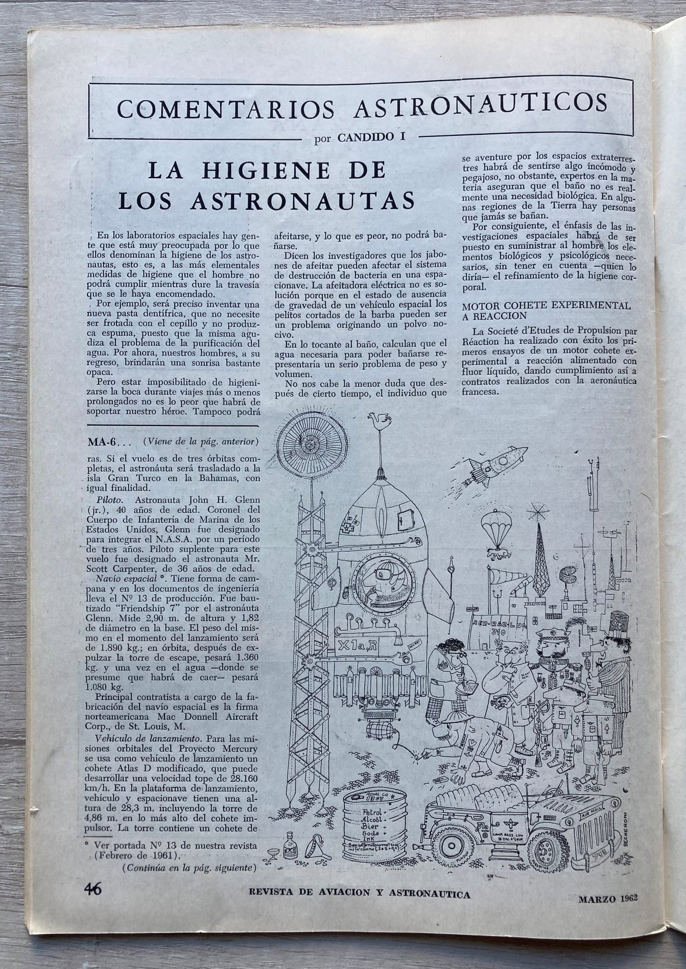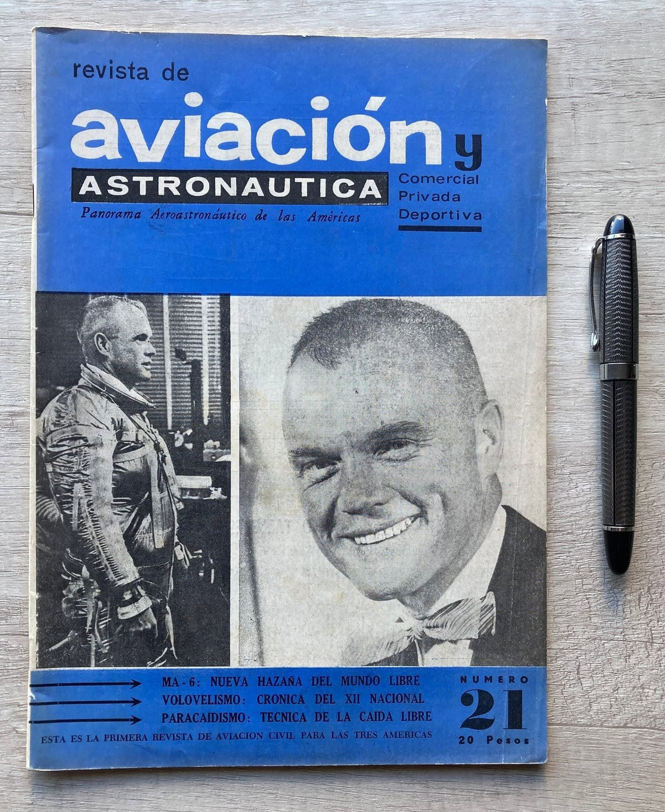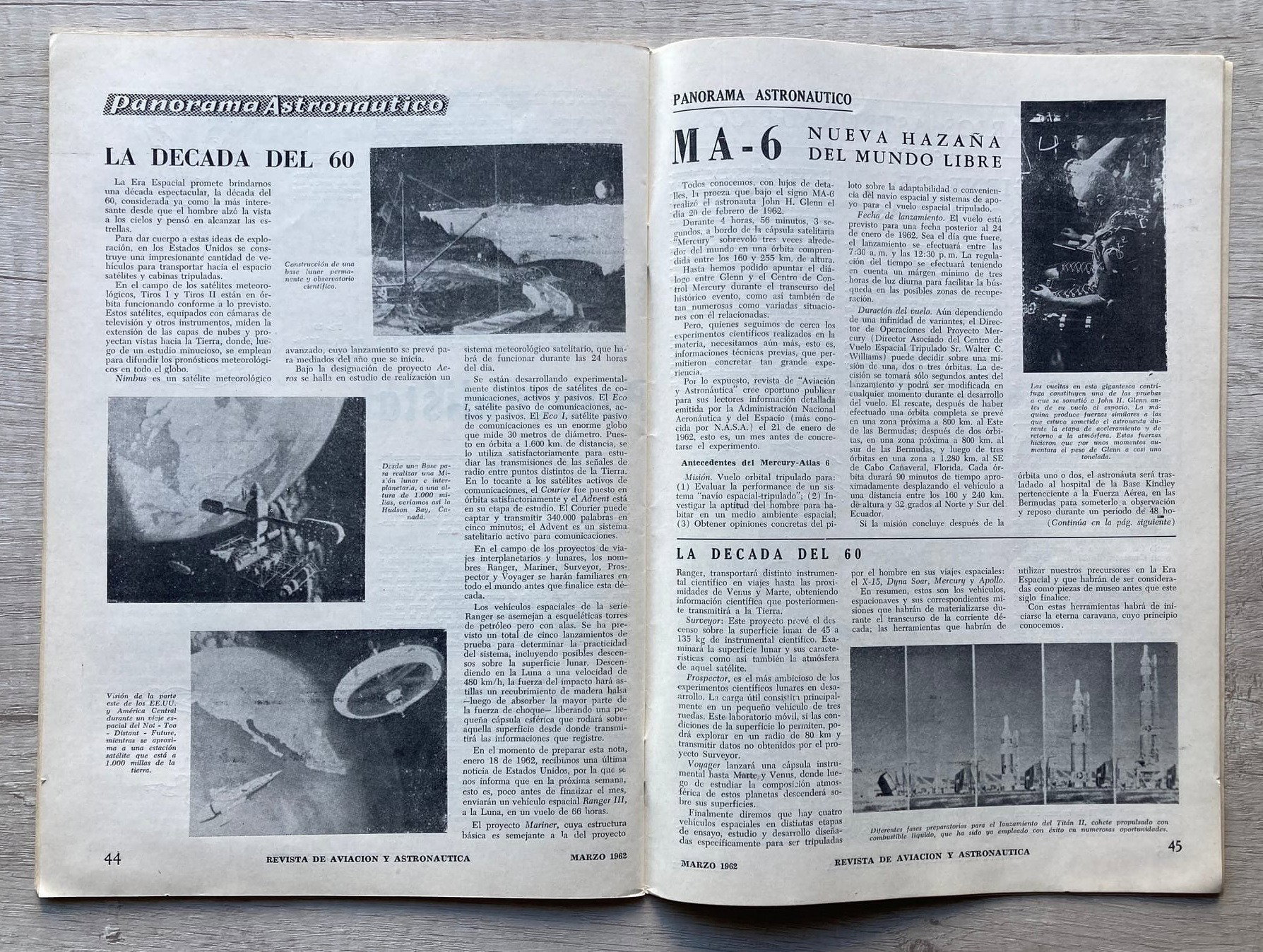 En su edición nro. 21 correspondiente a marzo de 1962, la revista "Aviación y Astronáutica" (Argentina) reflejaba el histórico vuelo de John Glenn del 20 de febrero del mismo año, convirtiéndose en el primer norteamericano en orbitar la Tierra.
