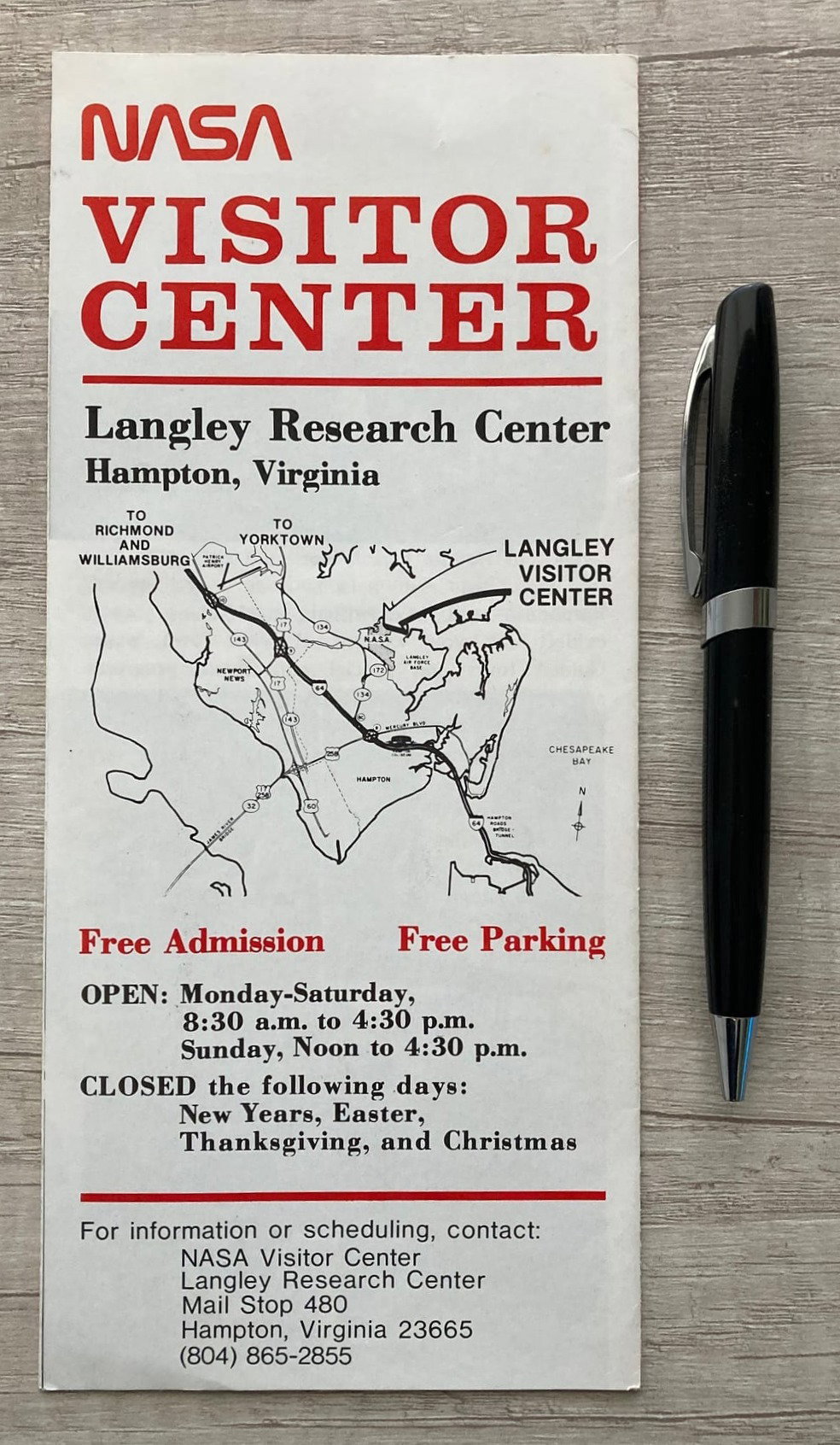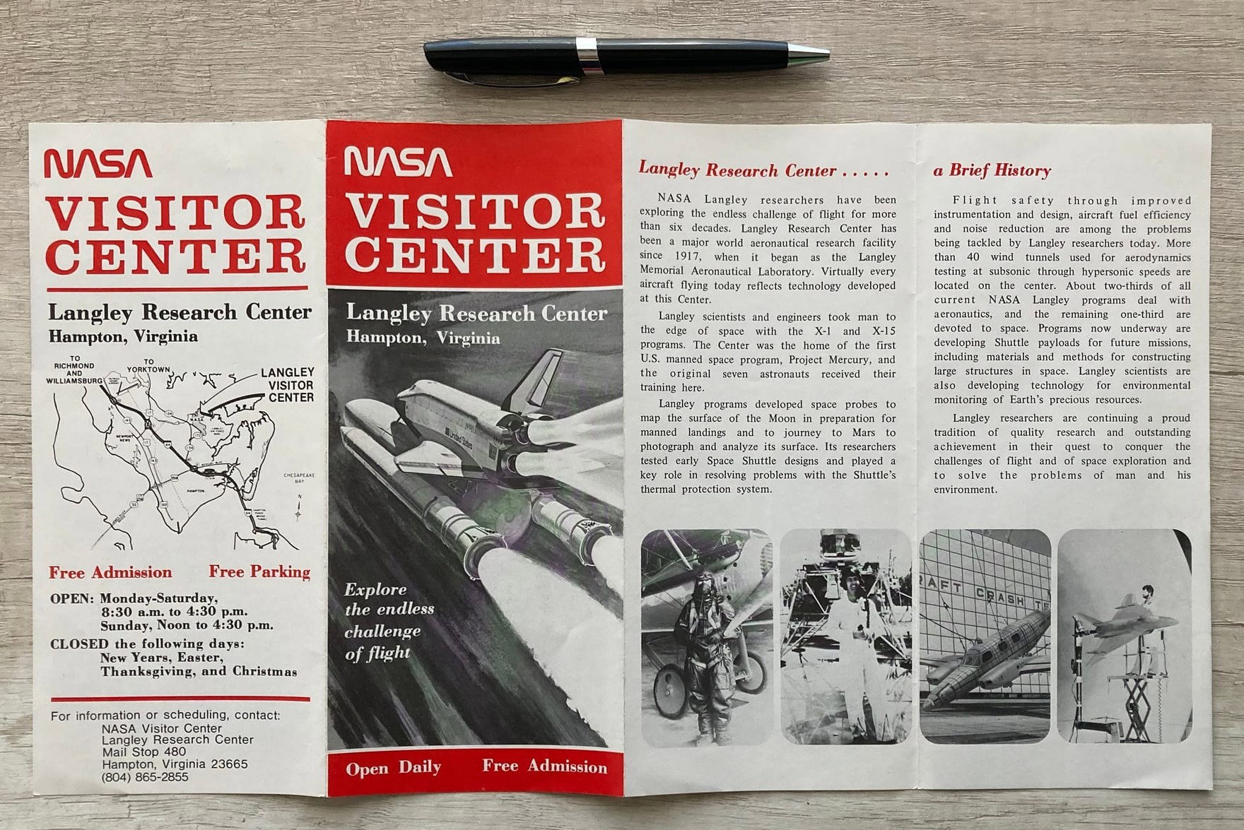 Folleto sobre el Centro de Visitas al complejo Langley de la NASA.
