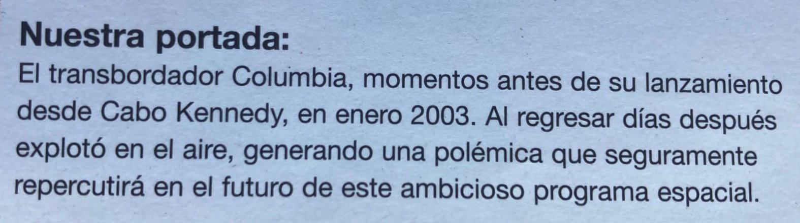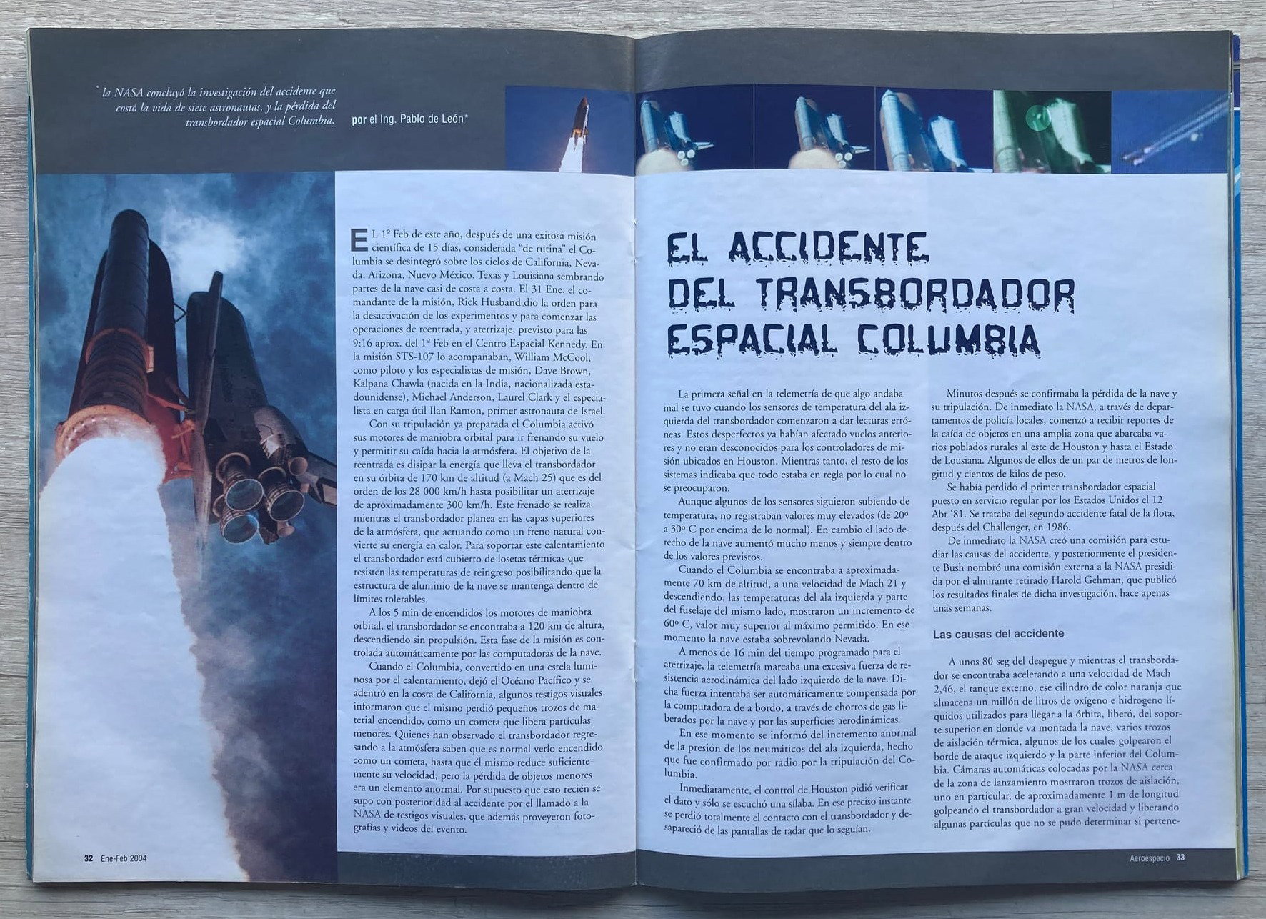 A un año de la tragedia del Transbordador Espacial Columbia (misión STS-107), un informe de la revista argentina Aeroespacio escrito por el ingeniero Pablo de León.