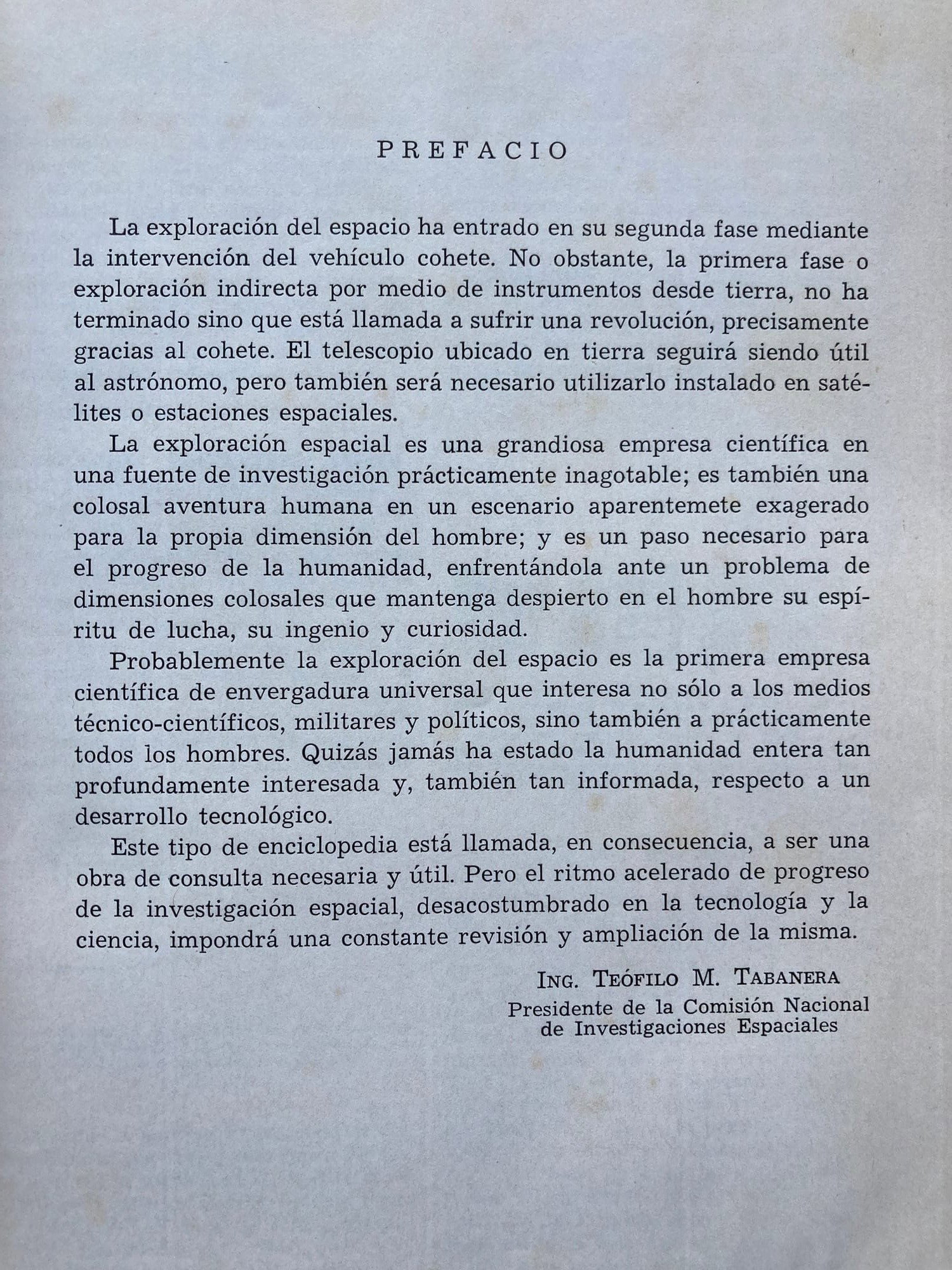 El prefacio a la traducción al español está a cargo del Ing. Teófilo Tabanera, precursor de la astronáutica argentina y quien fuera el presidente de la Comisión Nacional de Investigaciones Espaciales, la agencia espacial argentina, actualmente CONAE (Comisión Nacional de Actividades Espaciales).