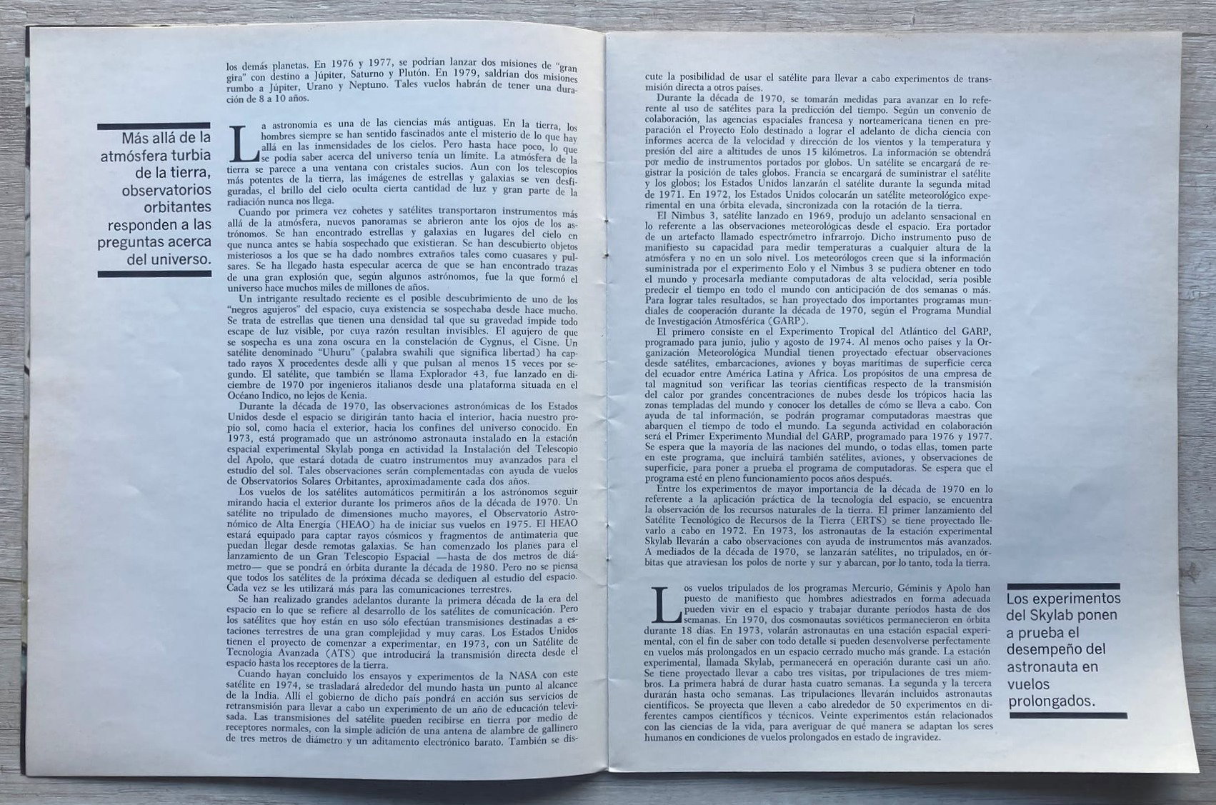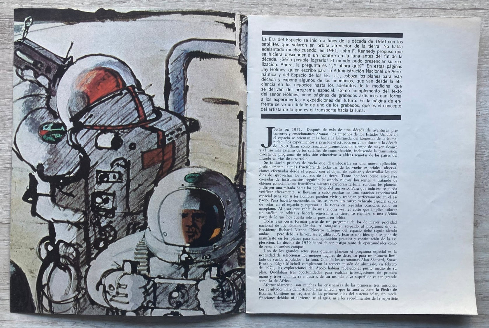Un ensayo de Jay Holmes para la NASA, en donde el autor esboza los objetivos de la agencia espacial estadounidense para la década de 1970.