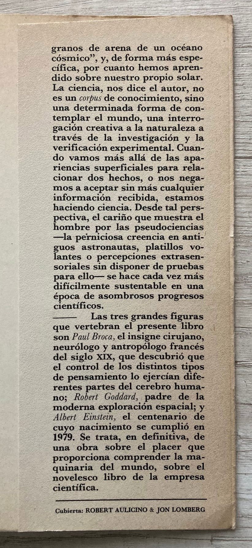 Como bien nos tenía acostumbrados, otra maravillosa obra de Carl Sagan. En El cerebro de Broca encontraremos una serie de escritos los cuales nos permitirán realizar un recorrido por el maravilloso mundo de la ciencia y sus implicancias.