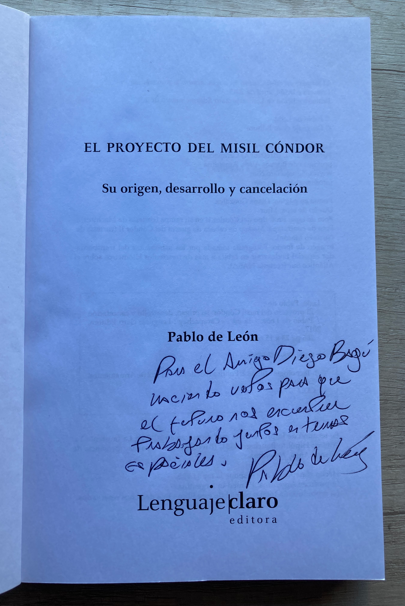 En esta obra complementaria a la "Historia de la Actividad Espacial en Argentina", el mismo autor, Pablo de León, realiza un pormenorizado recorrido de lo que fue el proyecto del misil Cóndor, vector desarrollado en Argentina y que, de no haber sido desmantelado, muy probablemente hubiese permitido con el transcurso del tiempo el desarrollo de cohete más potentes a fin de acceder a la órbita baja terrestre.