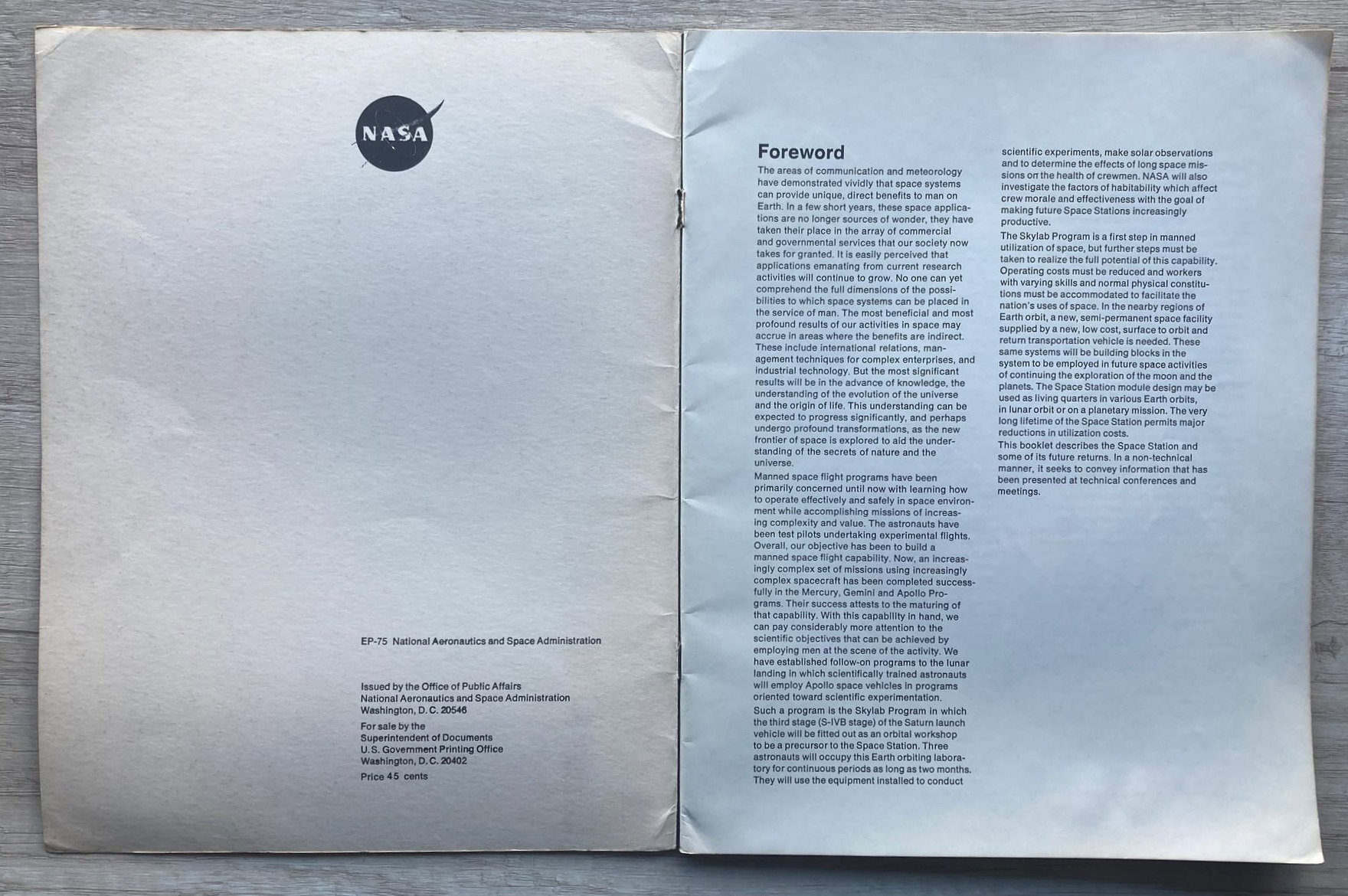 Una publicación de la NASA en donde se describen las principales características de lo que debía tener la estación espacial que los Estados Unidos de América pensaban desarrollar (1975).