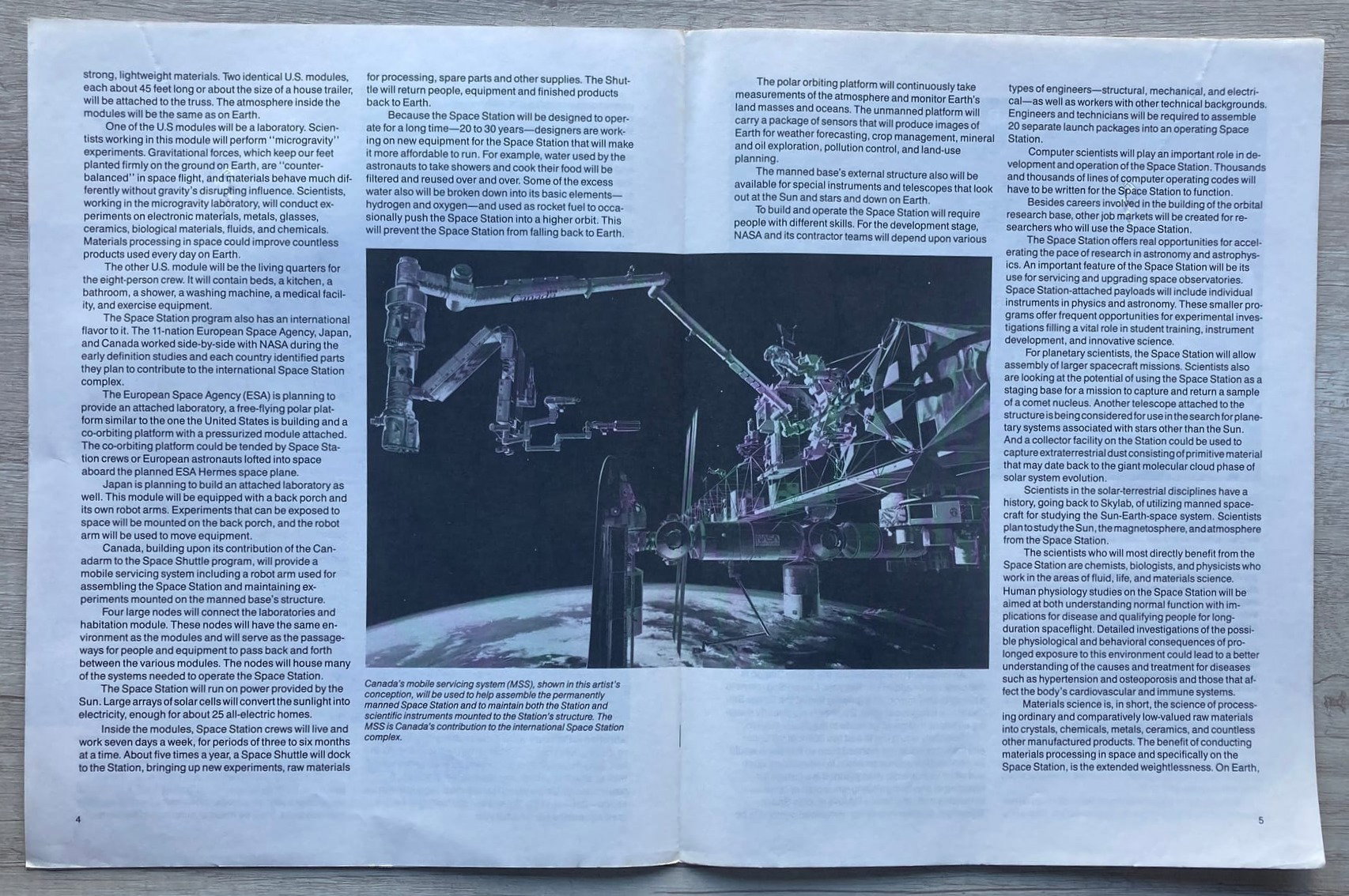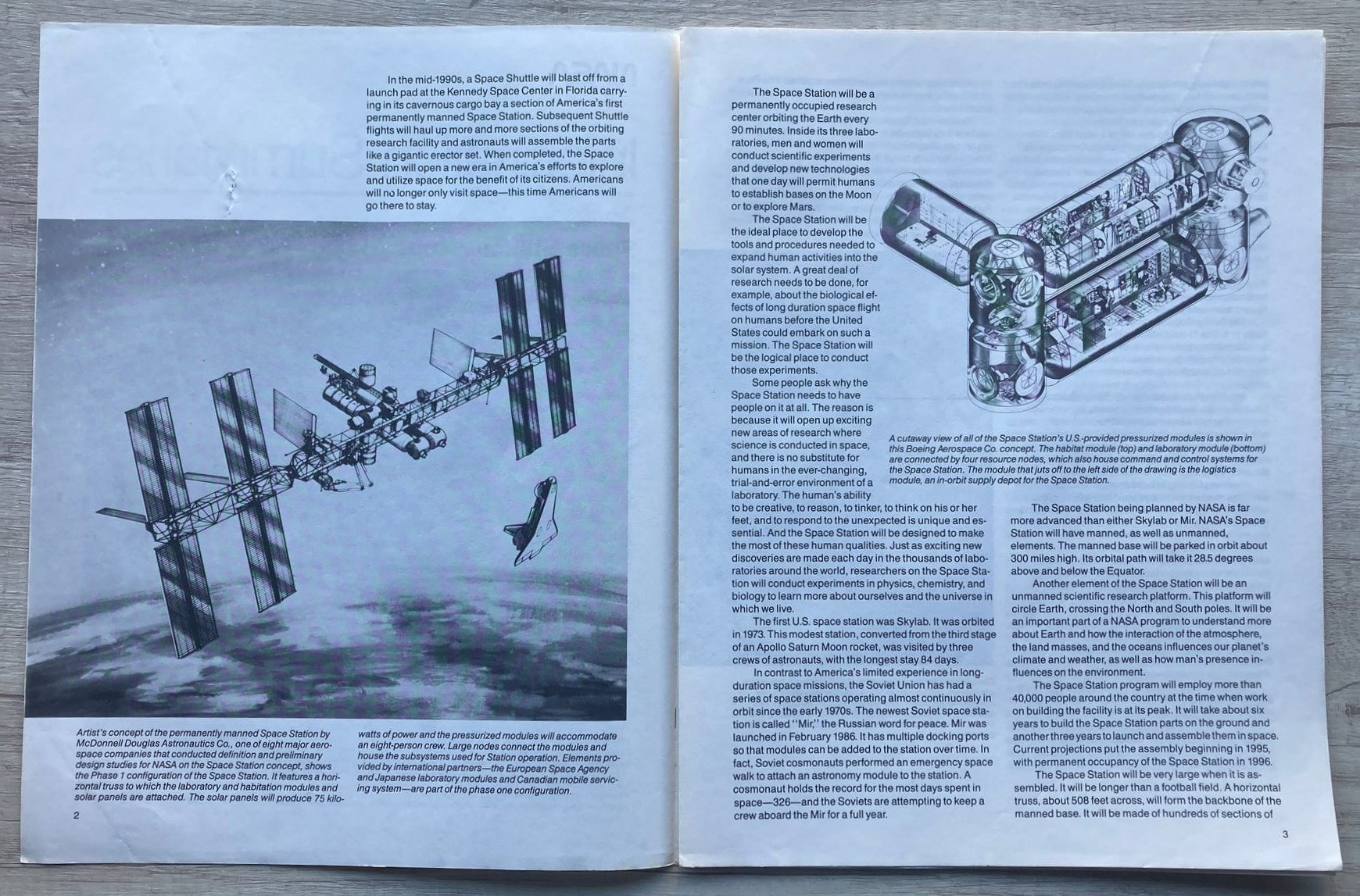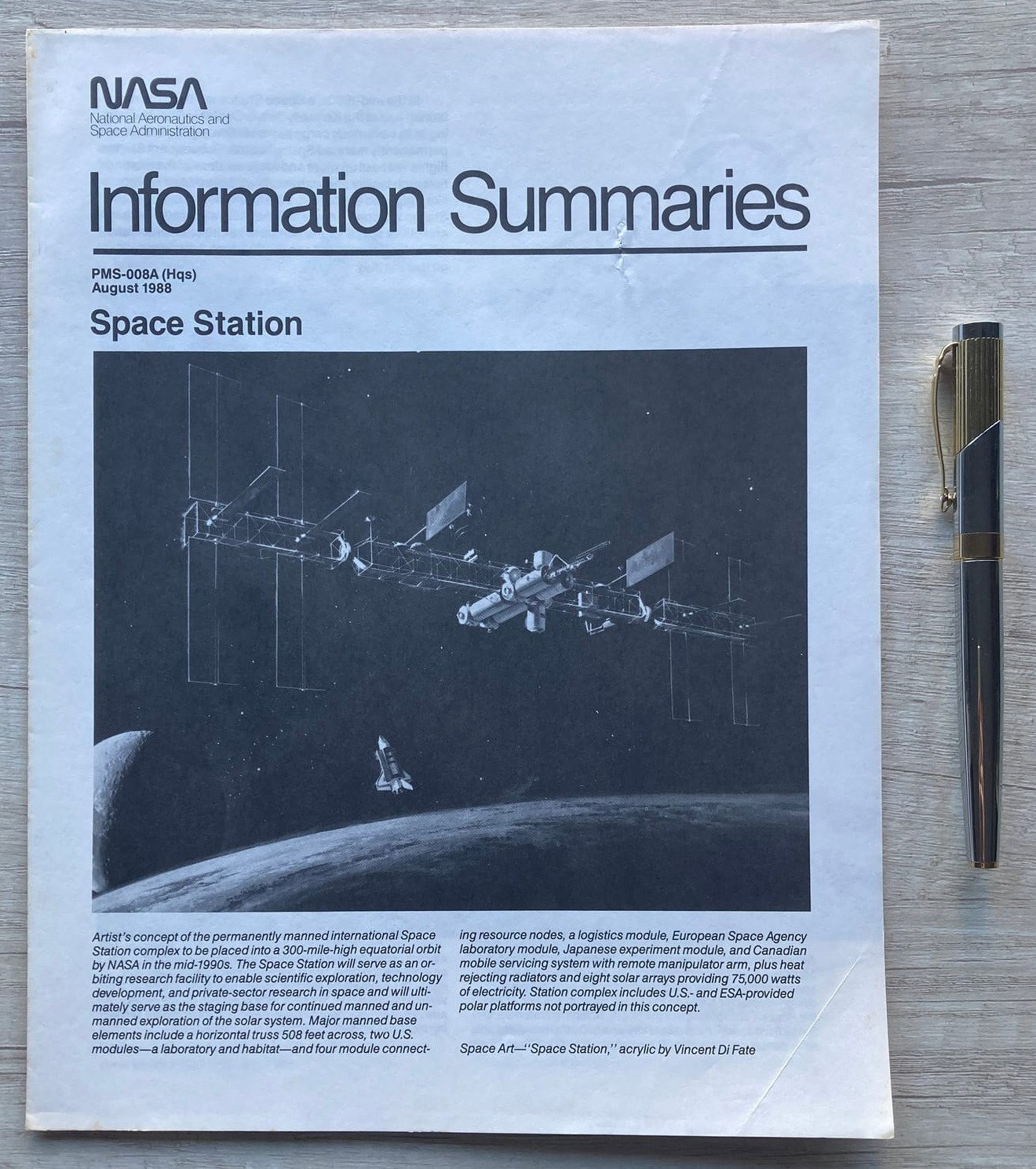 Una publicación de la NASA en donde se describen las principales características de lo que debía tener la estación espacial que los Estados Unidos de América pensaban desarrollar. El complejo proyectado se denominó Freedom, el cual, vale mencionar, nunca fue más allá de los tableros de dibujo.