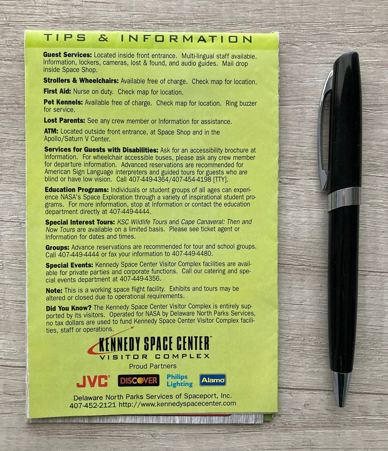 Folleto/Guía al Centro Espacial Kennedy.