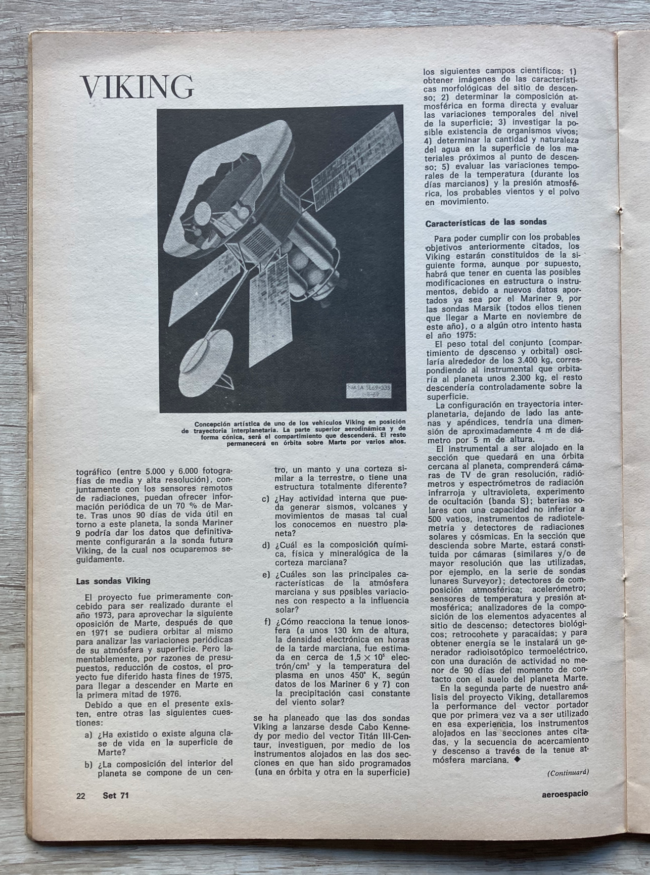 Asi mismo, este número contenía artículos dedicados a la misión marciana Viking y a la Luna.