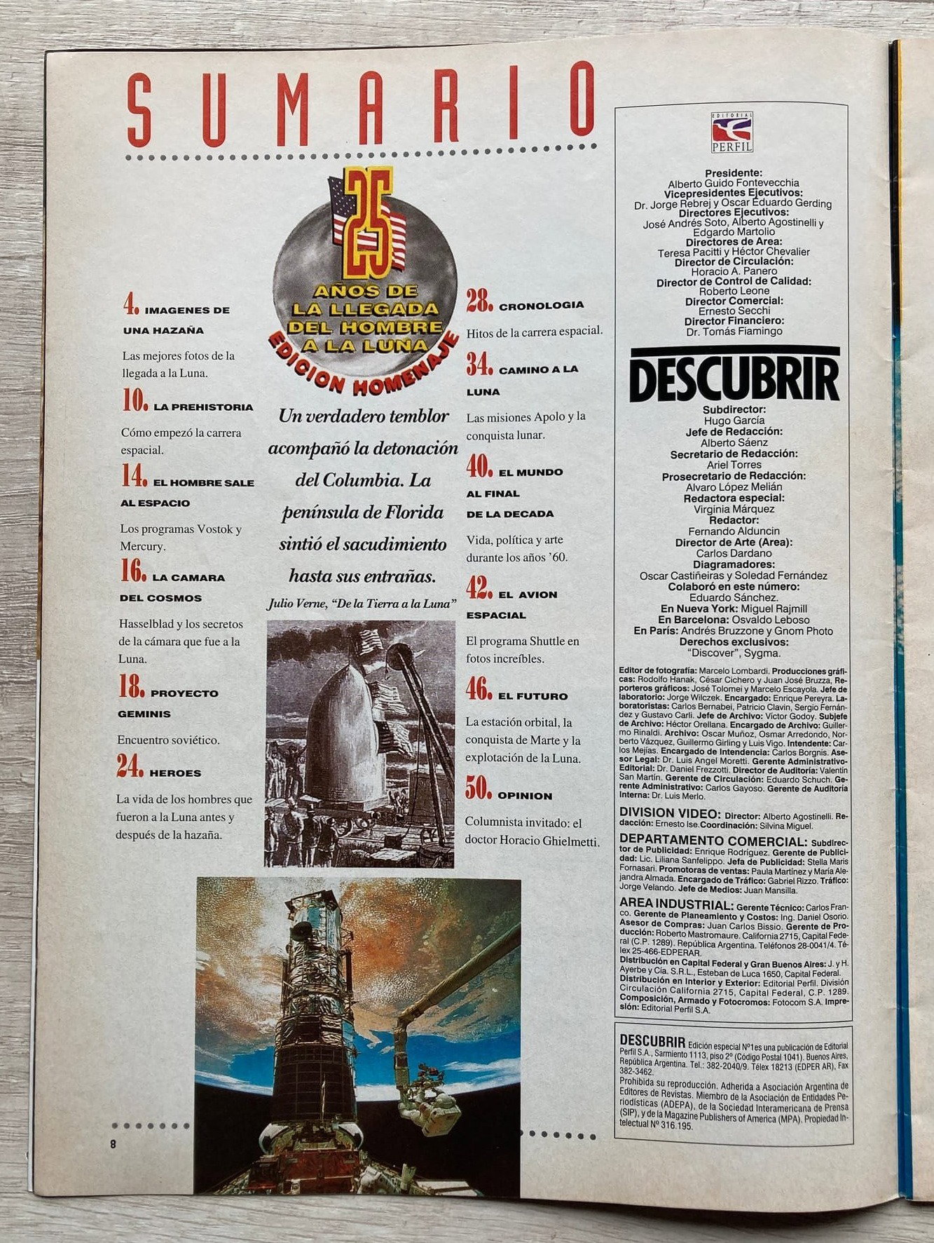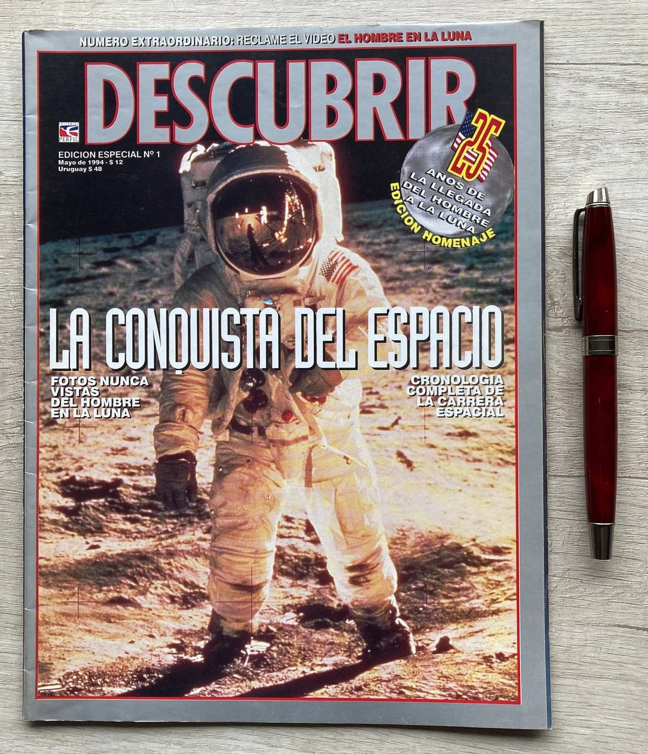 DESCUBRIR fue una revista argentina de periodicidad mensual la cual estaba orientada a la divulgación científica. En julio de 1994, a 25 años de la llegada del Hombre a la Luna, lanzó una edición especial dedicada enteramente a los acotencimientos que permitieron todo el desarrollo de la actividad espacial en el siglo XX.