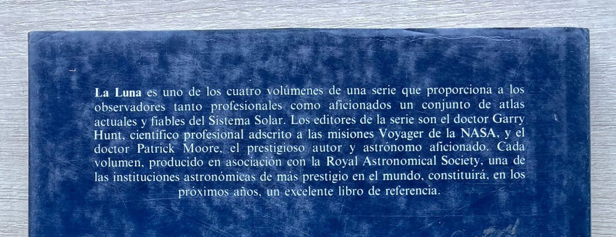 Un extraordinario trabajo sobre nuestro satélite natural por parte de Sir Patrick Moore, astrónomo amateur inglés quien a través de sus libros y presentaciones en TV supo llevar, como pocos, la astronomía a millones de hogares en todo el mundo.