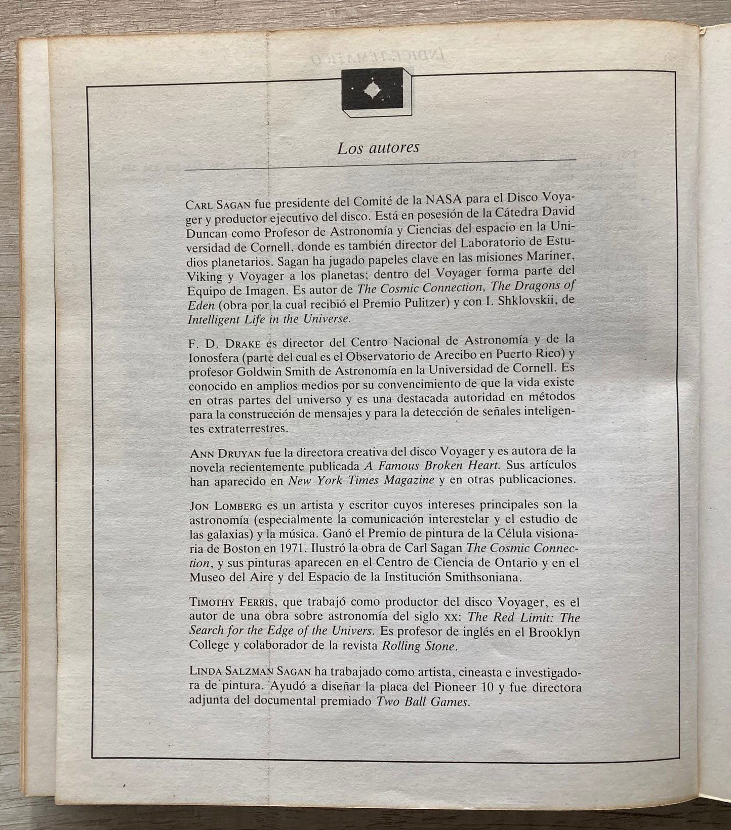 Autor: Carl Sagan, Frank Drake, Ann Druyan, Jon Lomberg y Salzman Sagan
