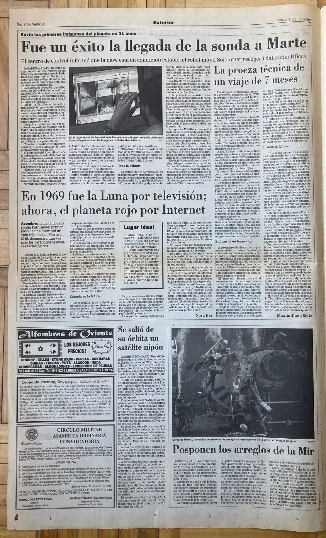 La misión Pathfinder (NASA), y el primer rover (Sojourner) de la historia en suelo marciano.