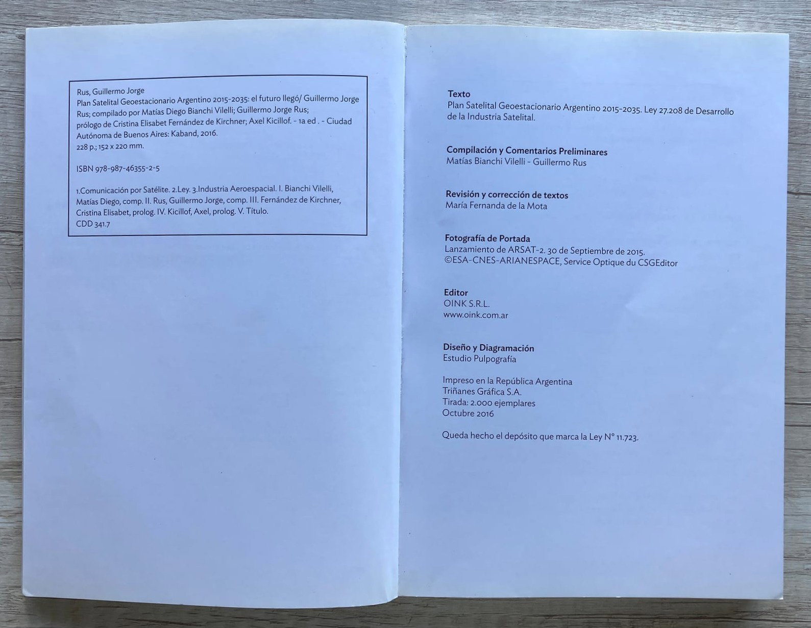 Título original: Plan Satelital Geoestacionario Argentino 2015-2035. Ley 27.208 de Desarrollo de la Industria Satelital