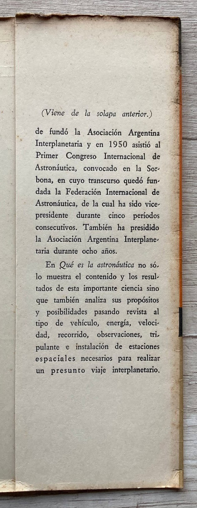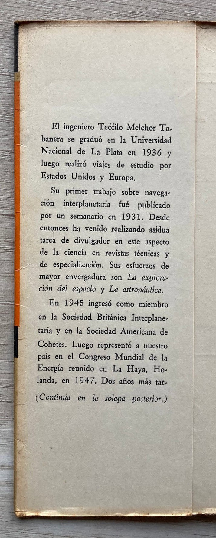 La obra por excelencia del Ing. Teófilo Tabanera (Argentina, 1909-1981), el "padre" de la astronáutica argentina. Tabanera fue un precursor de las actividades espaciales en dicho país, siendo el primer presidente de la Comisión Nacional de Investigaciones Espaciales (CNIE), la agencia espacial argentina. Posteriormente, en 1990, la CNIE pasó a denominarse Comisión Nacional de Actividades Espaciales (CONAE.