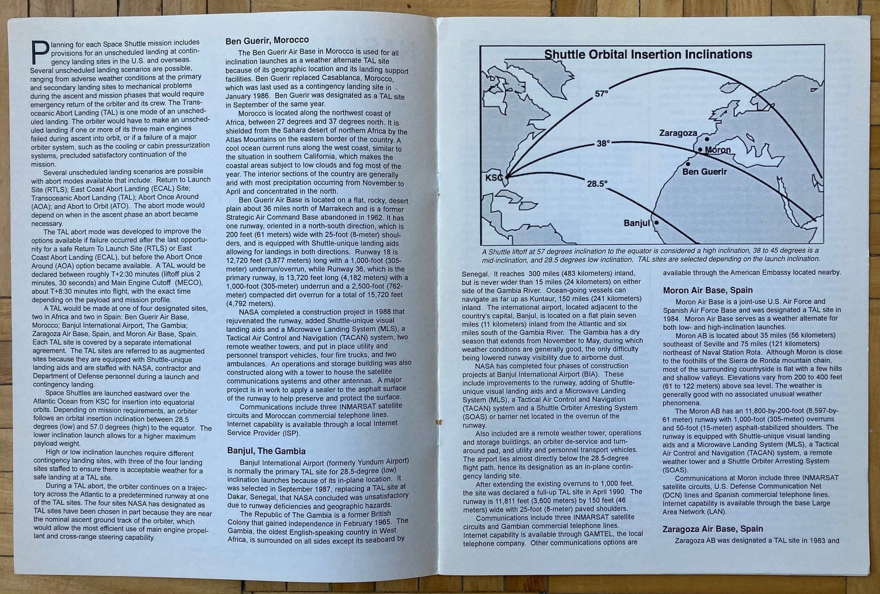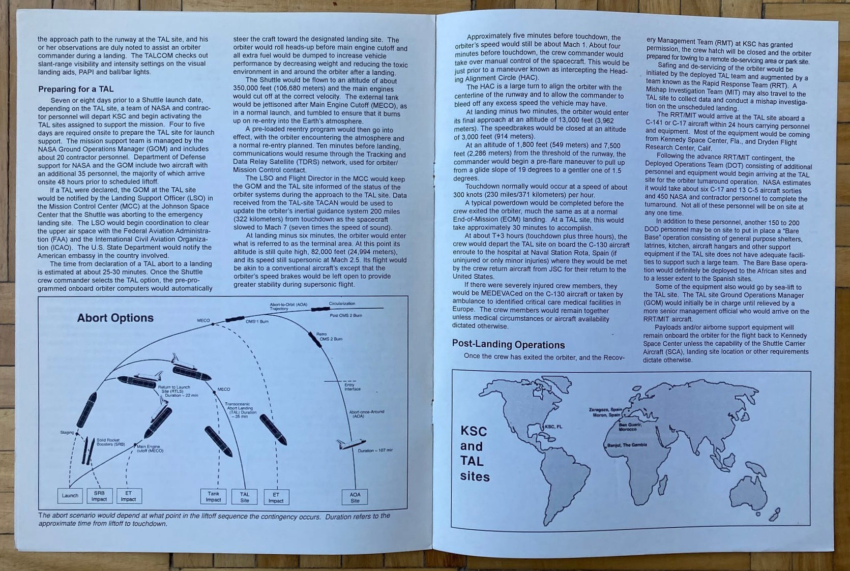 Publicación del Centro Espacial Kennedy en donde se describen los lugares de abortaje que tienen los transbordadores espaciales en caso de emergencia luego de un lanzamiento.