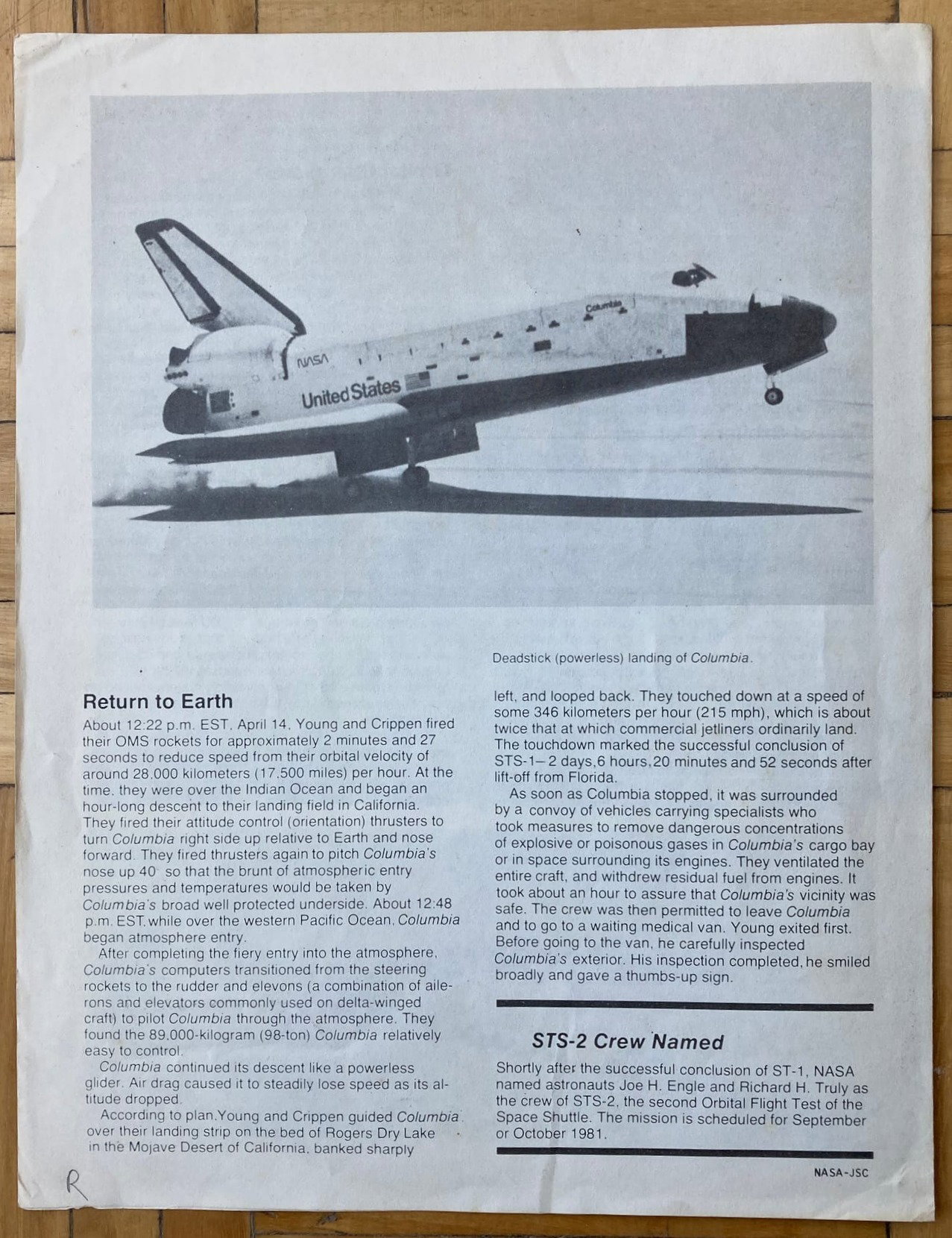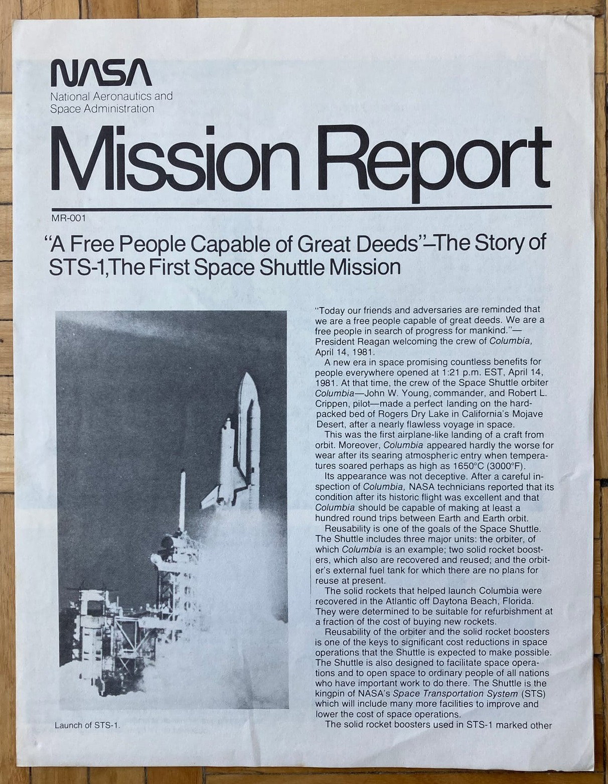 Mission Report, la clásica publicación de la NASA, en esta ocasión dedicada a la primera misión del programa de transbordadores espaciales.