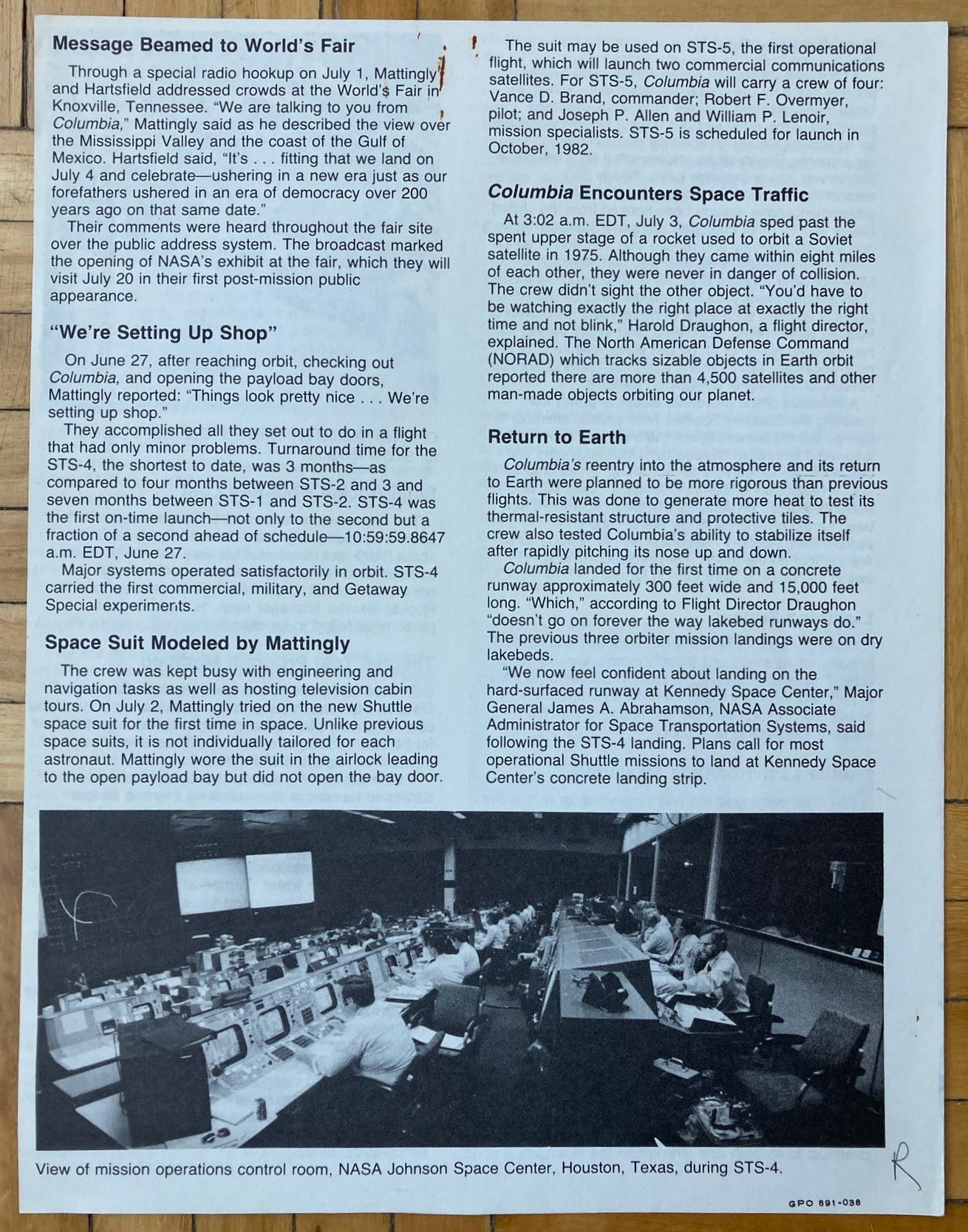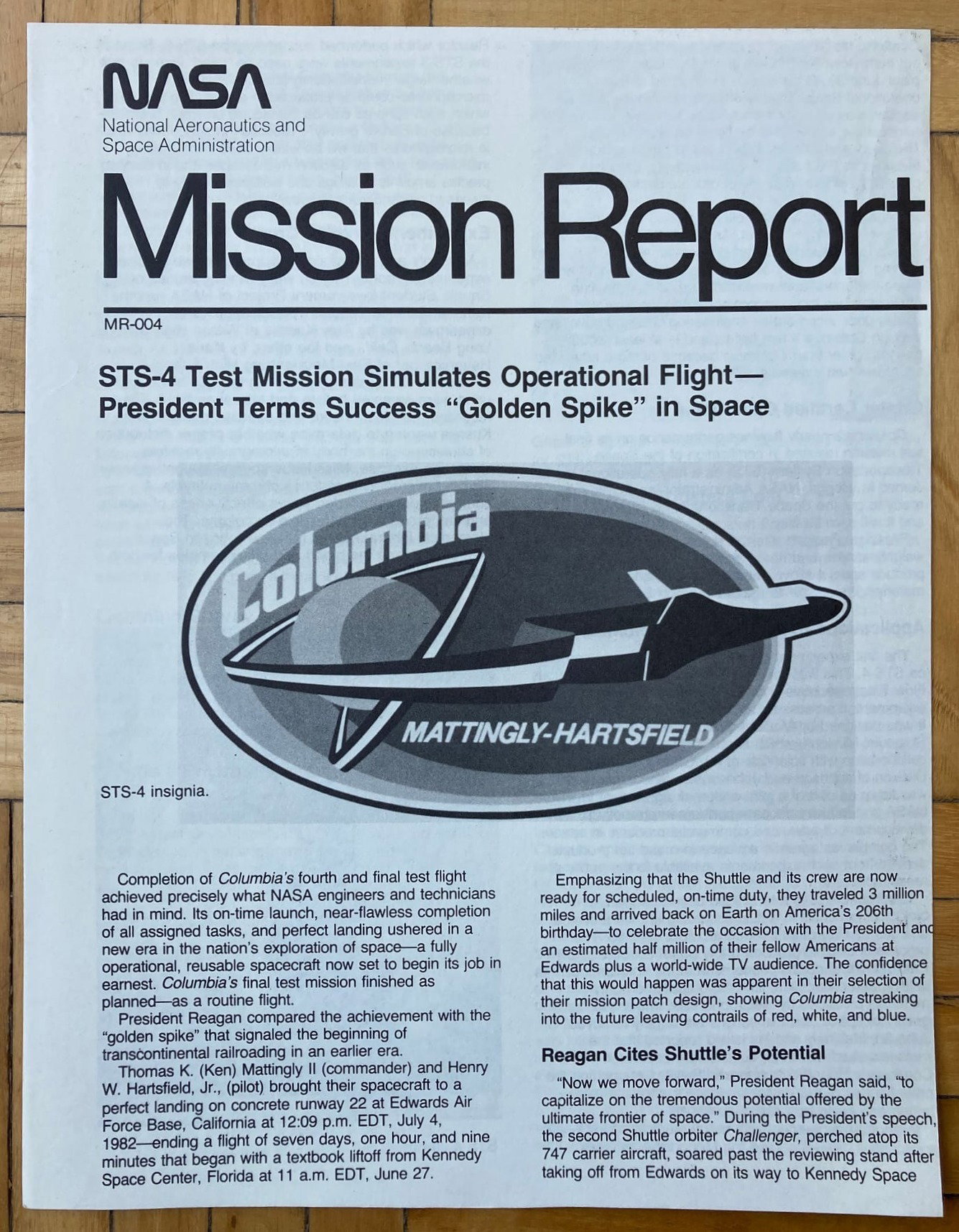 Mission Report, la clásica publicación de la NASA, en esta ocasión dedicada a la cuarta misión del programa de transbordadores espaciales.