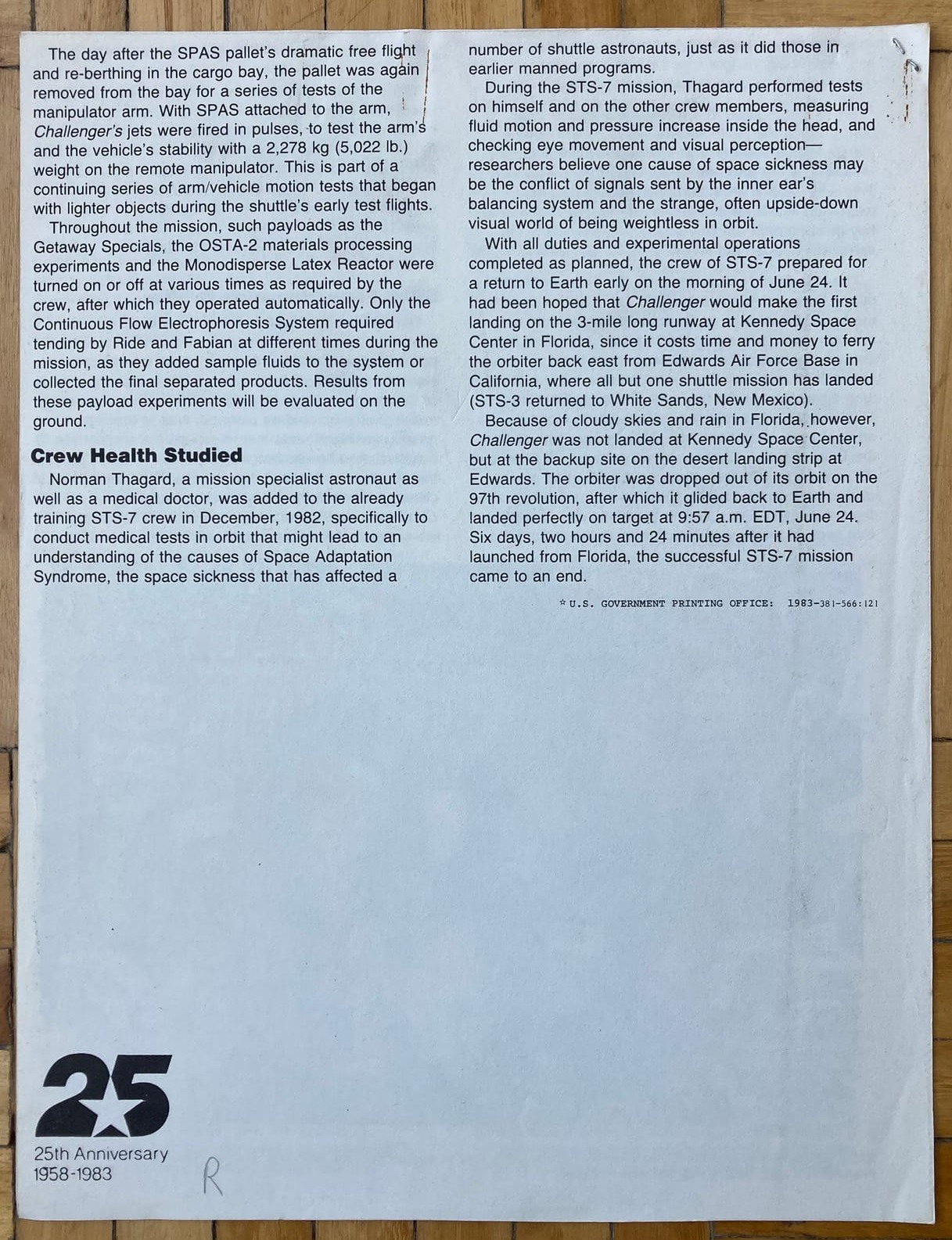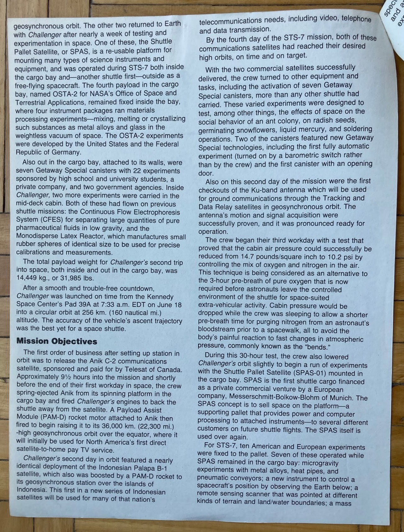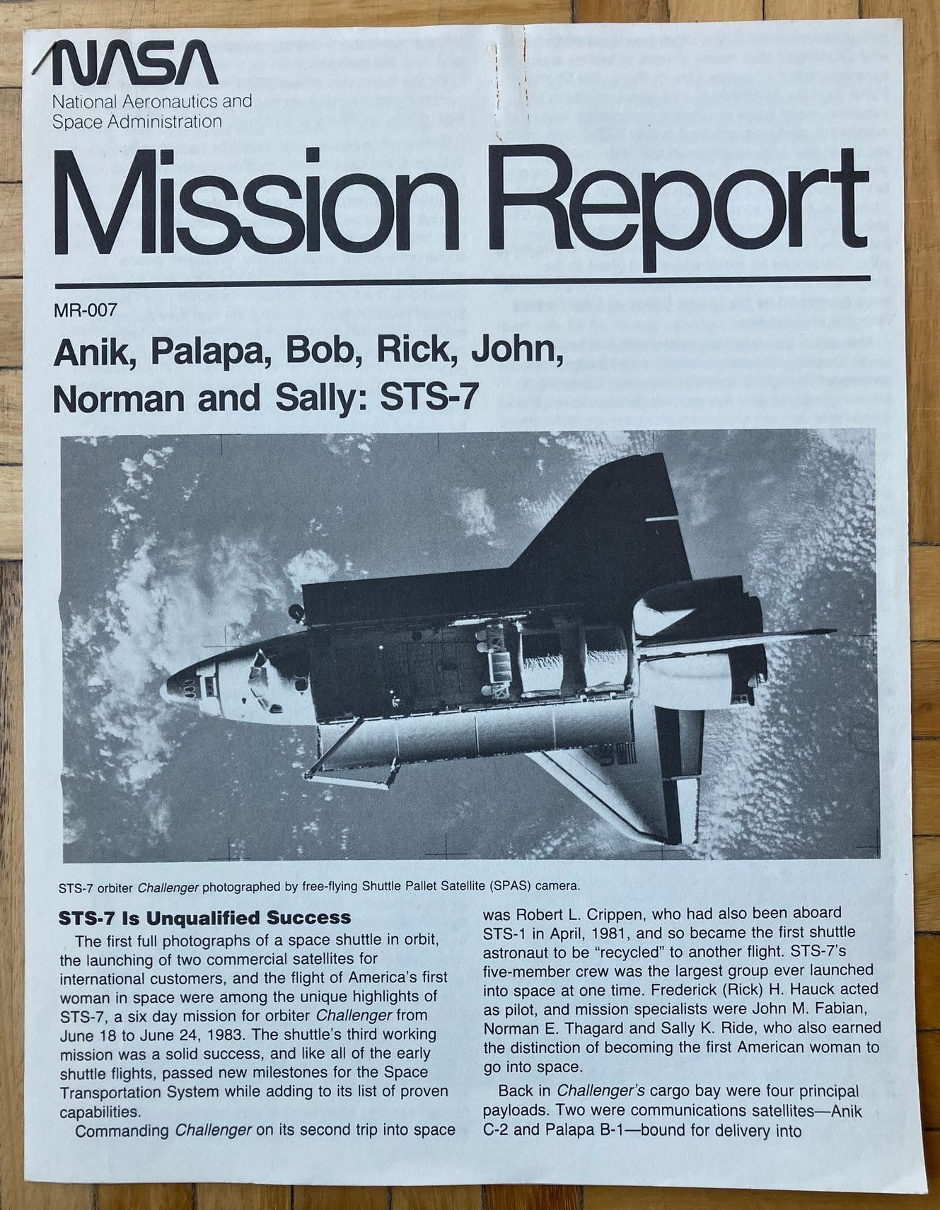 Mission Report, la clásica publicación de la NASA, en esta ocasión dedicada a la séptima misión del programa de transbordadores espaciales. Esta misión fue la segunda del Transbordador Espacial Challenger.