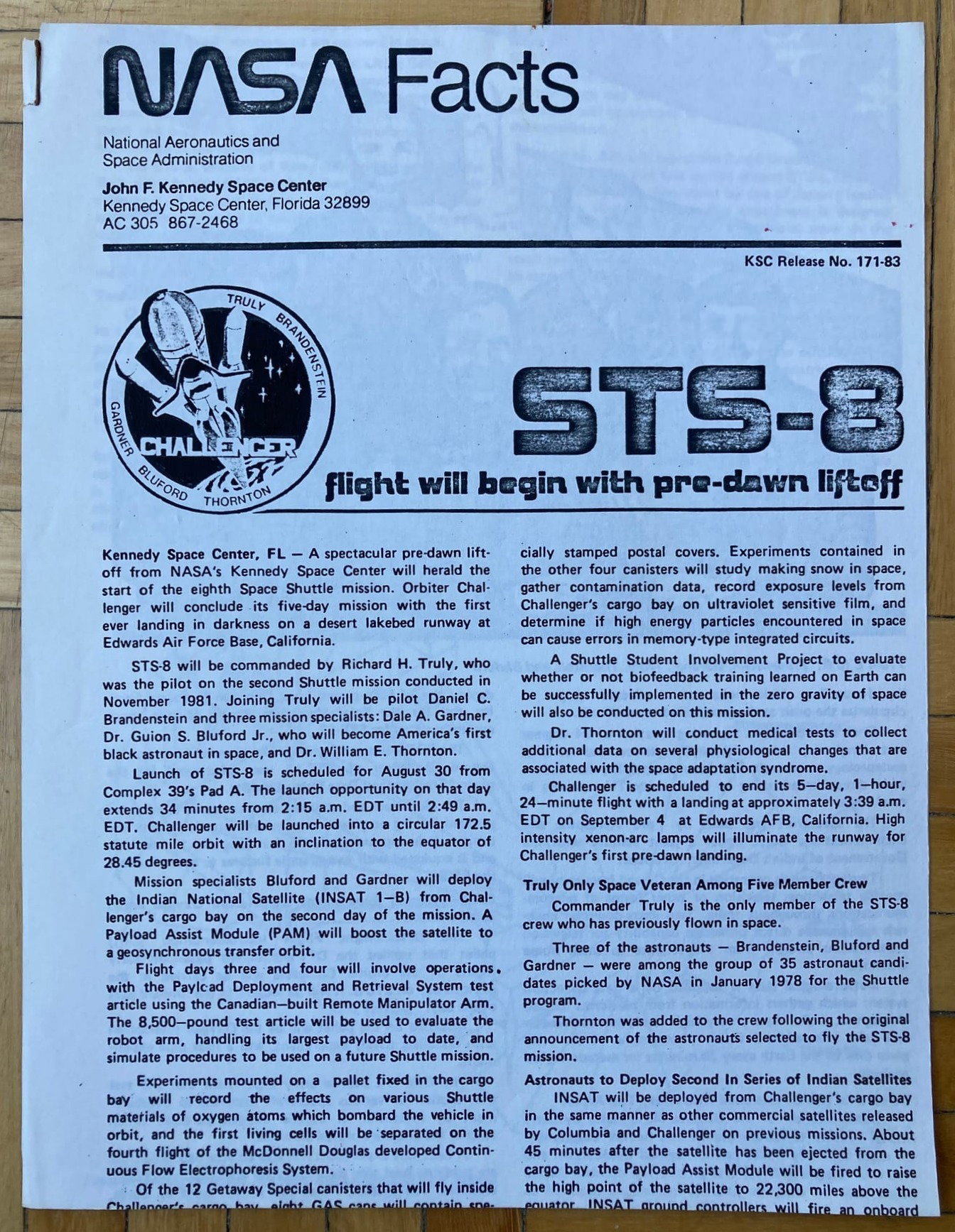 Mission Report, la clásica publicación de la NASA, en esta ocasión dedicada a la octava misión del programa de transbordadores espaciales (tercera del Transbordador Espacial Challenger).