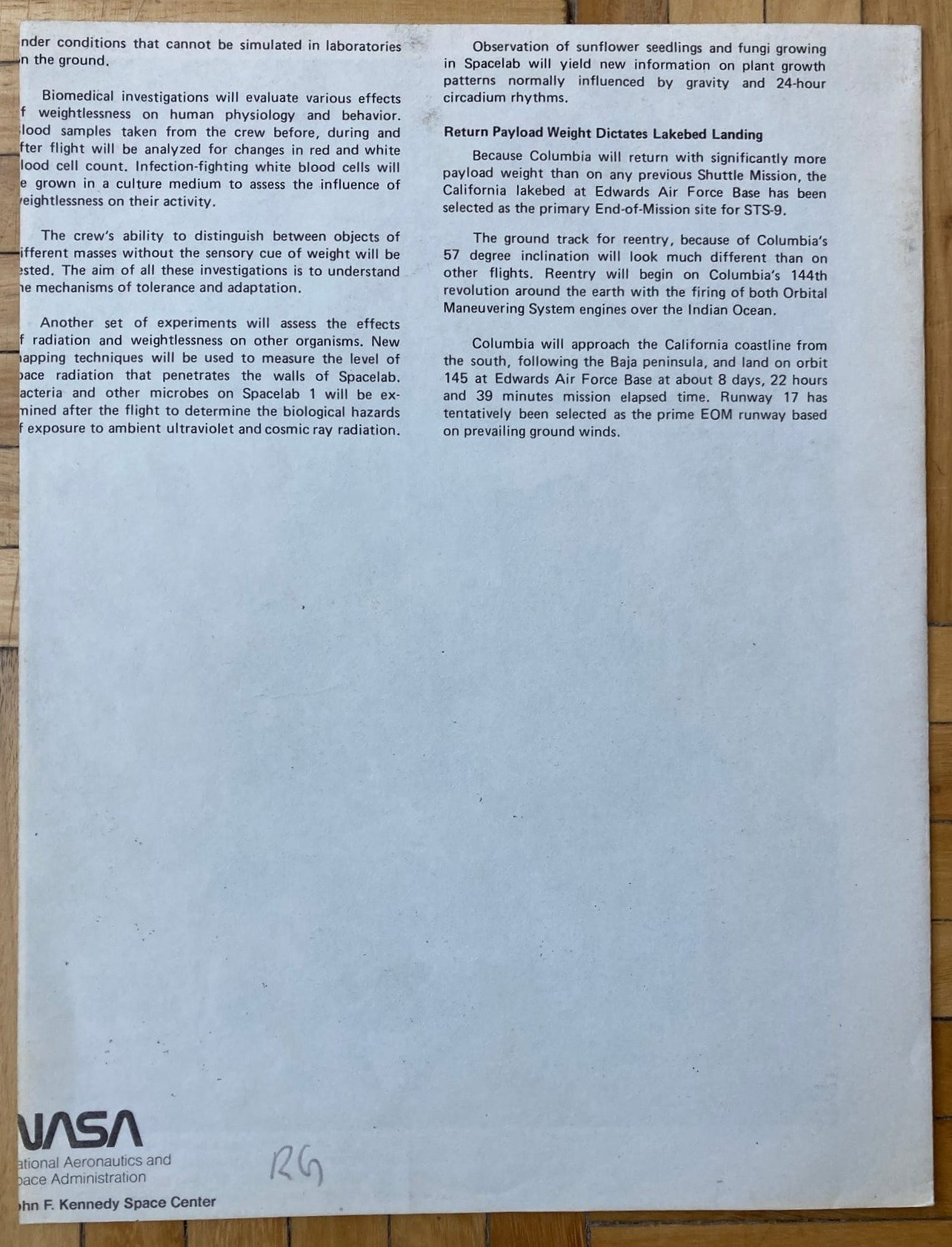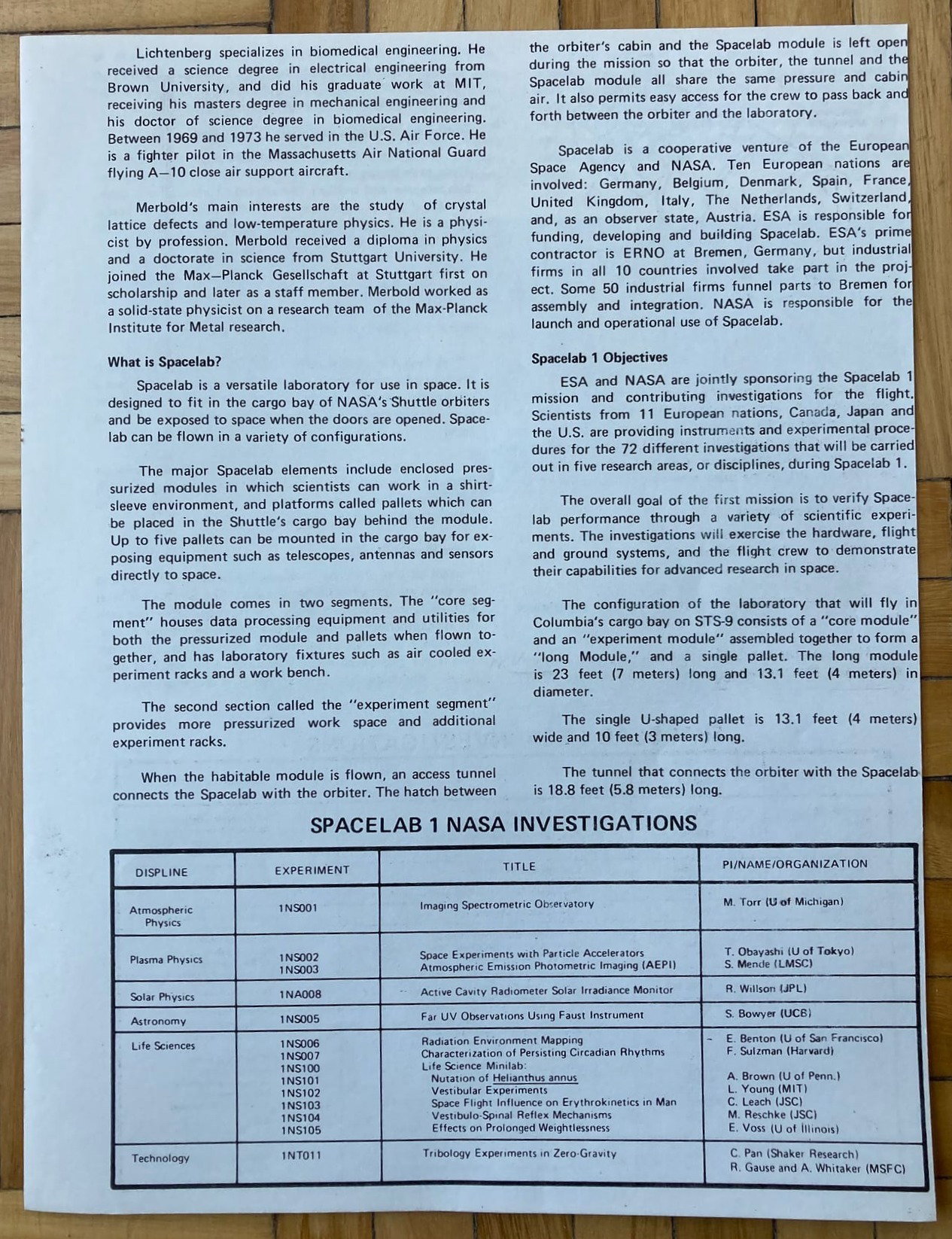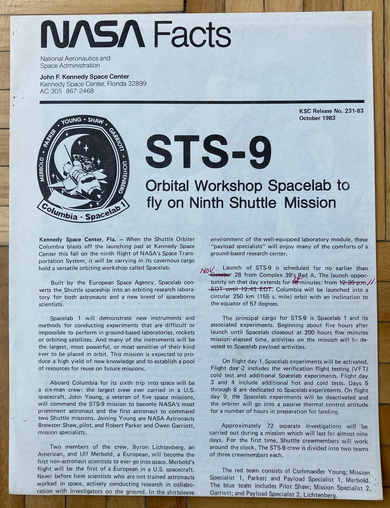 Mission Report, la clásica publicación de la NASA, en esta ocasión dedicada a la novena misión del programa de transbordadores espaciales, la cual representó la primera vez del SpaceLab europeo (laboratorio espacial).