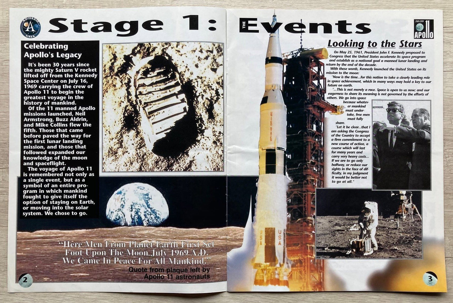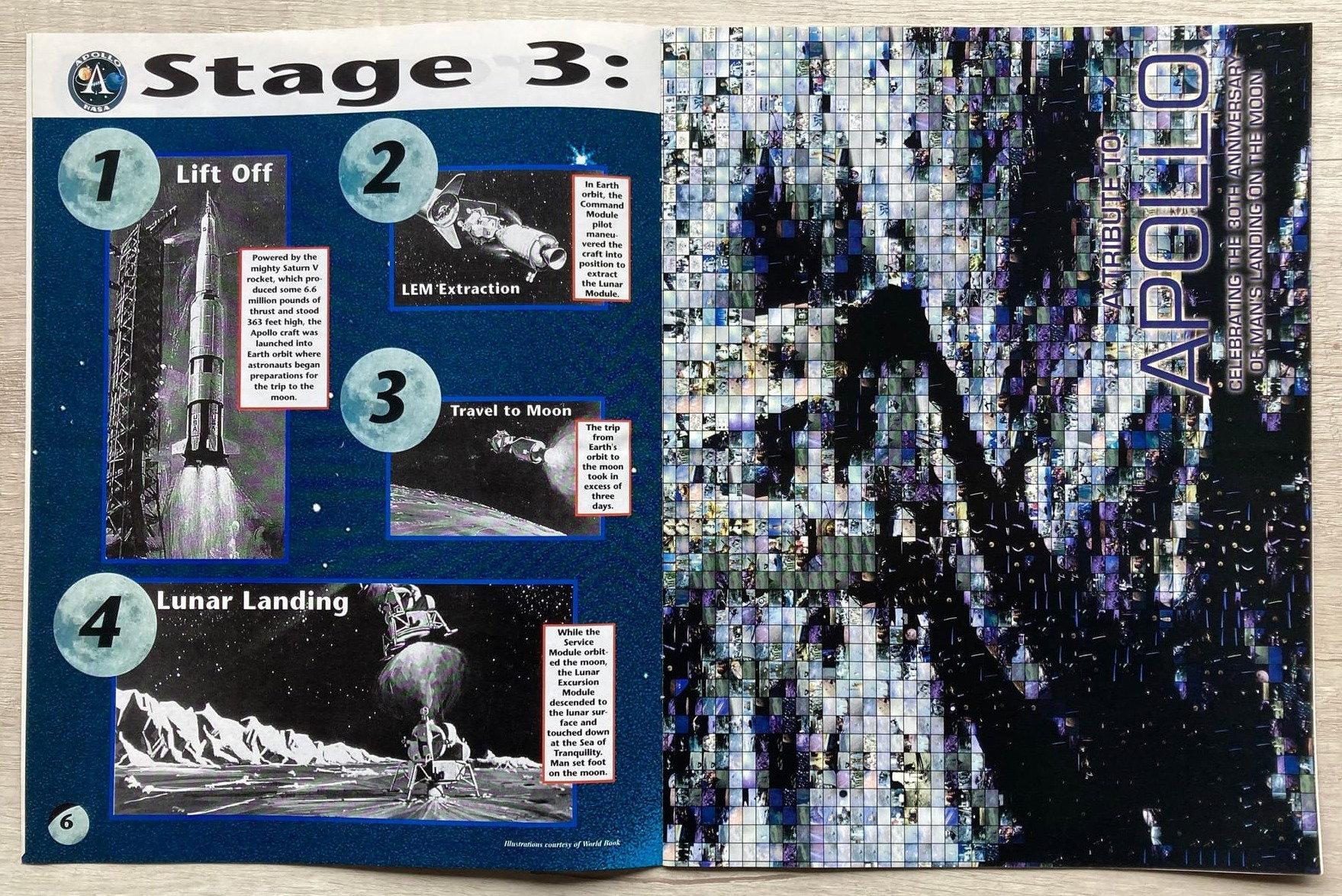 Una publicación del Centro Espacial Kennedy de la NASA, en el marco de la celebración del 30 aniversario (1999) de la llegada del Hombre a la Luna.