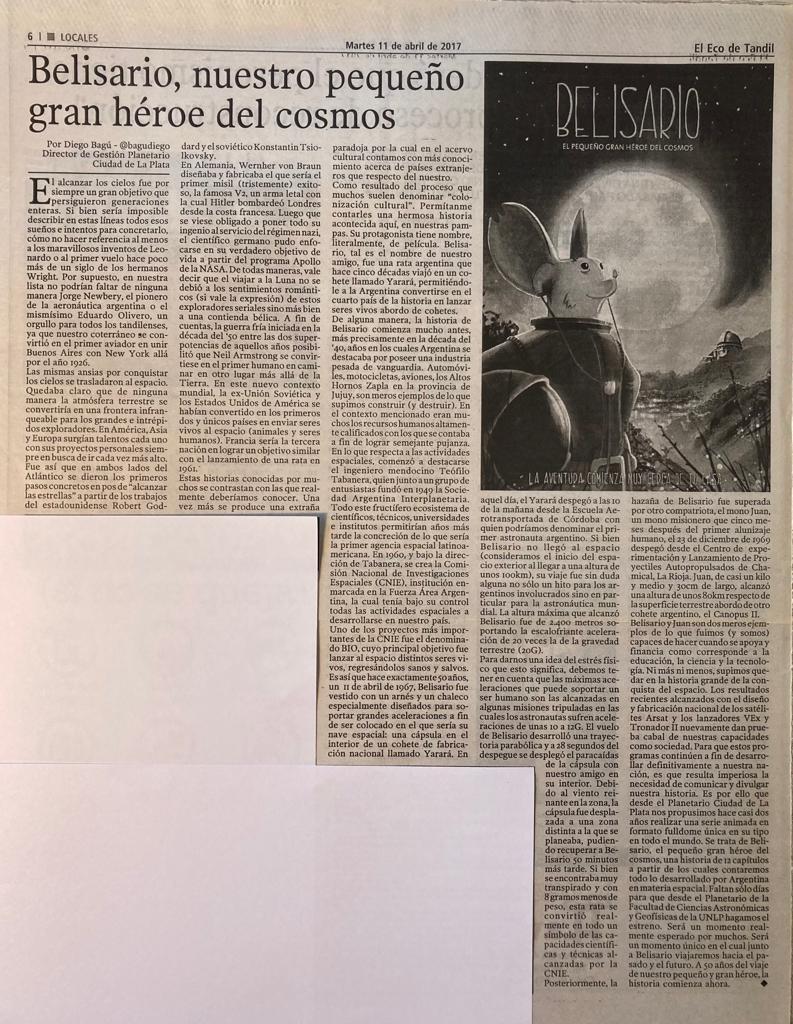 Nota publicada en el diario El Eco de Tandil, el 11 de abril de 2017. Puedes ver la nota en el siguiente link: