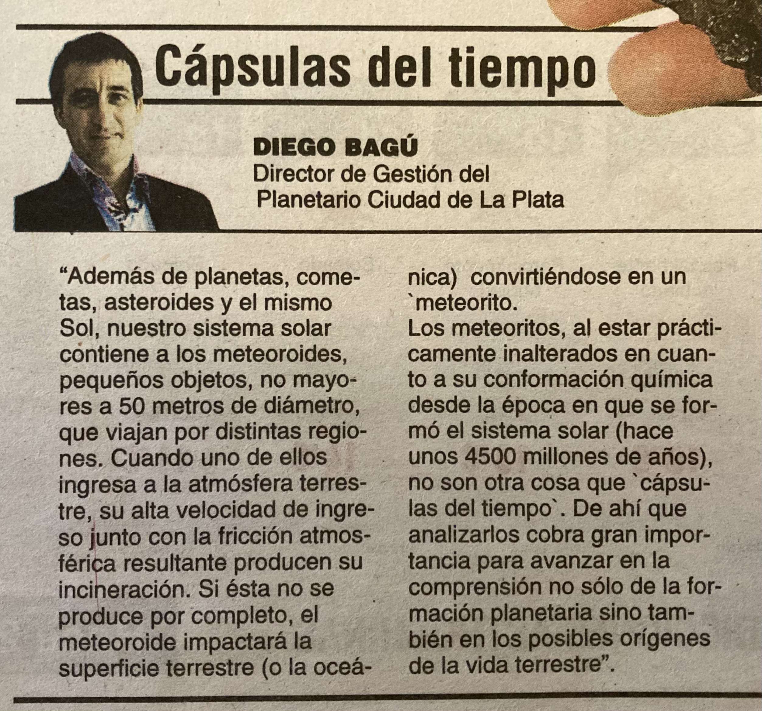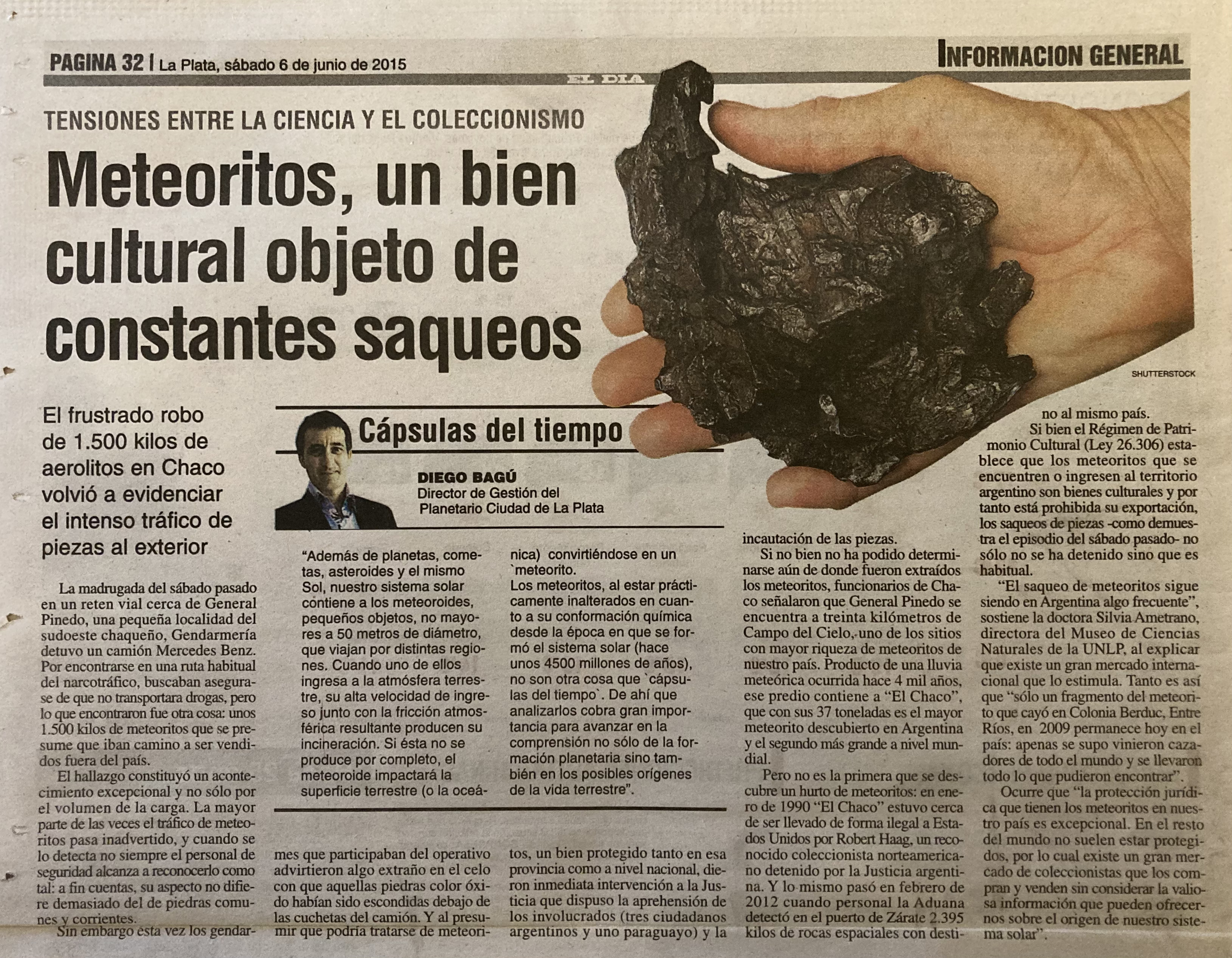 Reflexiones sobre los meteoritos en el marco del problema que conlleva el comercio ilegal de estos objetos. Columna de opinión para diario El Día.