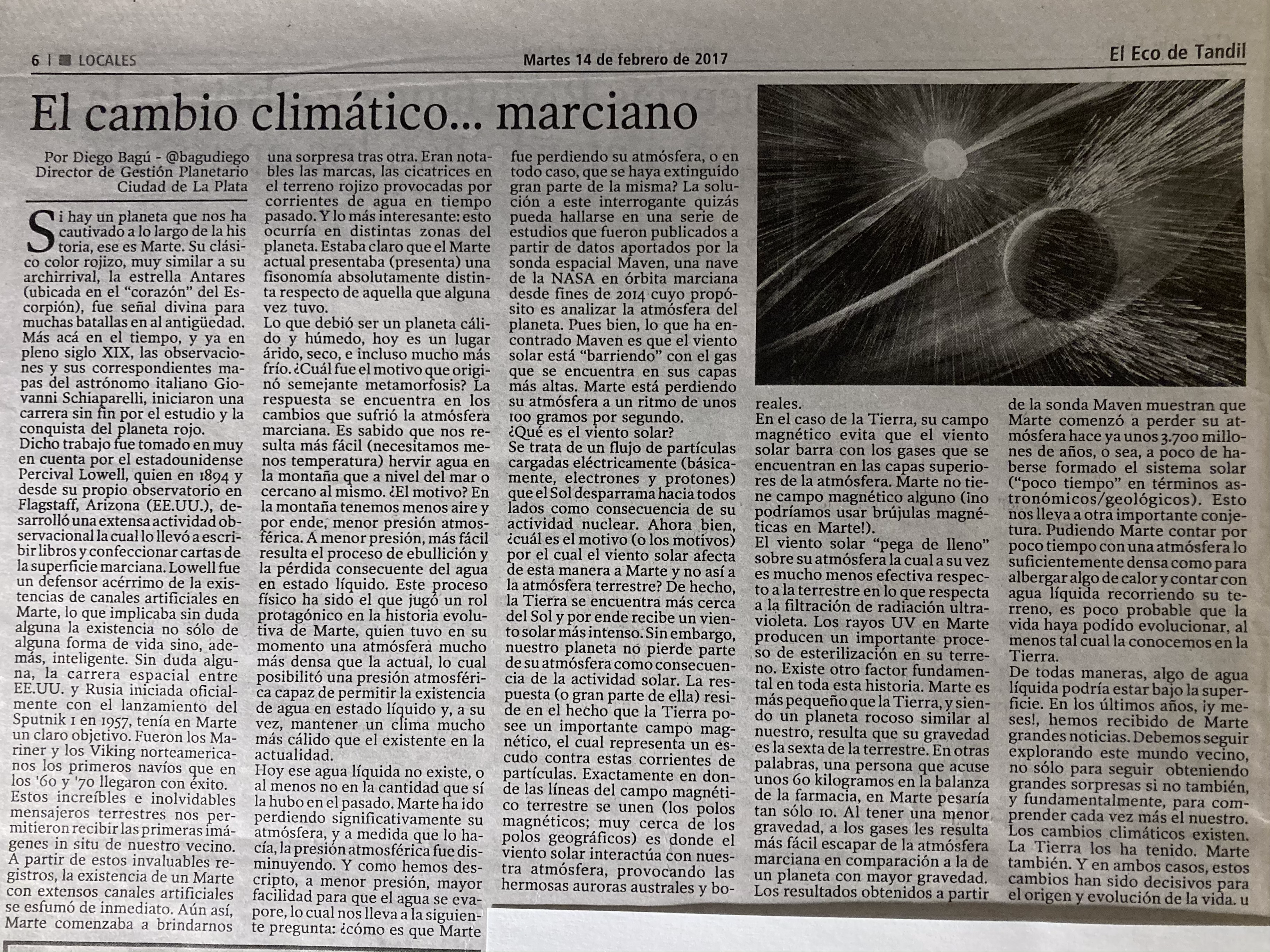 Nota publicada en el diario El Eco de Tandil, el 14 de febrero de 2017.