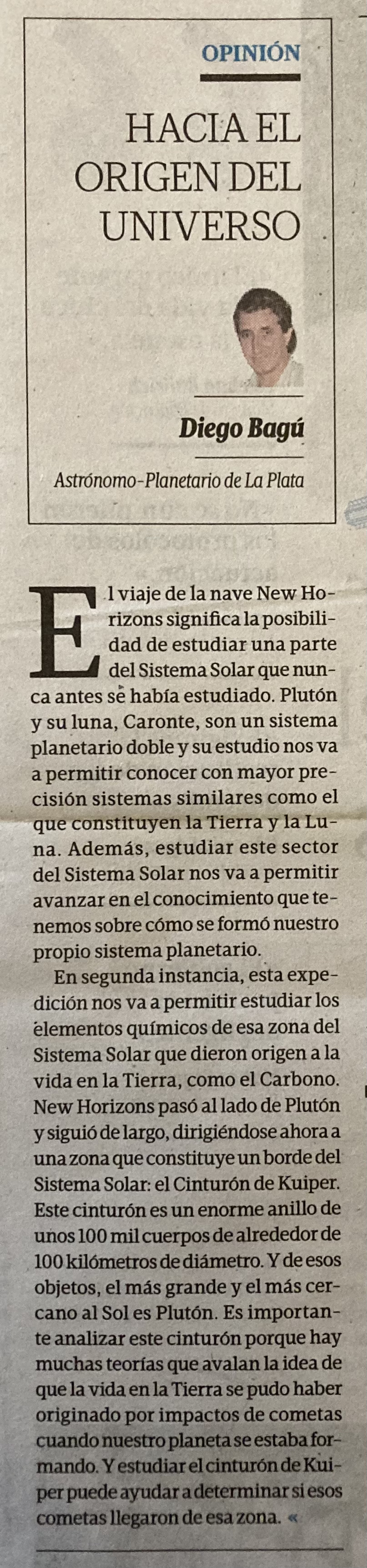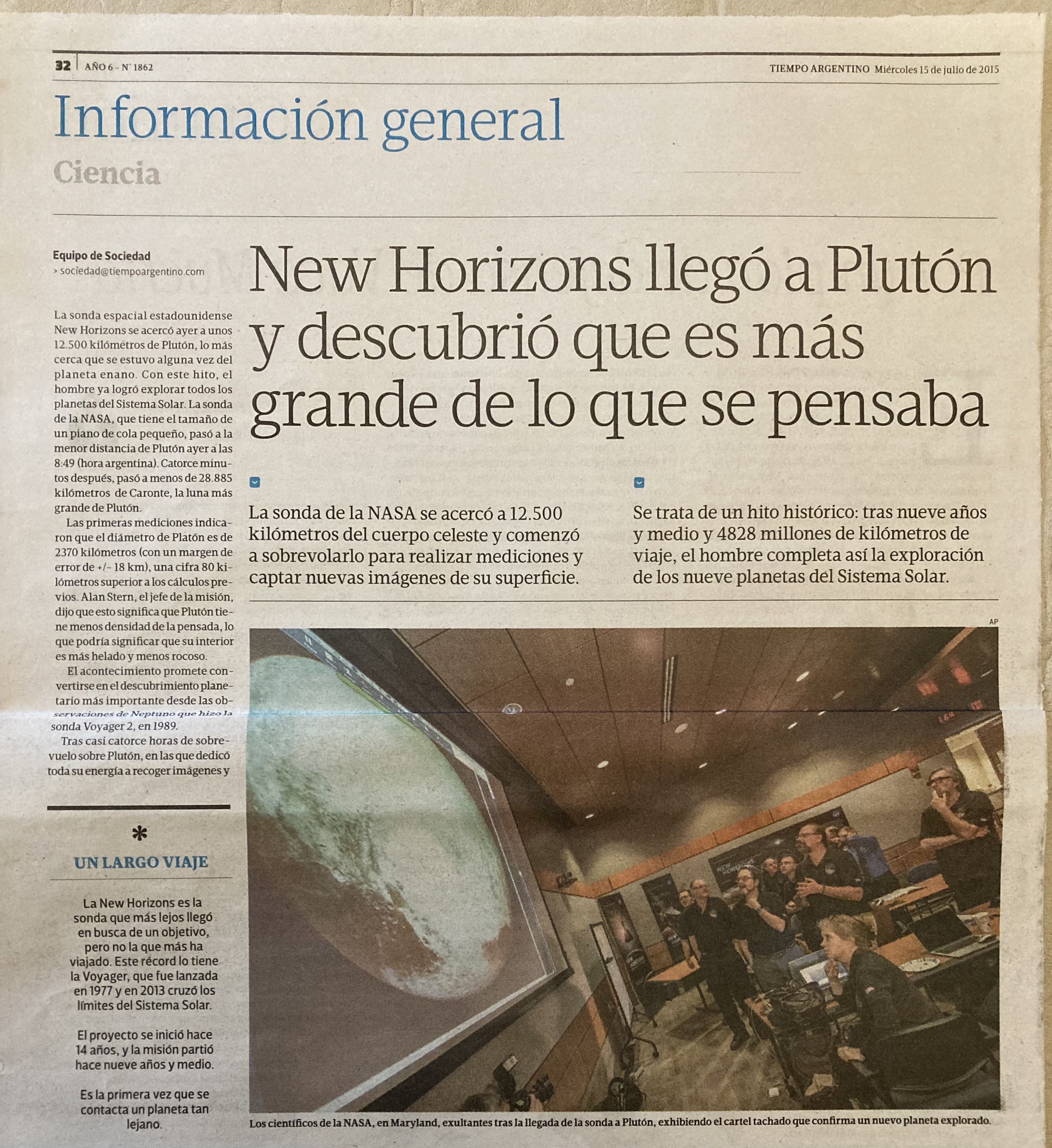 Reflexiones sobre lo que implica el arribo de la nave New Horizons a Plutón. Columna de opinión para diario Tiempo Argentino.