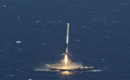 Aterrizaje de un Falcon 9 en la barcaza "Of course I still love you" en el océano Atlántico. La primera vez que esto ocurrió fue el pasado 8 de abril.