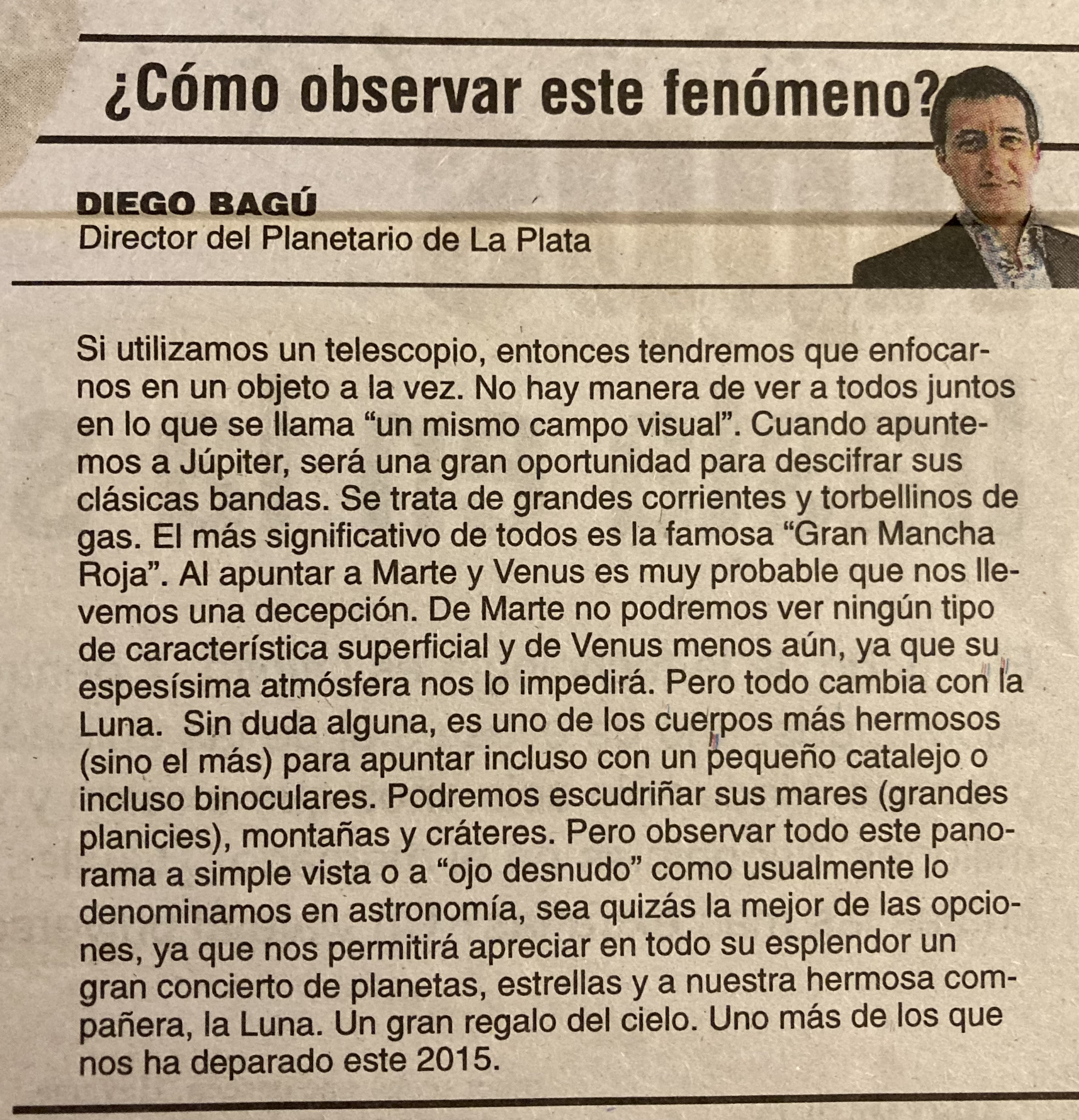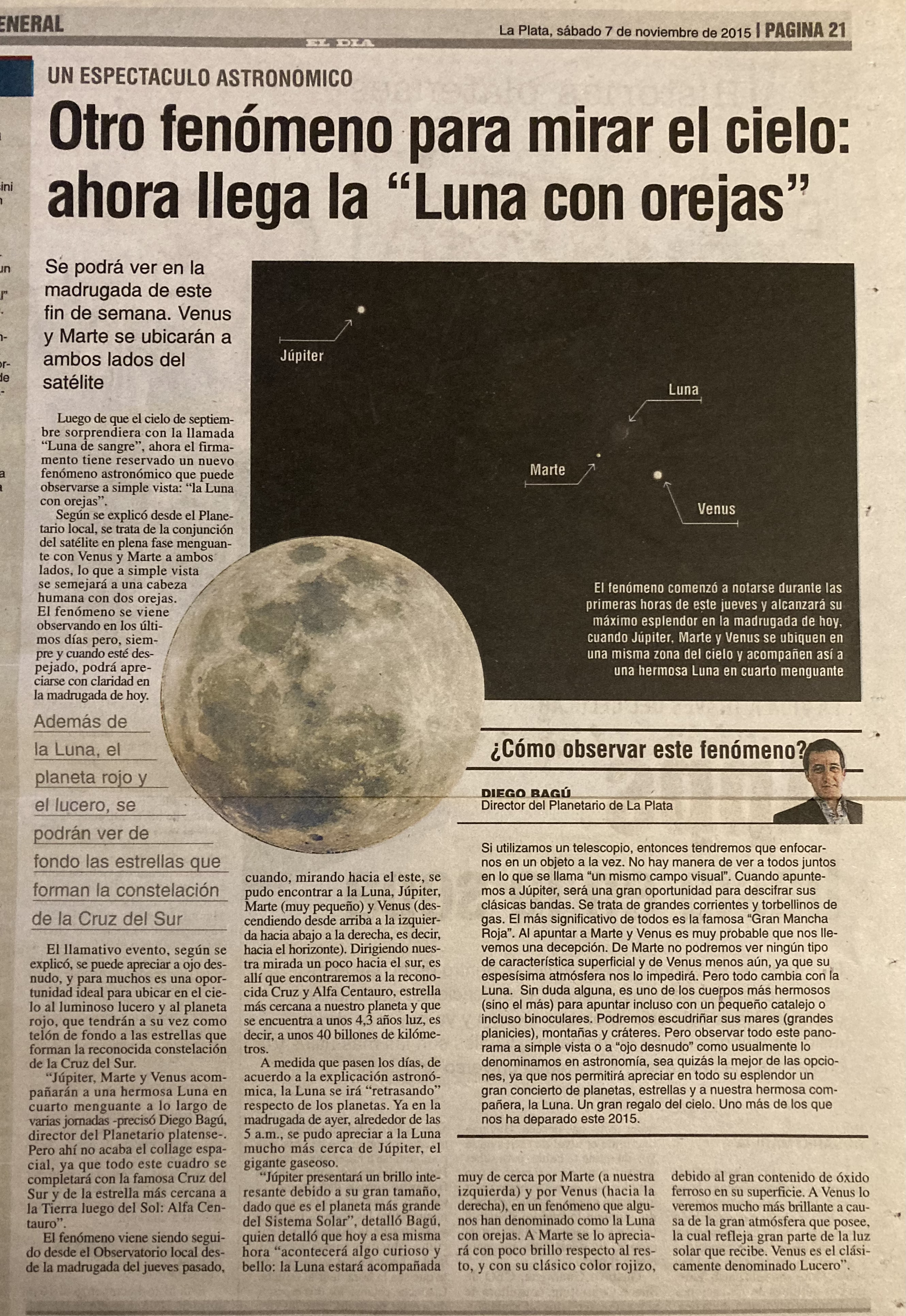 Cómo observar la conjunción astronómica Luna-Marte-Venus. Columna de opinión para diario El Día.