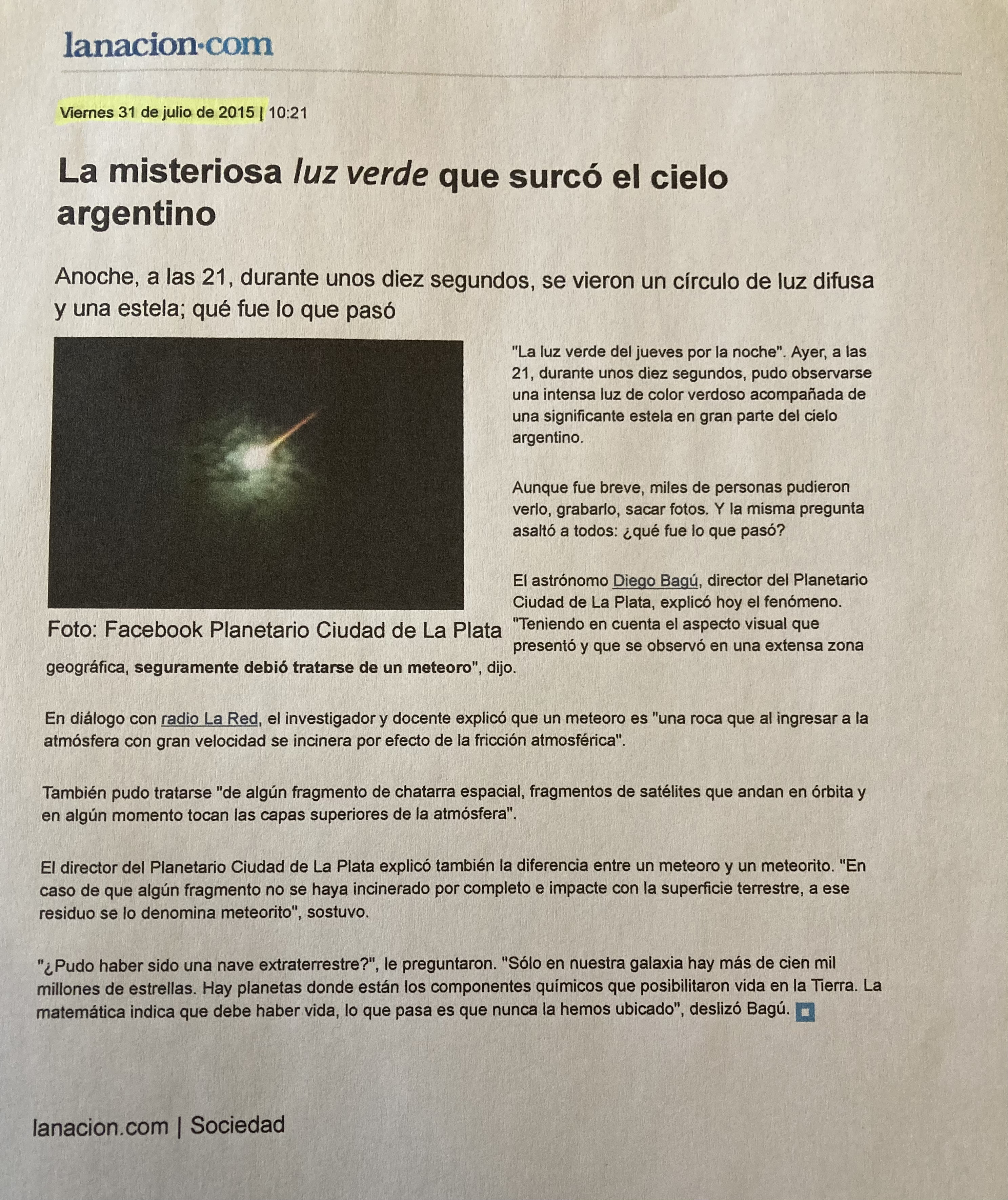 Numerosas notas periodísticas hemos realizado a causa del ingreso de un asteroide en la atmósfera terrestre, lo cual provocó un gran espectáculo al observarse un intenso destello de color verdoso.