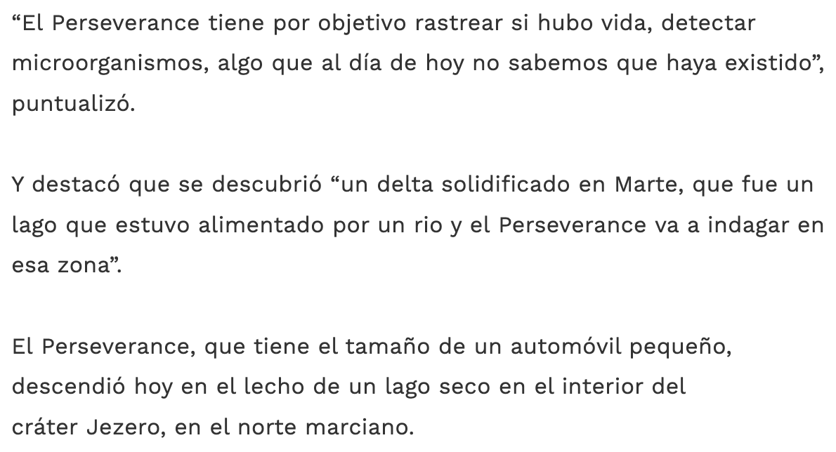 Entrevista para el portal web pulsonoticias.com.ar en el marco de la llegada del rover Perseverance (NASA) a Marte.