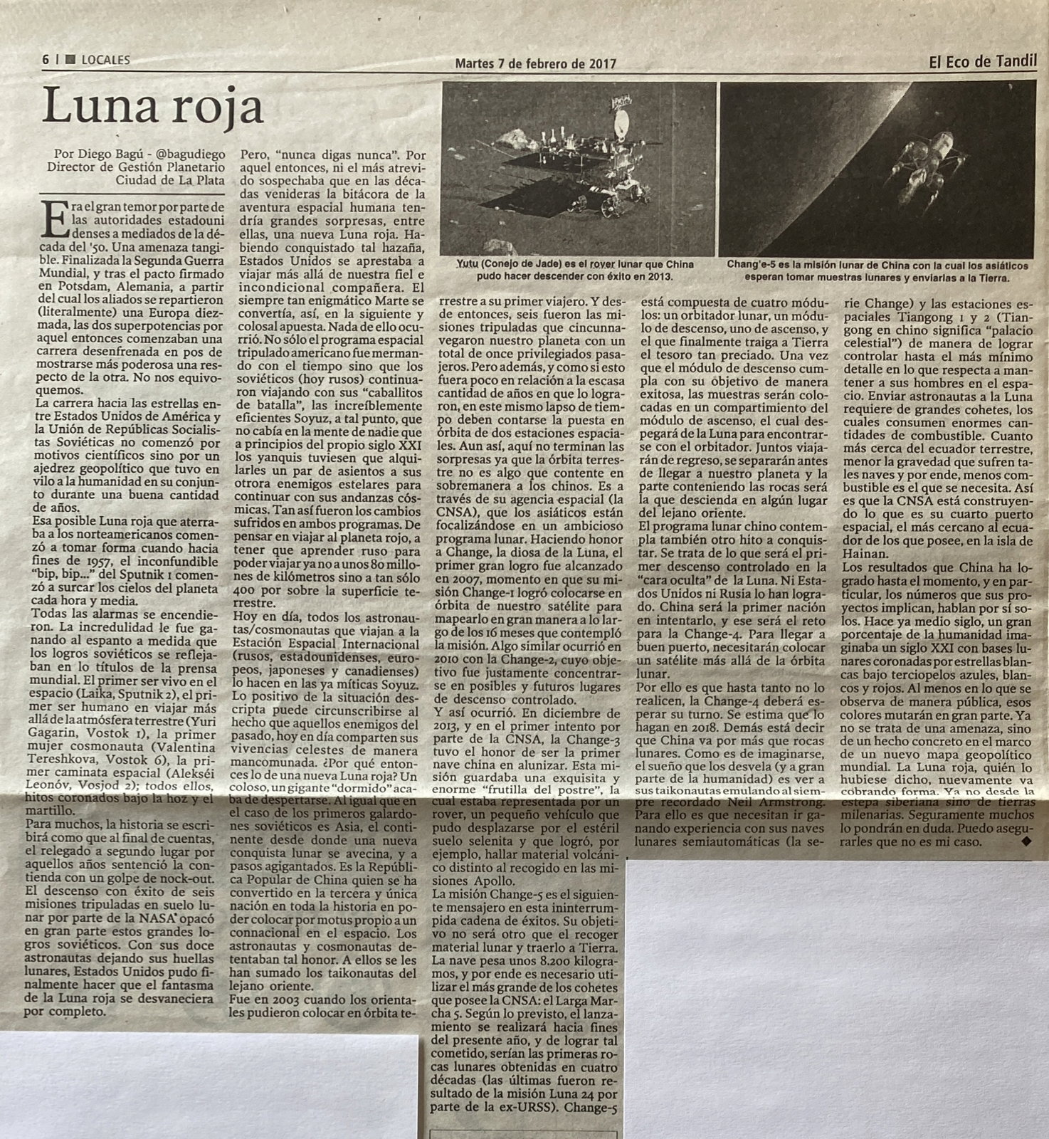 Nota publicada en el diario El Eco de Tandil, el 7 de febrero de 2017.