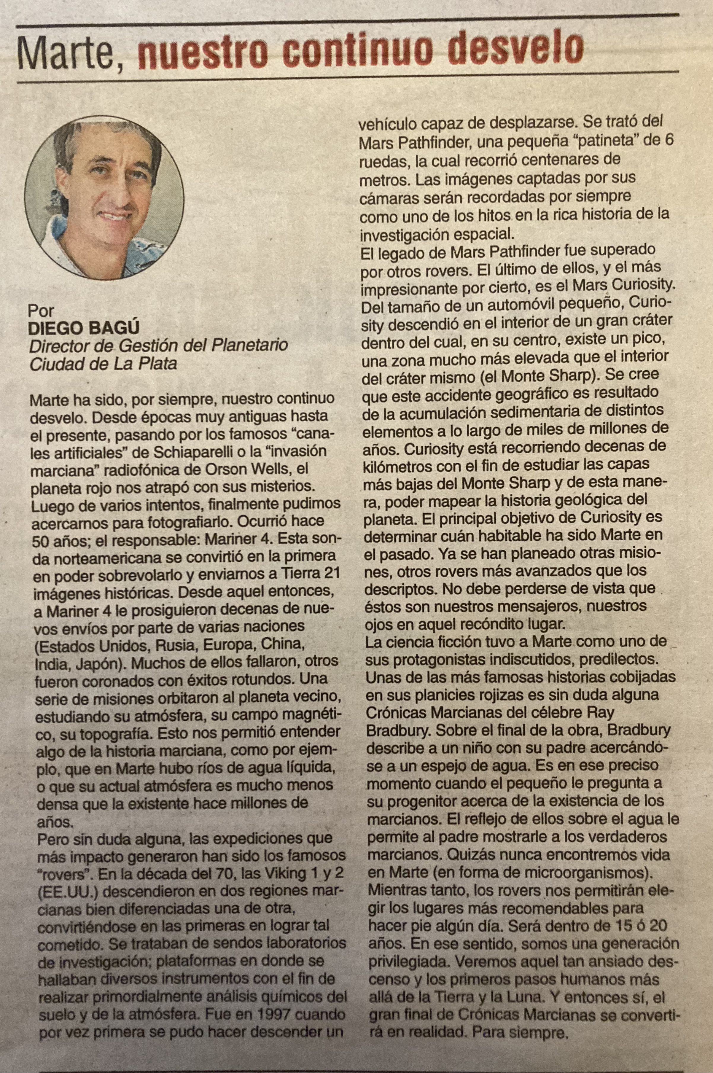 Reflexiones sobre el 50 aniversario de la primera nave arribada al planeta rojo. Columna de opinión para diario El Día.