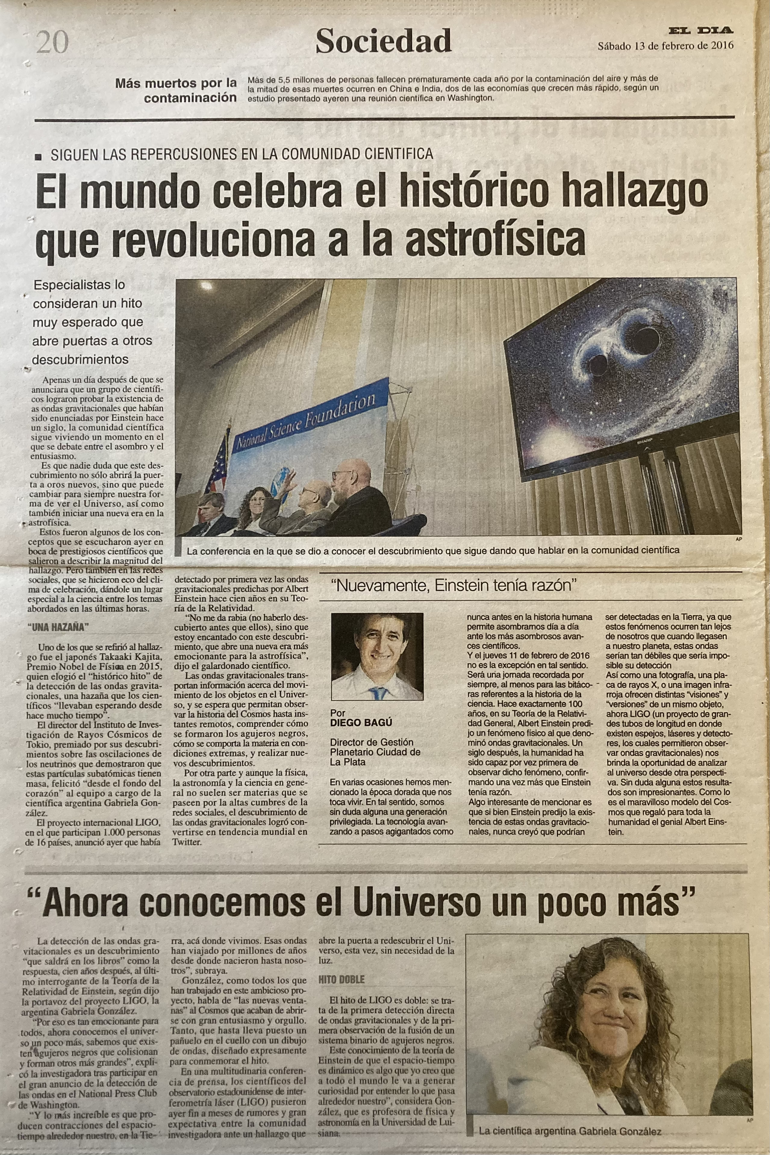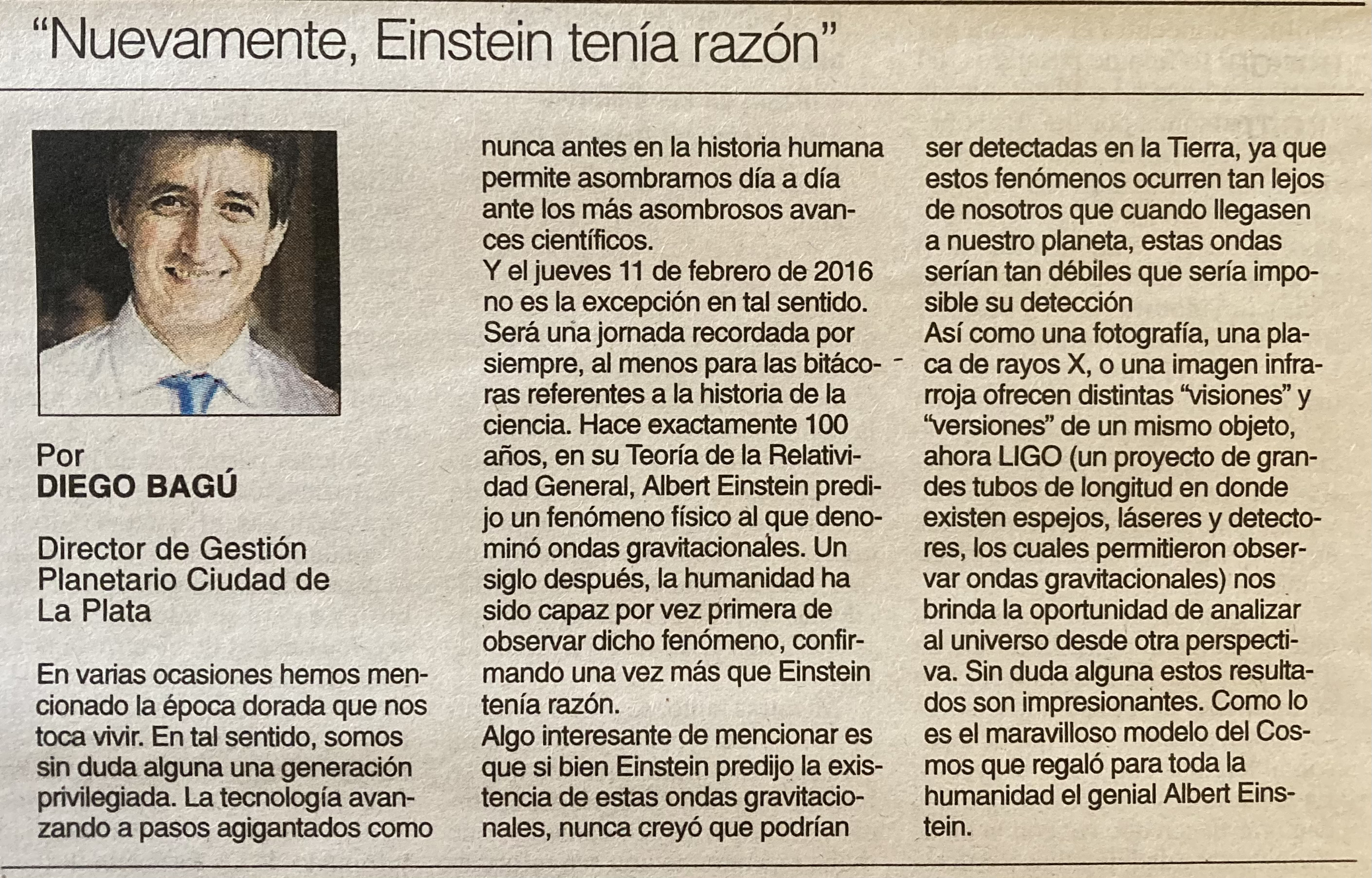 Columna de opinión para diario El Día. Puedes ver la nota en el siguiente link: https://www.eldia.com/nota/2016-2-13--nuevamente-einstein-tenia-razon