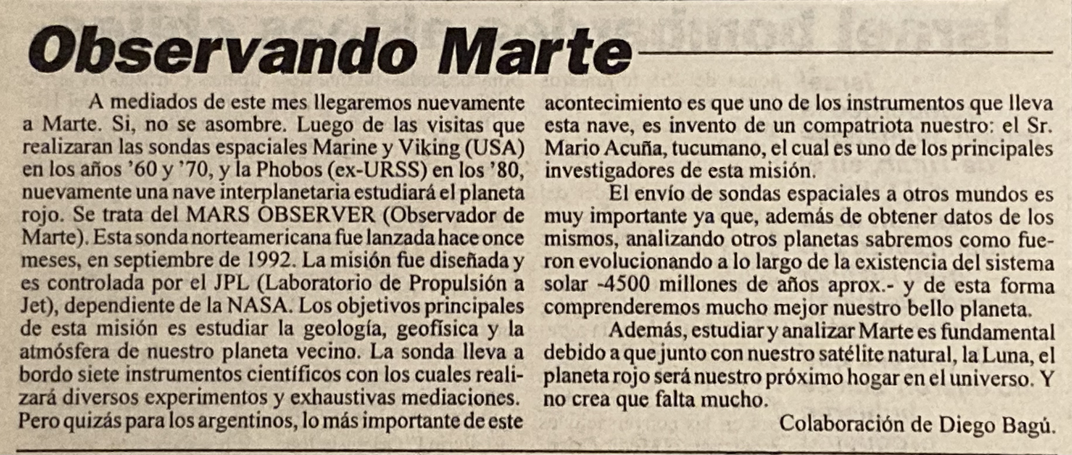 Esta nota guarda un sentimiento muy particular para mi. Se trata de mi primer artículo periodístico publicado en un diario.