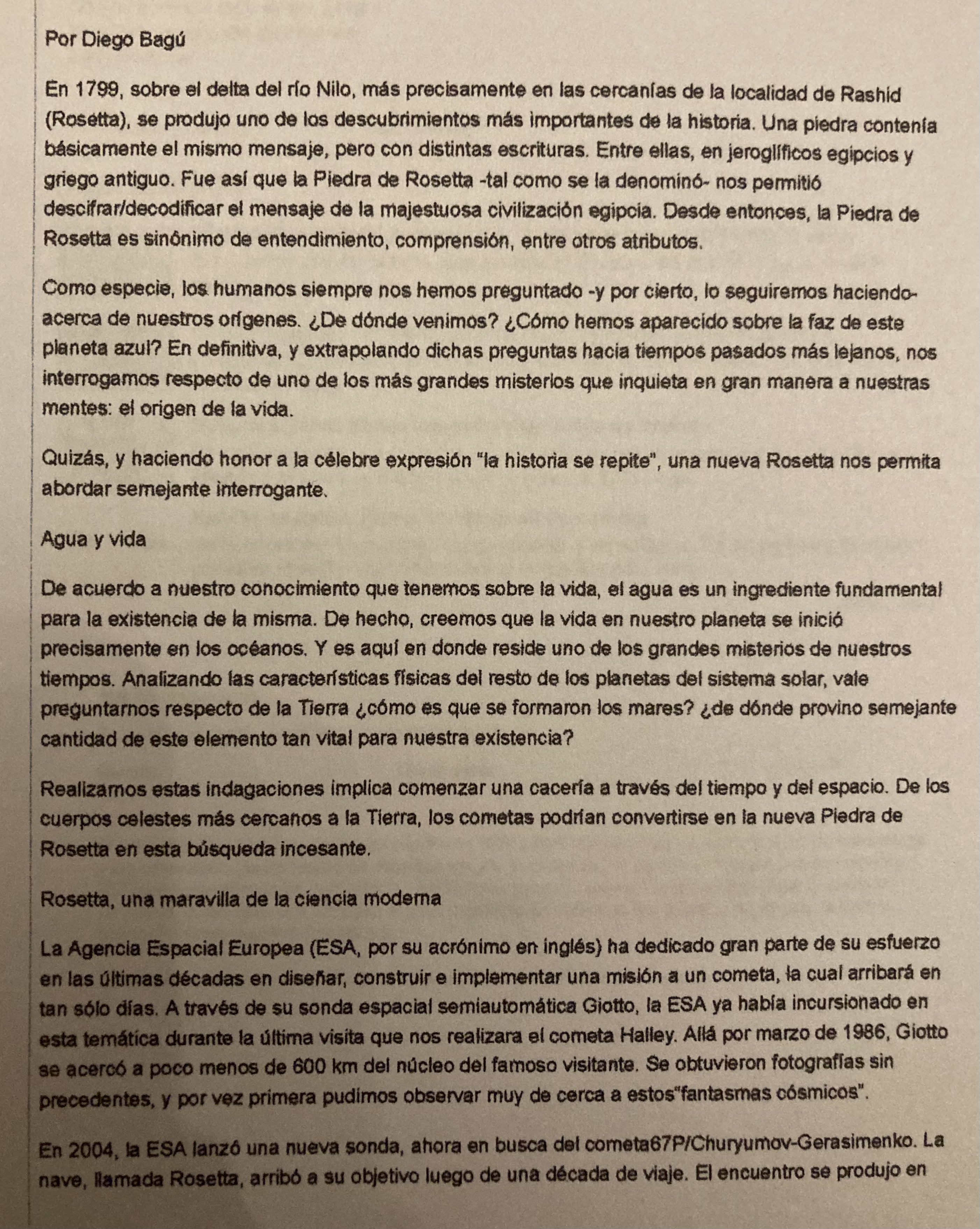La vital importancia de la misión Rosetta al cometa 67P Churyumov-Gerasimenko.